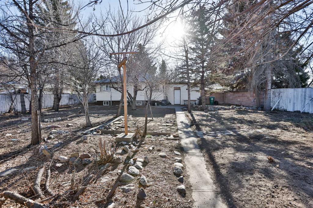 Situated on a massive, private lot with incredible future development potential, this property offers both immediate comfort and long-term opportunity. The main level features 3 bedrooms and 1 bathroom, with a functional layout that includes a welcoming living room, practical kitchen, and dining area—perfect for everyday living. Downstairs, the large basement family room provides excellent additional space, with room for a future bathroom (subject to City permits) and the added benefit of a separate entry, offering flexibility and privacy. Outside is where this property truly shines. Surrounded by mature trees, the yard feels private and spacious, ideal for enjoying outdoor living or exploring future possibilities. A double detached garage adds value, along with a front carport for extra parking and convenience. Located close to schools, amenities, shopping, and more, this property is a fantastic opportunity for buyers looking for space, privacy, and long-term potential.