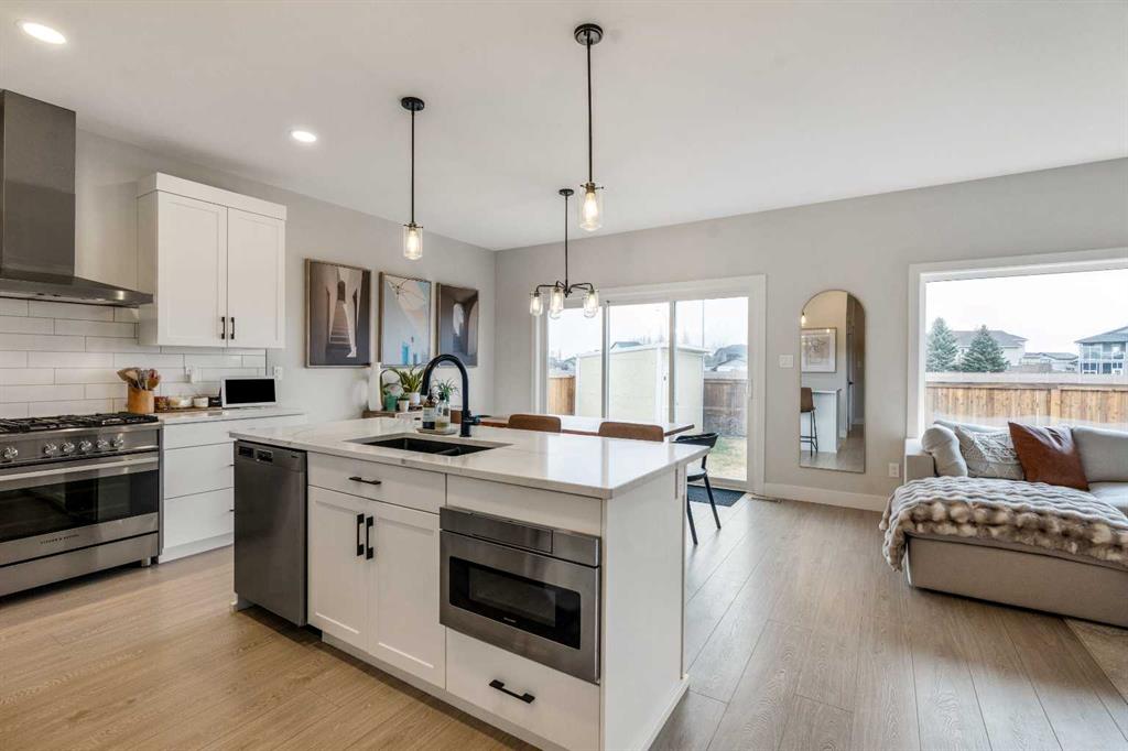 Step into a home that makes sense and fits your family—where clean lines, modern design, and striking black accents create a bold first impression that carries throughout. This thoughtfully designed two-story offers the space and flow today’s buyers actually want. The main floor is anchored by a bright, open-concept layout with oversized rear windows that flood the home with natural light and frame the wide-open views behind—no neighbors, just sky and space. A walk-through pantry, functional mudroom, and smart storage solutions make everyday living effortless, while the upgraded kitchen delivers both style and substance. Upstairs, the bonus room over the garage is perfectly positioned to keep sound tucked away from the bedrooms—ideal for movie nights, kids playing, or a shift-working spouse needing real rest. The primary suite feels like a retreat, complete with a walk-in closet that connects directly to the laundry for that “why doesn’t every home do this?” moment, along with a clean, modern ensuite built for comfort. Outside, everything is already done for you. Fully landscaped, fenced, and complete with underground sprinklers, this yard is ready to enjoy from day one—no projects, no weekends lost to yard work. Just move in, fire up the BBQ, and actually enjoy your summer the way it’s meant to be. Add in central A/C, and you’re set for every season. Located in one of Lethbridge’s fastest-growing west side communities, you’re buying into more than just a home—you’re stepping into an area on the rise, with new schools, parks, and amenities continuing to shape the future of the neighborhood. Turn-key, dialed-in, and showing like new—this is the kind of home that stands out the moment you walk in