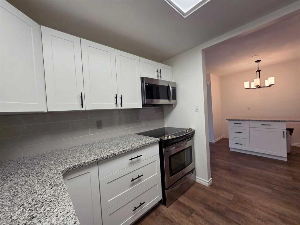 South side condo across from Henderson Lake and Golf Course! Come see this spacious 1275 ft 3 bedroom, 3 bathroom unit which has been completely renovated and updated. Main floor features 2 piece powder room, updated new kitchen with granite countertops, SS appliances and large pantry. A spacious island with storage and seating for casual dining, all new modern light fixtures, bright white walls with black doors and accents, and hand scraped laminate flooring throughout entire unit. There’s a sunken living room with wood burning fireplace and room for more formal dining if you so choose! Step outside the patio doors off the living room and relax around the propane fire table on a sizeable concrete patio, complete with privacy panels on both sides! The upper level has three spacious bedrooms, with the large MBR featuring double doors, double closet plus smaller walk-in closet, a private 4 season cozy sunroom, and a beautiful new ensuite featuring double sink vanity, linen closet and gorgeous tiled 5ft walk-in shower. Two more spacious bedrooms, one with large walk-in closet and completely updated full bathroom complete this level. Full basement with laundry facilities, shelving unit and plenty of storage space. Single attached garage, ample visitor parking and added bonus … a private tennis court! All this for under $300,000! Don’t miss out on this opportunity to live maintenance free on the south side with easy access to all amenities. This quiet 26 unit complex is owner managed by a competent Board of Directors.