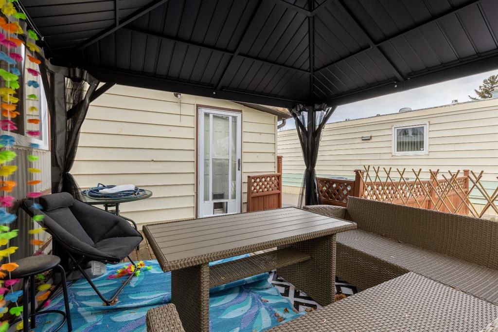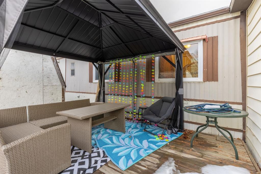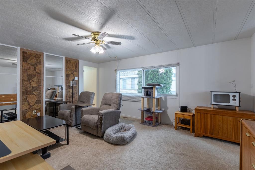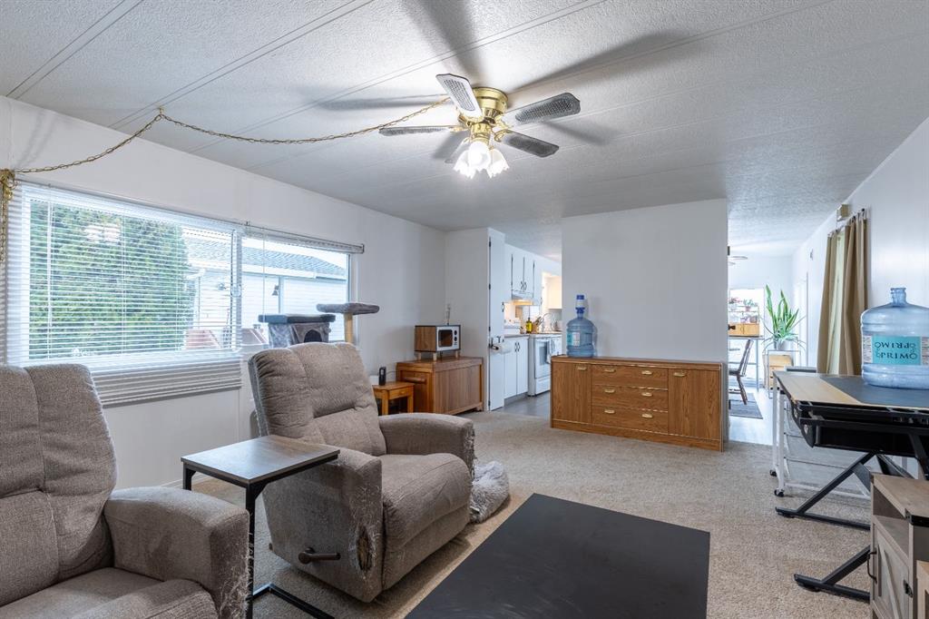 Welcome to Bridge Villa Estates! This cozy unit has received bright updates over the years including a new water tank. Tucked in a corner near the entrance with a fenced in yard and a lovely deck to enjoy the summers on, it already feels like home. With two beds and a den space, this unit is perfect for small families starting out, or individuals wanting a quiet home office set up. There's already a pet door in the attached storeroom, so it's perfect for your park approved furry friends.