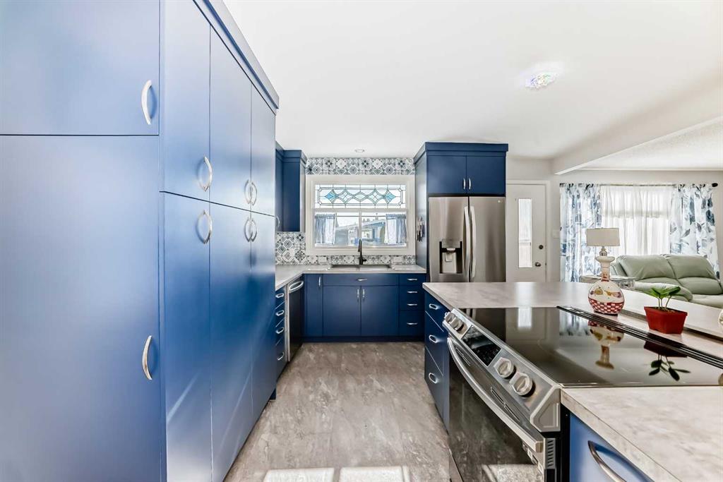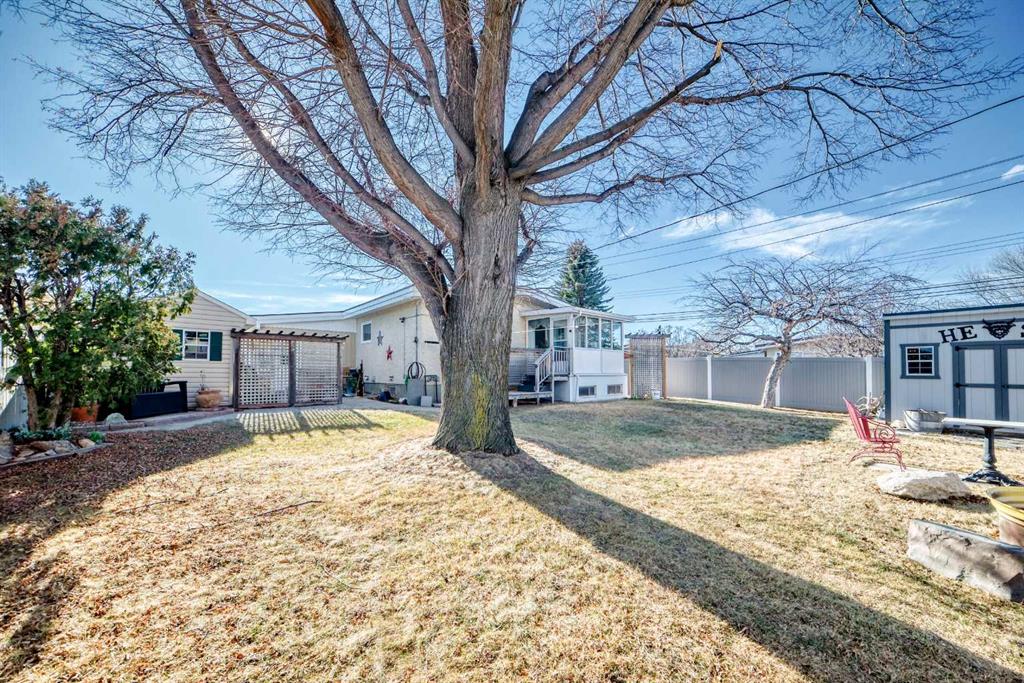 Tucked into a quiet cul-de-sac in a welcoming, established neighbourhood known for its strong sense of community, this well-cared-for bungalow offers space, comfort, and thoughtful updates throughout. The main floor is bright and inviting, with large windows that fill the home with natural light. A newly renovated kitchen features built-in storage including a spice rack, new appliances with ice maker, and updated lighting throughout. The functional dining area, three bedrooms, and a full bathroom with a walk-in wet room shower complete the main level. A cozy sunroom with power adds additional living space and a relaxing spot to enjoy year-round. Numerous updates have been completed over time, including new flooring and fresh paint on the main floor, updated light fixtures, air conditioning, electrical upgrades, roof (2010), furnace (2010), most windows replaced (2011), and hot water tank (2018). The fully finished basement offers two additional bedrooms, a spacious family/rec room, laundry area, and a jetted tub in the basement bathroom. An extra flexible room provides space for guests, a home office, or hobbies. Outside, the private backyard is beautifully maintained and very clean, featuring mature trees, flowering gardens, a new fence, and two powered storage sheds. The sunroom and yard create a cozy, functional extension of the home for relaxing or entertaining. Proudly owner-occupied for decades, this home has been carefully maintained and is ready for its next chapter. Conveniently located near schools, parks, shopping, and major routes for easy commuting.