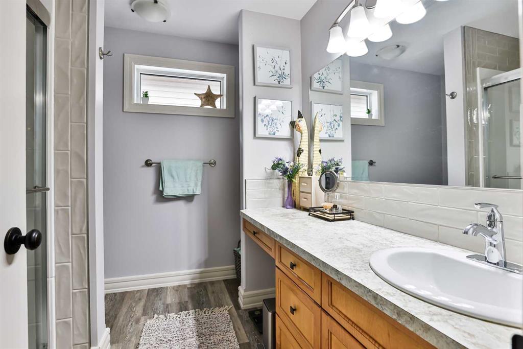 Welcome to 30 Riverview Crescent — a beautifully maintained home in one of Lethbridge’s most established neighborhoods. With thoughtful updates, bright living spaces, and a functional design, this property offers both comfort and practicality. The main level features hardwood flooring throughout a spacious living and dining area, a well-appointed kitchen with laminate countertops, coffee bar with under-cabinet lighting, and a sun tube that brightens the space. Two bedrooms and a full bathroom complete this level. A few steps up, the primary bedroom sits on its own private level, complete with a walk-in closet and full ensuite — a quiet retreat at the end of the day. Downstairs, you’ll find a cozy family room with a gas fireplace, an additional bedroom, another full bathroom, and plenty of storage. Outside, the covered patio provides space to relax or entertain, dry storage conveniently located underneath and an aggregated patio with gas hookup. Additional features include air conditioning, a heated double garage with upgraded epoxy flooring, Navien on-demand hot water, soft water system, and a roof replaced in 2017. Located in a quiet, family-friendly area close to parks, schools, and walking paths, this home shows pride of ownership and has been well cared for inside and out.