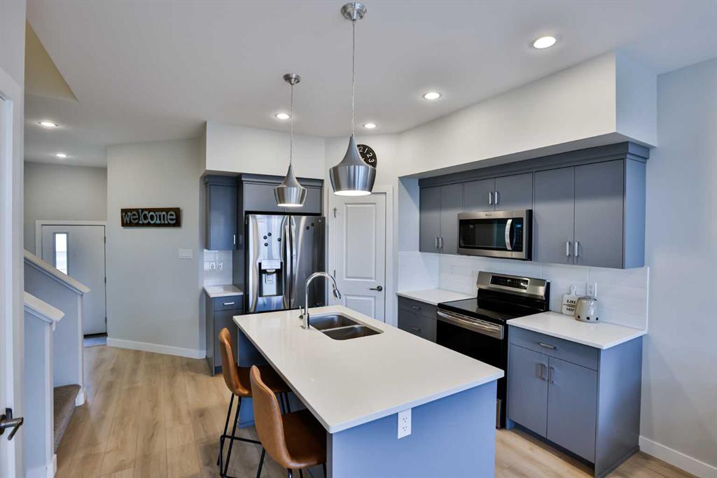 A modern condo with excellent street appeal and the convenience of a single attached garage. As you enter the main living space, you’ll appreciate the bright, open feel created by 9-foot ceilings, stylish grey cabinetry, a corner pantry, and beautiful white quartz countertops. Upstairs features a dual-primary layout — two spacious bedrooms, each with its own huge walk-in closet and private bathroom. They’re smartly separated by the laundry room, which overlooks the open-concept staircase for an airy feel. Looking for an investment? Or hoping to offset your mortgage while you live upstairs? The walkout basement includes a studio suite with its own entrance. The current tenant pays $1,000/month and is in place until the end of May (must be accepted by the buyer). The suite offers a 5-ft tiled shower with glass door, vanity, and a compact kitchenette at the rear. The backyard features a private deck with an aluminum spindle railing and a privacy screen—perfect for relaxing outdoors. Condo fees include common-area maintenance, insurance, snow removal, and reserve fund contributions. Located in a fantastic area with quick access to Whoop-Up Drive and just steps from restaurants, bars, coffee shops, grocery stores, and everyday amenities in The Crossing. Contact your favourite REALTOR® to book a showing on this great property!