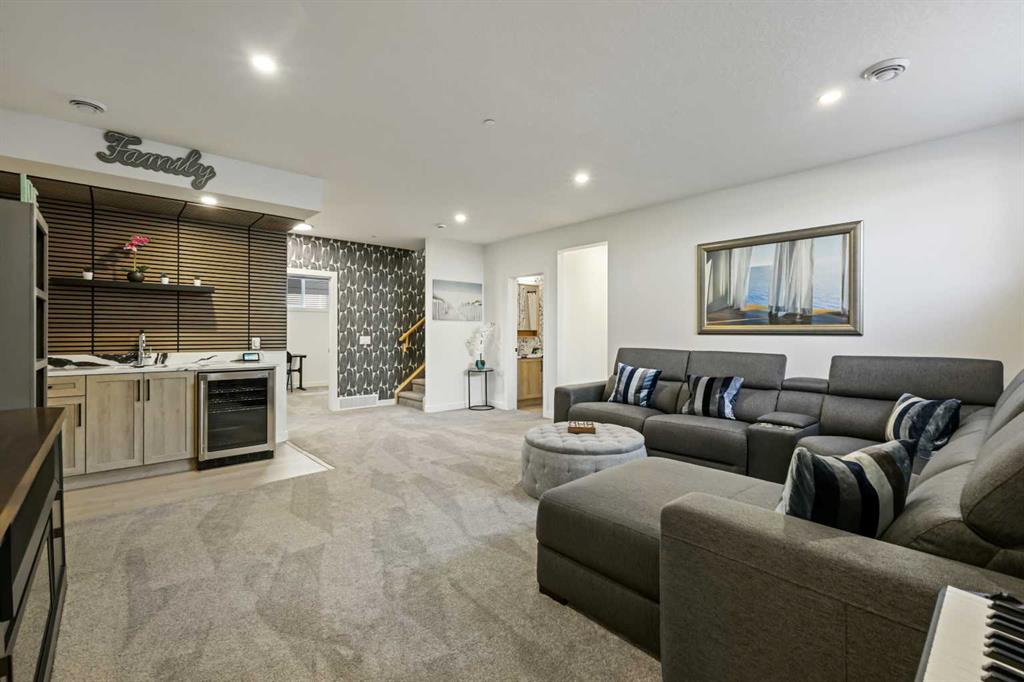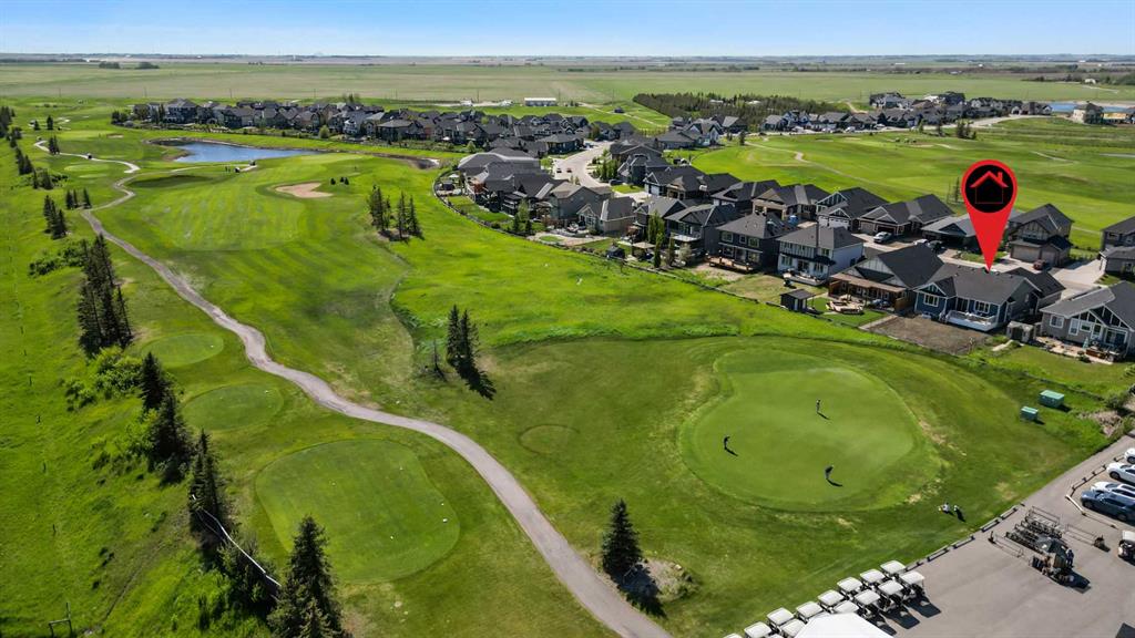 This pristine 5-bedroom, 3-bath bungalow offers a perfect blend of style, comfort, and function, ideal for families, retirees, or anyone looking to escape the buzz of the city. With James Hardie Board siding, you get lasting quality and curb appeal, further elevated by a triple car garage featuring elite walnut carriage doors, black satin windows and hardware, with epoxy finish inside the garage. The aggregate driveway and sidewalk are beautifully finished and built to last, while gemstone lighting adds charm and elegance in the evening. Inside, you're welcomed by a large foyer with stunning luxury vinyl flooring, two closets and a wide-open layout filled with natural light. The open-concept kitchen includes a large island, quartz countertops, gas stove, double oven, upgraded hood fan, herringbone backsplash, upgraded lighting, and a walk-through pantry leading to a mud/laundry room with a sink, built-in shelving, and cupboards. The living room features a gas fireplace and a stylish feature wall, with patio doors opening to a back deck perfect for BBQs, relaxing with friends, or practicing your putting. The primary bedroom is a private retreat with a large soaker tub, walk-in shower with quartz bench, private toilet room, and a spacious walk-in closet. Also on the main floor is another bedroom and a 4-piece bath. Downstairs, enjoy a comfortable basement with upgraded carpet and 10lb underlay, a large family room with a wet bar, three spacious bedrooms, a 4-piece bathroom, and a sizable utility room with extra storage. With thoughtful upgrades throughout, this move-in-ready home is a showstopper. Located just 25 minutes to Calgary or 20 minutes to Strathmore, this is an incredible opportunity to own a high-quality home in a peaceful community—contact your agent today for a private showing.