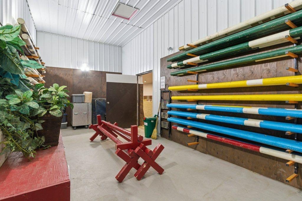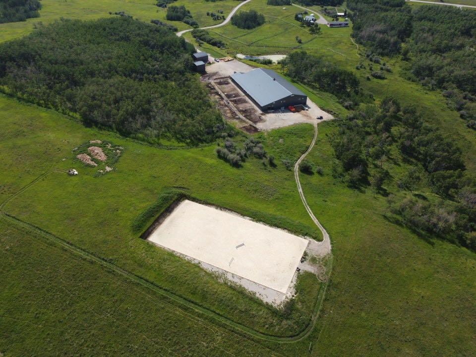 This premier equestrian estate offers an outstanding blend of functionality, comfort, and future residential potential, all set within the picturesque landscape of Foothills County. Ideally located just south of the popular Granary Road Farmer’s Market, this property is the perfect setting for a private equestrian retreat or a fully operational riding centre. At the heart of the property is a state-of-the-art 80 by 200-foot heated indoor arena, designed with premium waterless footing to ensure excellent traction and minimal maintenance. Equine-specific LED lighting brightens the space, allowing for year-round riding and training in any weather. Connected to the arena is an impressive barn, featuring in-floor heating and 16 spacious 12x12 stalls. The barn is thoughtfully outfitted with two well-appointed tack rooms, two bathrooms, two offices and kitchen. For equine care there’s a wash bay with overhead hose boom, laundry and blanket storage and dedicated jump storage storage room, offering everything needed to support a high-functioning equestrian facility. Beyond the barn, the outdoor amenities are equally impressive. Sixteen pipe-fenced turn-out paddocks adjacent to the barn, all serviced by the 8 automatic waterers. Four additional one-acre pastures and a professionally built 100 by 200-foot outdoor arena with a specialized base mat system offers excellent performance and training conditions. Riders will also appreciate the scenic trails that wind through mature trees, creating a peaceful and natural environment ideal for hacking and leisurely rides. One of the most enticing features of this property is its elevated building site, which provides breathtaking city views and is ideally suited for a walk-out basement design. All utilities have already been trenched to the site, streamlining the future construction process and offering convenience for those looking to build their custom dream home. Completing the property is a large metal hay barn and a substantial 40 by 40-foot heated shop with insulated walls, a concrete floor, and a heavy-duty equipment lift—perfect for machinery storage and maintenance. This extraordinary estate seamlessly combines professional-grade equestrian infrastructure with the tranquility and beauty of rural living. Whether you envision it as a personal horse haven or the foundation of a thriving business, this Foothills County gem is a rare opportunity not to be missed.