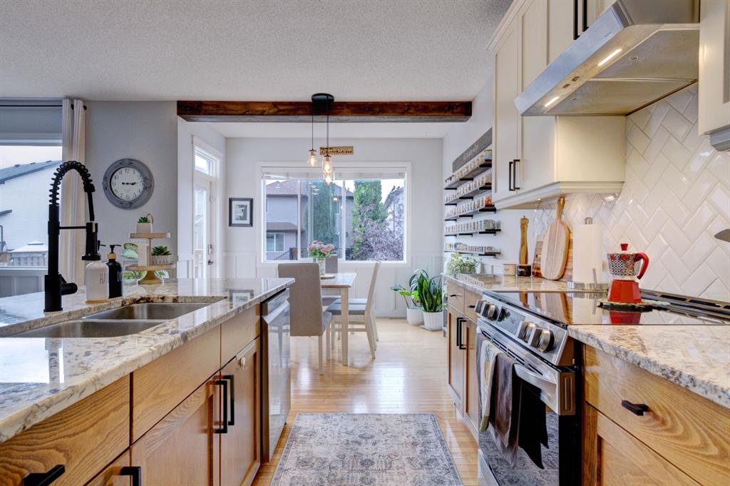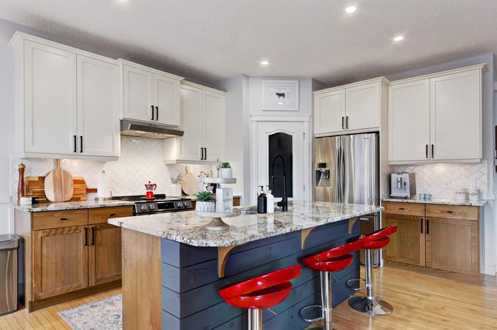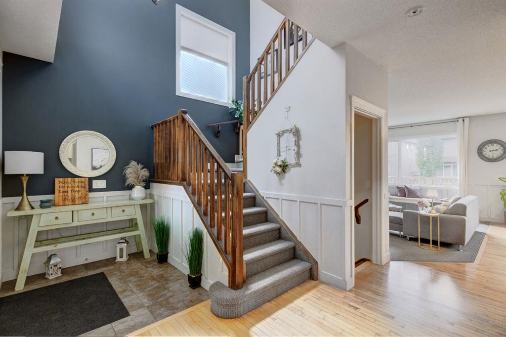 ~Welcome Home~ this stunning two-storey home nestled in sought after Cimarron is situated on a pie lot with convenient alley-access. Offering 4 bedrooms, 3.5 bathrooms, and nearly 3000 SQFT of living this home is sure to impress. Link to video; https://youtu.be/qsThU3LEWL0. The thoughtful design of this space combines functionality, warmth, and style — ideal for growing families or those who love to entertain. The main floor features an open-concept with large sun-filled windows that bathe the home in natural light throughout the day. The heart of the home is the tastefully updated kitchen, featuring newly painted upper cabinets, stylish new hardware, a generous central island, an abundance of counter and cabinet space, and a convenient corner pantry. Just off the kitchen, the spacious great room offers a cozy gas fireplace, while the sunny dining area provides the perfect setting for both everyday meals and larger gatherings. Freshly painted and enhanced with charming board & batten wall detailing, the main level also includes a convenient 2-pc powder room and a functional laundry room with upper cabinets and a folding counter. Upstairs, you'll find four generously sized bedrooms, including an indulgent primary retreat with a luxurious 5-pc ensuite and a walk-in closet. Two of the additional bedrooms also feature walk-in closets, offering plenty of space for family or guests. A spacious 4-pc bathroom adds to the comfort and convenience on this level. The fully developed basement is a true standout — oversized windows flood the space with natural light, creating the feel of a walkout. This lower level includes a large recreation room, a 4-pc bathroom, and ample storage — ideal for movie nights, hobbies, or accommodating guests. Step outside to a beautifully maintained west backyard, perfect for soaking up the afternoon sun. The oversized deck is an entertainer’s dream — great for barbecues, family gatherings, or simply relaxing. The alley access with a gated entry makes trailer parking a breeze, offering both convenience and cost-saving storage. Double attached garage with loads of upper storage and low-maintenance landscaping complete the package. Located just minutes from schools, parks, walking and biking trails, and a wide range of amenities, this exceptional home checks all the boxes! **Notable updates include: (2019) roof, (last 4 years) Painted upper kitchen cabinets and new cabinet hardware,Fresh paint on the main floor, Added board and batten wall detailing, New stove**