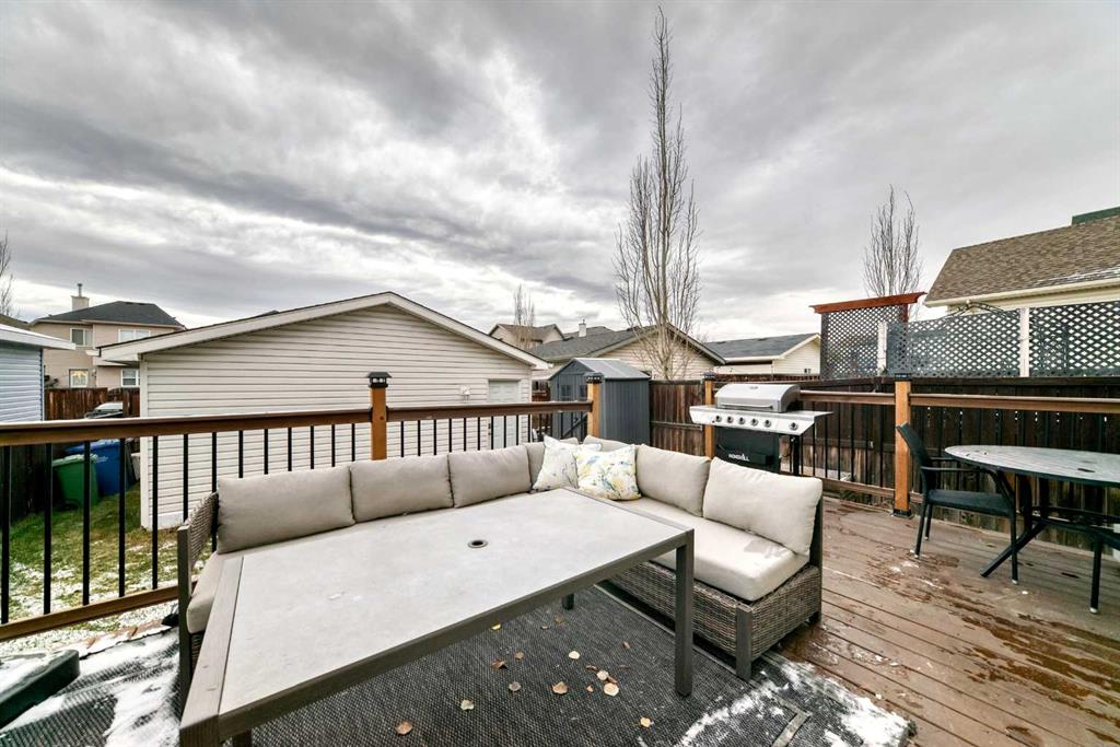 Welcome to 18 Crystal Shores Rd, a fully finished and charming, this 4-bedroom, 2.5-bath home offers year-round lake access in the highly desirable Crystal Shores community. The main floor boasts a bright living room with laminate flooring, a gas fireplace, and a bay window flooding the space with natural light. The renovated kitchen features new cabinets, newer appliances, and a sliding door to the new wood deck—perfect for entertaining. A main-floor laundry with newer washer/dryer and a convenient half bath complete this level. Upstairs, discover three spacious bedrooms, including a primary suite with walk-in closet and 4-piece ensuite, plus an additional 4-piece bathroom. The fully finished basement offers a large family/TV room, a bedroom or gym space, and a 3-piece rough-in for future bathroom development. The mechanical room includes HVAC, humidifier, water softener, and more for comfort and efficiency. Outside, enjoy a fully fenced backyard and an oversized double detached garage providing ample storage and workspace. The new deck adds extra outdoor living space. Set on a quiet street, this home is close to top schools, walking paths, parks, the Okotoks Rec Centre, and easy access into Calgary, all while enjoying Crystal Shores lake privileges. A wonderful opportunity to embrace comfort, style, and lakeside living in one of Okotoks’ most sought-after neighborhoods. OPEN HOUSE on Sunday Nov 22 from 12 pm to 3 pm.