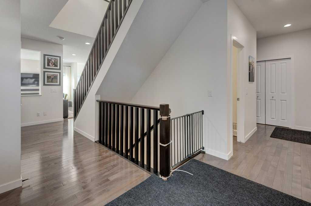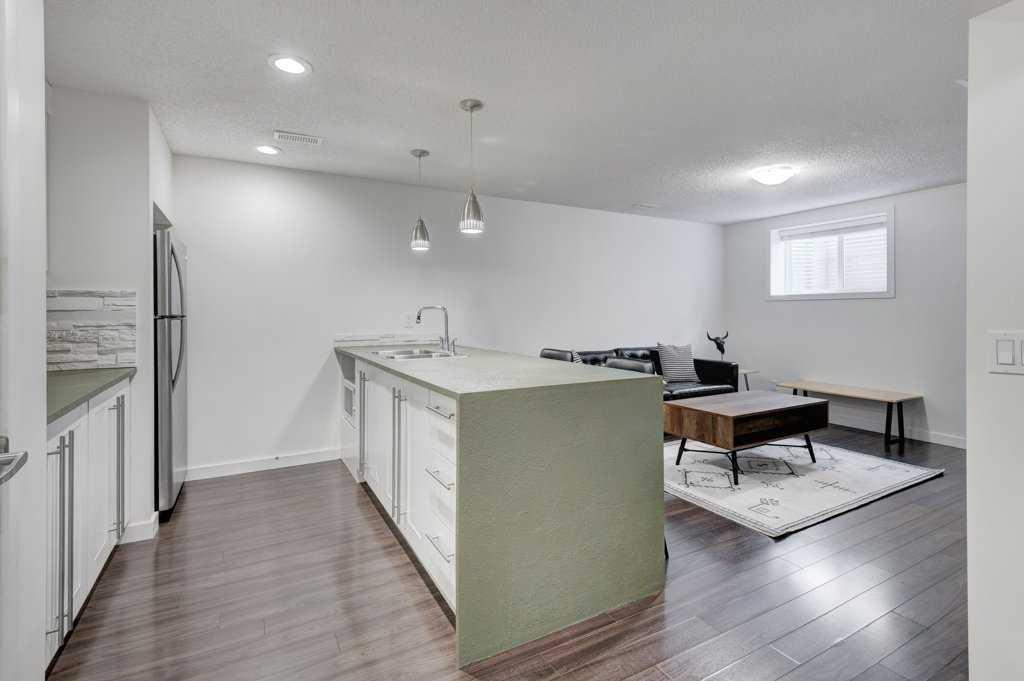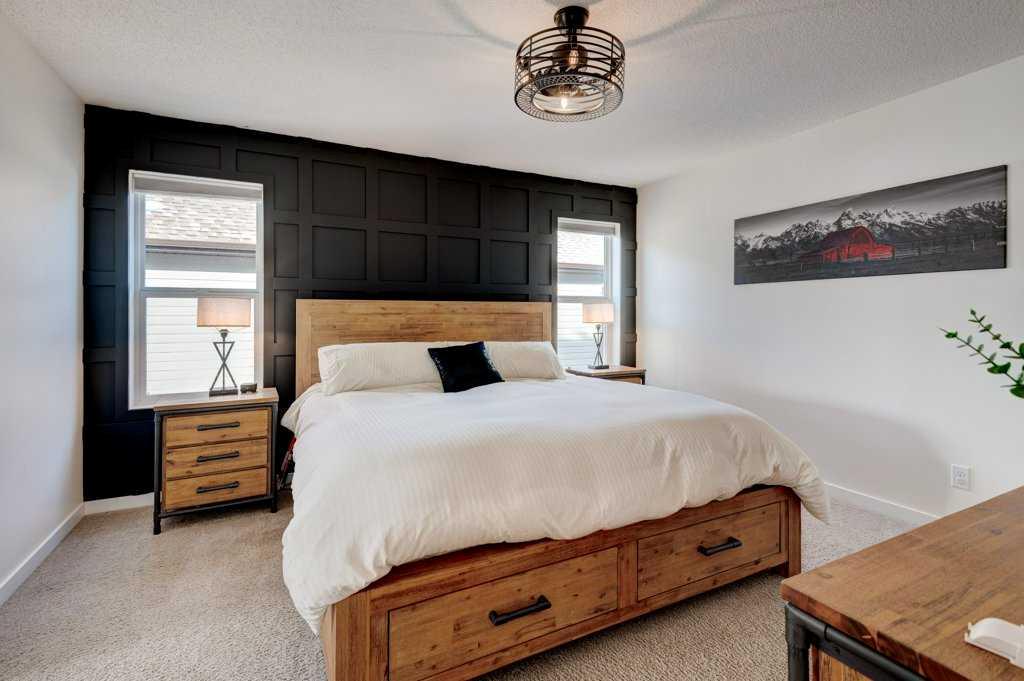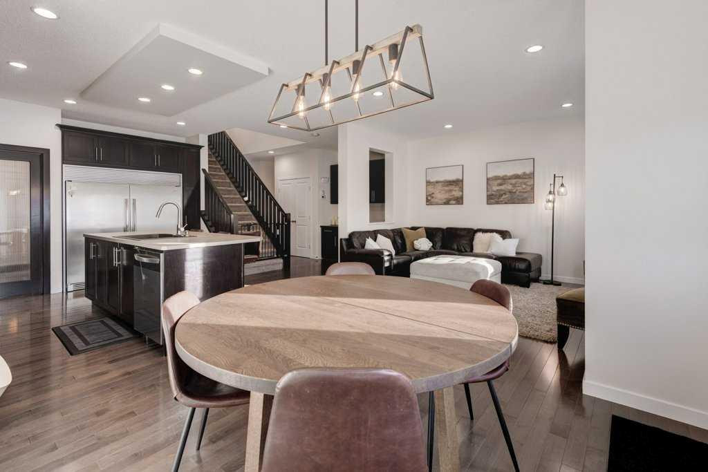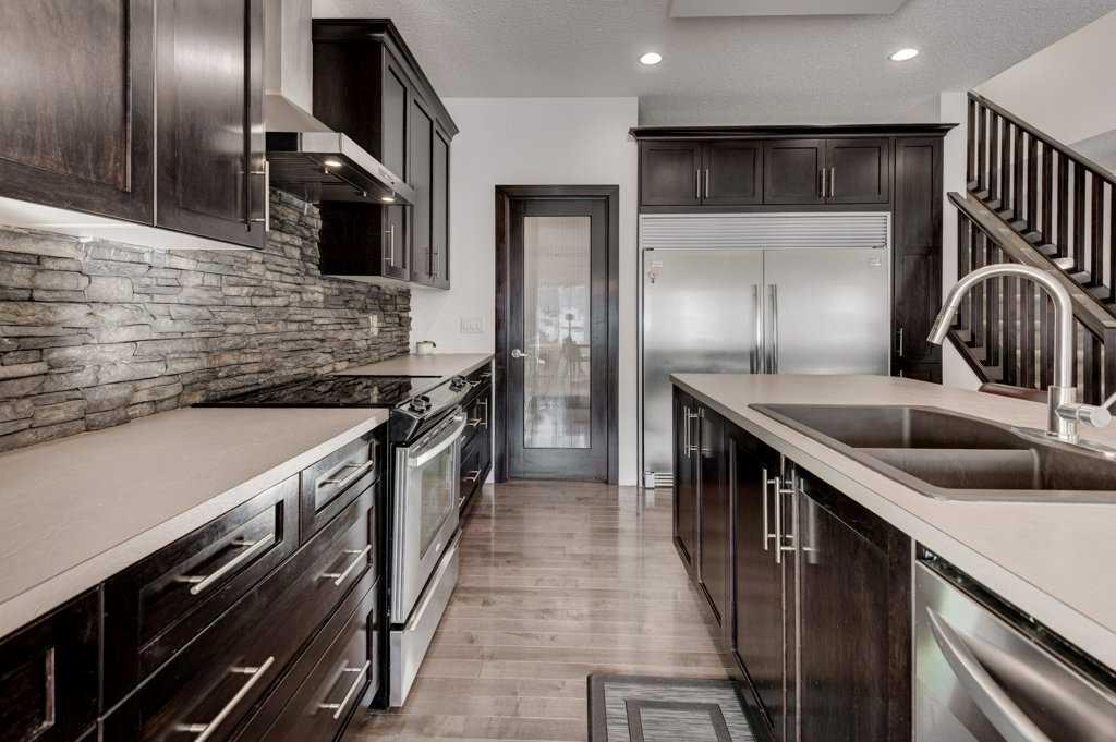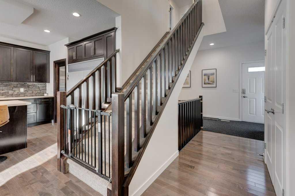 Welcome to this stunning 2,140 sq. ft. detached two-storey home located on a quiet street in the desirable community of Cimarron Vista in Okotoks. Boasting exceptional curb appeal, the exterior features elegant stone accents paired with contemporary colours and design details that immediately impress. Inside, the home offers 4 bedrooms and 3.5 bathrooms, thoughtfully designed for both comfort and functionality. The primary suite is a true retreat, featuring a spacious layout, walk-in closet, and a luxurious 5-piece ensuite with dual vanities and a relaxing soaker tub. Two additional generously sized bedrooms upstairs each include their own walk-in closets. The upper level is completed by a bright and spacious bonus room with built-in storage and a dedicated upper laundry room. The main floor showcases an open-concept layout with beautiful maple hardwood flooring throughout. The chef’s kitchen is equipped with stainless steel appliances, including a professional-grade stand-up refrigerator and freezer, a large central island, walk-through butler's pantry, and stone backsplash. Recessed lighting, contemporary light fixtures, and fresh white paint enhance the light and airy feel of the home. The living area is anchored by a gas fireplace with a sleek tile surround and wood mantle, while the large open foyer, elegant maple bannisters, and a convenient office nook off the kitchen add both style and practicality. The fully finished basement offers incredible flexibility with a separate living space that includes a large bedroom, 4-piece bathroom, cozy family room, wet bar/kitchenette, and its own laundry area—ideal for older children, guests, or multi-generational living. Enjoy the south-facing backyard with a brand-new deck and no rear neighbours, perfect for outdoor entertaining and relaxing in the sun. Ideally located close to excellent schools, parks, playgrounds, the Sheep River and pathway system, as well as restaurants and shopping, this home truly offers the best of family living in Okotoks.