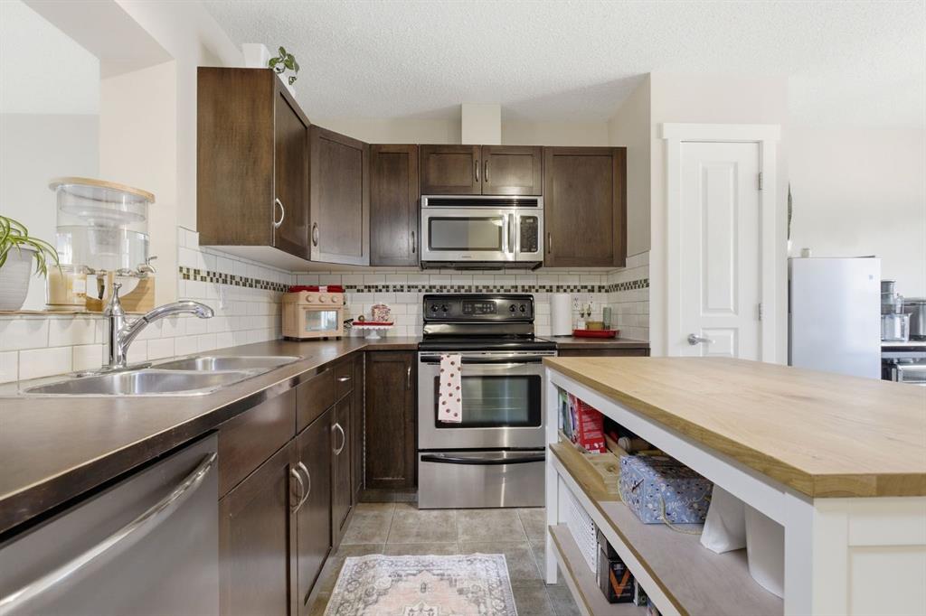 Welcome to your new home in Cimarron, Okotoks! Tucked away in a peaceful complex, this inviting 3 bedroom, 3 bathroom townhome offers a warm and welcoming atmosphere. Step inside to find a comfortable living space, ideal for relaxing evenings or casual get-togethers with loved ones. The practical kitchen is equipped with everything you need, including modern appliances, large kitchen island and ample cabinet space. Upstairs, three bedrooms provide plenty of space for the whole family. The master bedroom features its own ensuite bathroom for added convenience. Downstairs, the fully finished basement offers versatility and extra room for storage or hobbies, ensuring there's space for everyone to enjoy. With a single attached garage, parking is a breeze, providing both convenience and peace of mind. Outside is a newly updated deck, perfect for enjoying your morning coffee or soaking up the sun on lazy afternoons. Conveniently located near walking paths, shopping, and amenities, this townhome offers the perfect blend of tranquility and accessibility. Furnace has been upgraded in 2023, Dishwasher is newer. Don't miss out on this opportunity to make this charming townhome yours – schedule a viewing today!