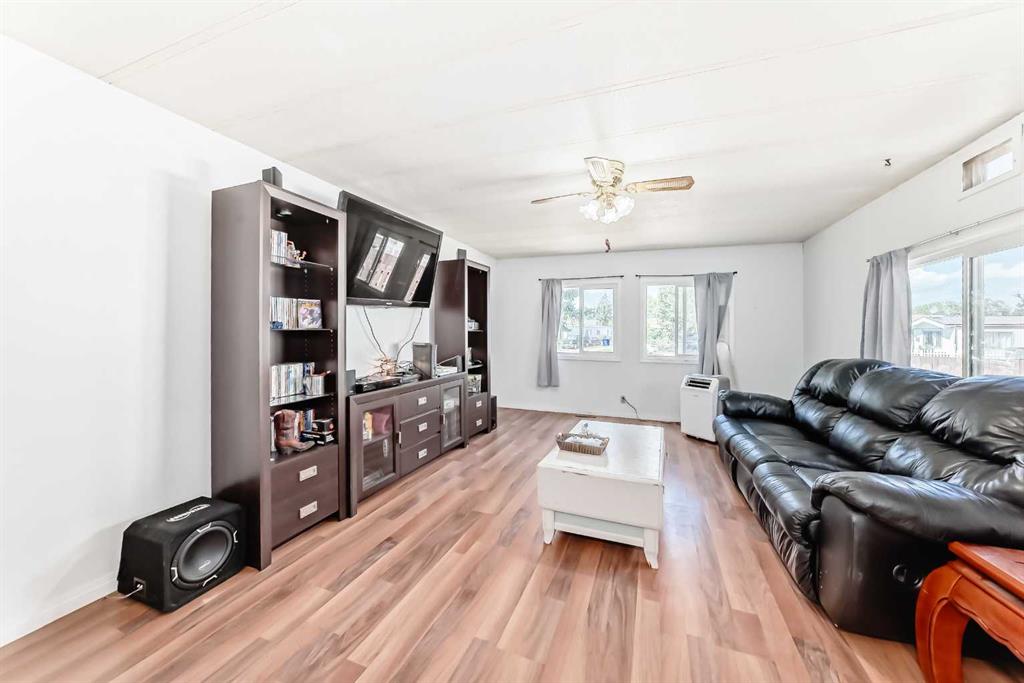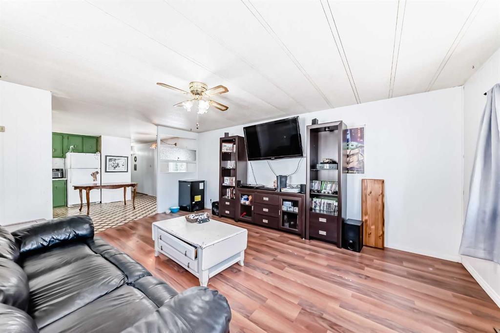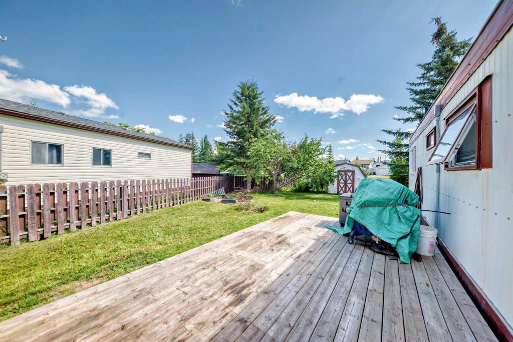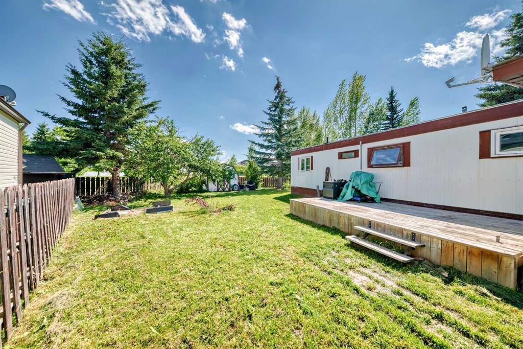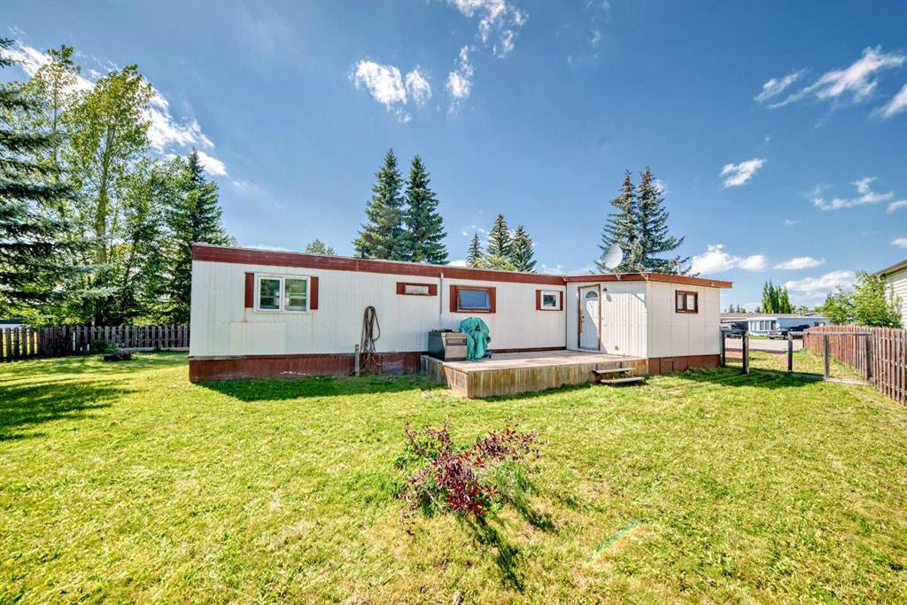 YOU OWN THE LOT!! This fantastic opportunity offers true home ownership with no monthly lot fees, making it an ideal choice for first-time buyers, downsizers, or investors looking for value and long-term savings. Situated on a massive lot backing onto a beautiful green space, this property combines privacy, nature, and space—something rarely found at this price point. Step outside and enjoy the outdoors on your oversized deck, perfect for summer barbecues, morning coffee, or evening relaxation under the stars. The expansive yard offers endless possibilities—garden, play area, fire pit, or even space to build a garage(it will be the buyers responsibility to confirm the town of Olds will allow a garage to be built) or workshop. Inside, you'll find a bright and functional open-concept layout that makes the most of every square foot. The spacious living and dining areas flow seamlessly into the kitchen, creating a warm and inviting space ideal for everyday living and entertaining. With two comfortable bedrooms, there's room for a small family, guests, or a home office. This home is more than just a place to live—it's a smart investment in your future. With affordability, privacy, and a lot that you actually own, this property checks all the boxes. Don’t miss your chance to step into home ownership in a peaceful setting that feels like home the moment you arrive.