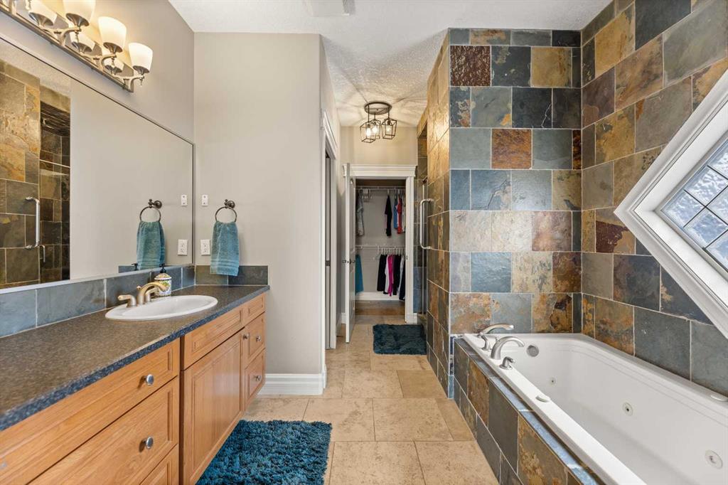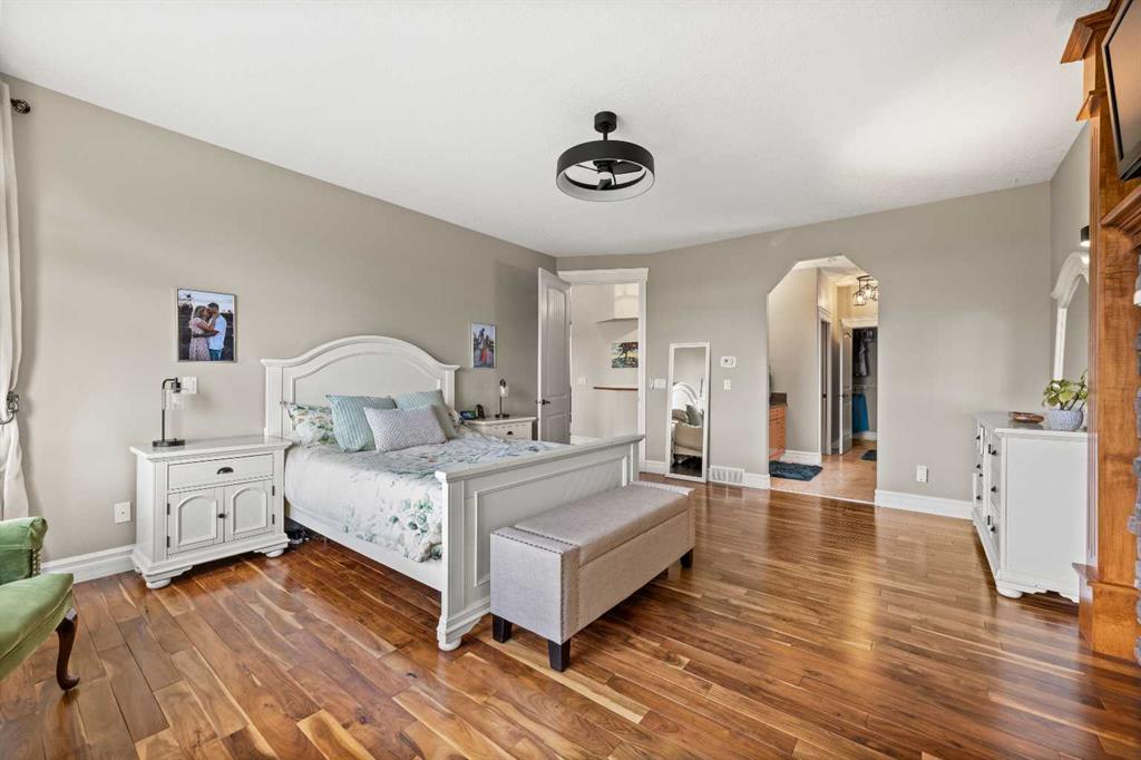 Looking for more room? Best Value in OLDS!! This beautiful, bright WALKOUT bungalow with MOUNTAIN VIEWS is perfectly located on a large corner lot overlooking “the Vista’s” in Olds. Amazing opportunity to own this FANTASTIC property with a HUGE LOT, close to hospital, walking trails, and parks. Situated on a large landscaped yard, the EXECUTIVE house and property with its open layout, multitude of features inside and out make this a wonderful home for entertaining and a fabulous home for anyone living in town. It has amazing views of the mountains from your living, dining, primary bedroom and rear covered deck. This stunning home has a total of 3 bedrooms plus main floor office/study and 3 full bathrooms. Upon entering, you will notice the gorgeous hardwood flooring, incredibly high ceilings and open concept living, dining and kitchen area. The spacious kitchen boasts granite countertops, NEW gas-stove, large pantry & island with breakfast bar offering plenty of work space. The living room showcases a beautiful & grand stone-facing gas fireplace. Both the living room and dining area feature large west-facing windows making this a bright and inviting space for entertaining family and friends. Right off the dining area you can access the west facing 17'3" x 12'10" COVERED REAR DECK with amazing views of the Rocky Mountains. A great spot where one can enjoy the sunshine and SPECTATULAR YARD. Towards the front of the home you will find a good-sized office/study which could also be used as another bedroom. The primary bedroom faces west and comes with a stone facing fireplace of its own and spacious ensuite bathroom; complete with walk-in closet, walk-in shower and jetted tub. Another full bathroom and laundry area complete the main floor. The walkout basement level has a large family/recreation room with wood stove and wet bar, 2 additional large bedrooms, and another full bathroom and storage area. Other great features include heated flooring throughout the basement and garage. The home is also equipped with AC, a central vacuum system and is completely fenced and landscaped with underground sprinklers, a lower walkout patio, fire pit area, SWIM SPA, and raised garden/flower beds. A TRIPLE CAR HEATED GARAGE (Bay 1 is 24'3" W x 26'9" D and Bay 2 is 14' W x 28'9" D) with a huge front driveway completes the package. You can simply move in and enjoy this WONDERFUL property.