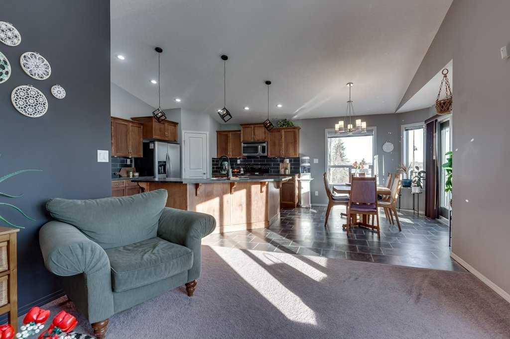 Unique floorplan with 3 bedrooms plus a den, 3 bathrooms and a walk out basement on a huge pie lot. Walk into an impressive front entry, with views to the basement making it instantly part of main living area. Upstairs to a bright open floorplan with tons of windows. Kitchen has extra cabinets for coffee bar area, corner pantry, and centre island. Dining room with doors to large south facing upper deck overlooking yard so you can watch the kids play. Sunny living room with vaulted ceilings. Good sized bedroom and 4pce bathroom. Upstairs is a private master bedroom with 3pce ensuite, walk in closet and lots of room for king sized bed. The downstairs has a wow family room, large bedroom, 4pc bath, storage/utility room with sink and a office/flex room that walks out to yard perfect for at home work, or home schooling. All this on a HUGE south facing pie lot backing onto walking path close to schools, parks & multiplex. Yard is fenced with large garden shed, firepit area, gazebo and hot tub(as is sellers haven't used in over a year). Shingles were replaced in 2024
