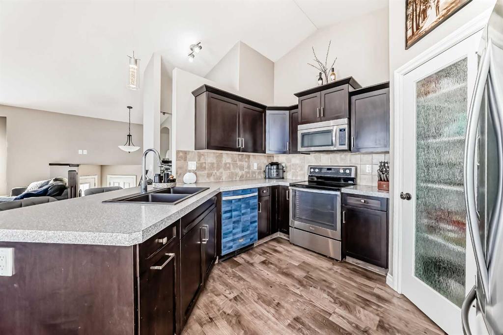 This like new home features a wide open floor plan with vaulted ceilings and large windows that fill the space with natural light while showcasing the incredible views. The main floor offers two bedrooms, including a spacious primary with a 3 piece ensuite, along with a 4 piece main bathroom. The kitchen is designed for both function and style with modern dark cabinetry, ample counter space, a pantry, and quality stainless steel appliances. The recently developed basement adds even more living space with two additional bedrooms, a 3 piece bathroom combined with a convenient laundry area, and a large family room perfect for relaxing or entertaining. If you’ve been looking for a place that feels a bit more private without leaving town, this one is worth a look. Backing onto an Environmental Reserve and conservation area, with open farmland to the east, it has a quiet, almost country feel. The main floor has a nice open layout with vaulted ceilings and big windows that bring in a ton of natural light and really show off the view. You’ll find two bedrooms up, including a primary with its own 3 piece ensuite, plus a full 4 piece bathroom. The kitchen has dark cabinetry, plenty of counter space, a pantry, and stainless steel appliances, all tied together with hardwood floors. Downstairs has recently been finished and adds two more bedrooms, a 3 piece bathroom with laundry, and a large family room that gives you some extra space to spread out. The location is great for families or anyone who likes being outside. There are walking trails along Waskasoo Avenue, plus an outdoor rink, splash park, and elementary school all close by. Shopping and the multiplex are just a short drive away.