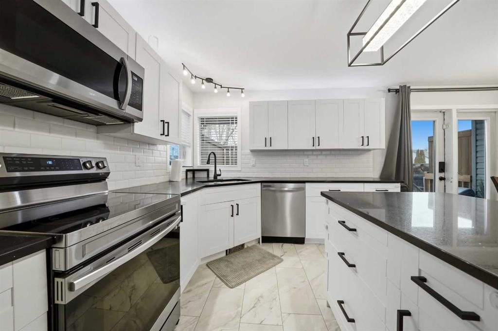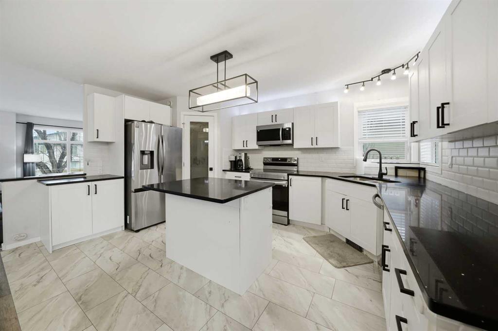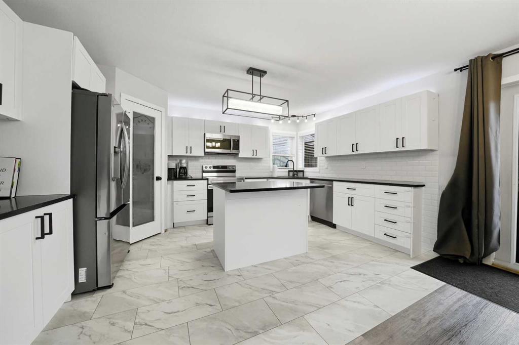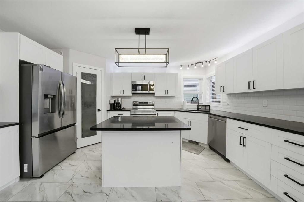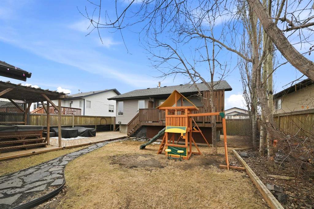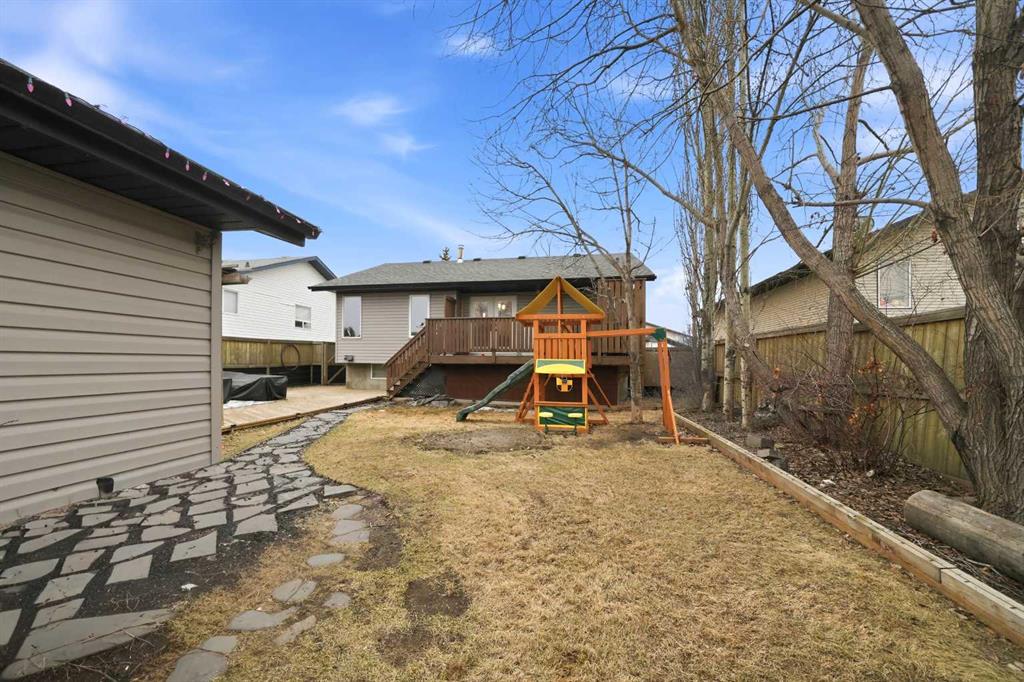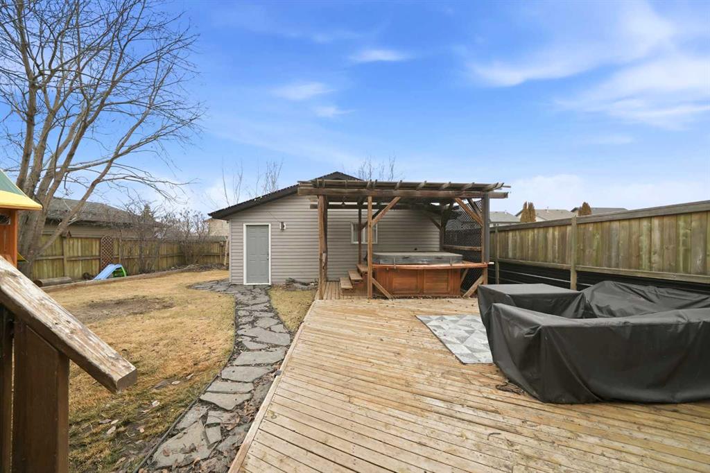 Great street appeal welcomes you into this well-maintained 4 bedroom, 2 bathroom bungalow, ideally located close to parks and schools. Inside, a bright sunken living room adds character and separation to the main living space. The main floor offers 2 bedrooms, a full bathroom, and a functional kitchen complete with a corner pantry, island, and newer appliances. The dining area leads directly to the back deck, making it easy to enjoy outdoor living and entertaining. The fully developed basement includes 2 additional bedrooms, a second living area, a full bathroom, and a convenient laundry room, along with in-floor heat for added comfort. Over the past year, the home has seen updates to the kitchen, bathrooms, flooring, and trim, plus the addition of a new furnace and air conditioning system. The building envelope has also been updated, with house shingles replaced in 2016 and garage shingles in 2024. The fully fenced yard is set up for both everyday use and entertaining, featuring a large back deck, hot tub, and pergola. The detached double garage offers dual overhead doors, side-mounted openers for a clean ceiling, upgraded lighting, and a built-in workspace. A move-in ready option with the updates, space, and features buyers are looking for right now.