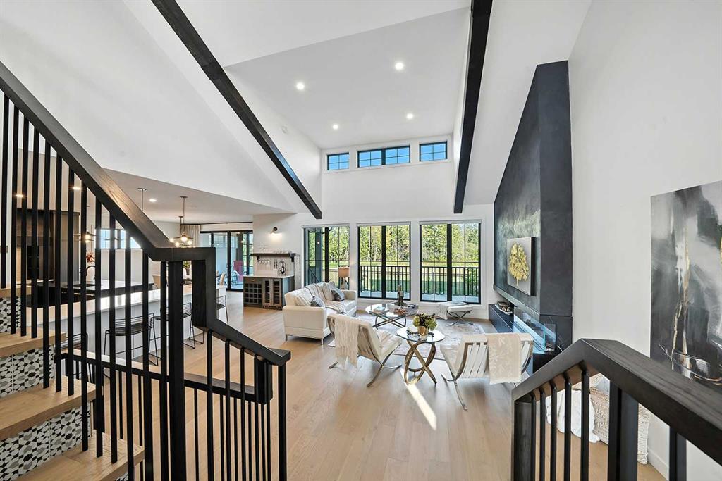 ~PREPARE to be impressed by this EXQUISITE 5-bedroom, 4-bathroom CUSTOM-BUILT by SORENTO CUSTOM HOMES, located in one of RED DEER’S most sought after family friendly neighborhoods. Perfectly positioned backing onto a green space and PAVED WALKING TRAILS, this home offers the peace of nature with the convenience of nearby amenities. Step inside and feel the luxury of warm WHITE OAK hardwood floors stretching across the main level. The chef inspired kitchen is truly the heart of the home- featuring an EAT-UP island, a peninsula, stainless appliances, gas stove, and a butler’s pantry for effortless entertaining and organization. The open concept living spaces flow beautifully into a three-season room outfitted with motorized blinds-A perfect retreat no matter the time of day. Whether it’s the heat of summer or the chill of winter, you'll enjoy total comfort with AIR CONDITIONING, in-floor heating, and a FULLY DEVELOPED BASEMENT. An incredible curb appeal will quickly impress with sleek black framed windows, board and batten siding and craft ORCHARD LIMESTONE. Professionally landscaped yard, and maintenance free fencing with EAST EXPOSURE, offering privacy and tranquility. Be WOWED by the soaring high ceilings that instantly elevate the entire space. Gorgeous, exposed beams add character and charm, perfectly complimenting the warm white neutral palette throughout the home! This stunning architectural detail naturally draws your eye upward and leads to the upper-level bonus room, creating a sense of openness, elegance and effortless connection between main and upper floor! A design that feels as LUXURIOUS as it is WELCOMING! The main floor also has a custom 2-piece powder room with elegant dim lighting, a locker room with storage, beautiful herring bone brick floor off garage entrance. The living room is a true focal point, featuring a sleek electric fireplace. With customizable lighting settings and remote-control operation, you can set the mood anytime of the day or night. Upstairs a large bonus room features bench seating in the front window, a desk for children to do homework, or office space for the busy entrepreneur working from home. There are 3 generous size bedrooms & a 4-piece bath. The primary bedroom located at the back overlooks the EAST SUNRISES, features beautiful VAULTED CEILING, motorized blinds, and an incredible spa like 5-piece ensuite. The SPACIOUS LAUNDRY ROOM, seamlessly connected to the primary bedrooms walk-in closet bringing both luxury & CONVENIENCE! The fully developed basement features 2 spacious bedrooms, one having a walk-in closet, a beautiful 4-piece bathroom, a GYM, and amazing family room with DRY BAR & beverage fridge. More great features include: HANSTONE QUARTZ COUNTERTOPS, 10 FT ceilings in basement, CUSTOM TEXTURED FEATURE WALLS, A/C, HEATED GARAGE, EPOXY FLOORS, LARGE DURADECK, MOTORIZED BLINDS ON MAIN FLOOR & PRIMARY BEDROOM, CHARGING STATION FOR ELECTRIC CAR, WIRED FOR SURROUND SOUND, CENTRAL VACUUM & QUICK POSSESSION