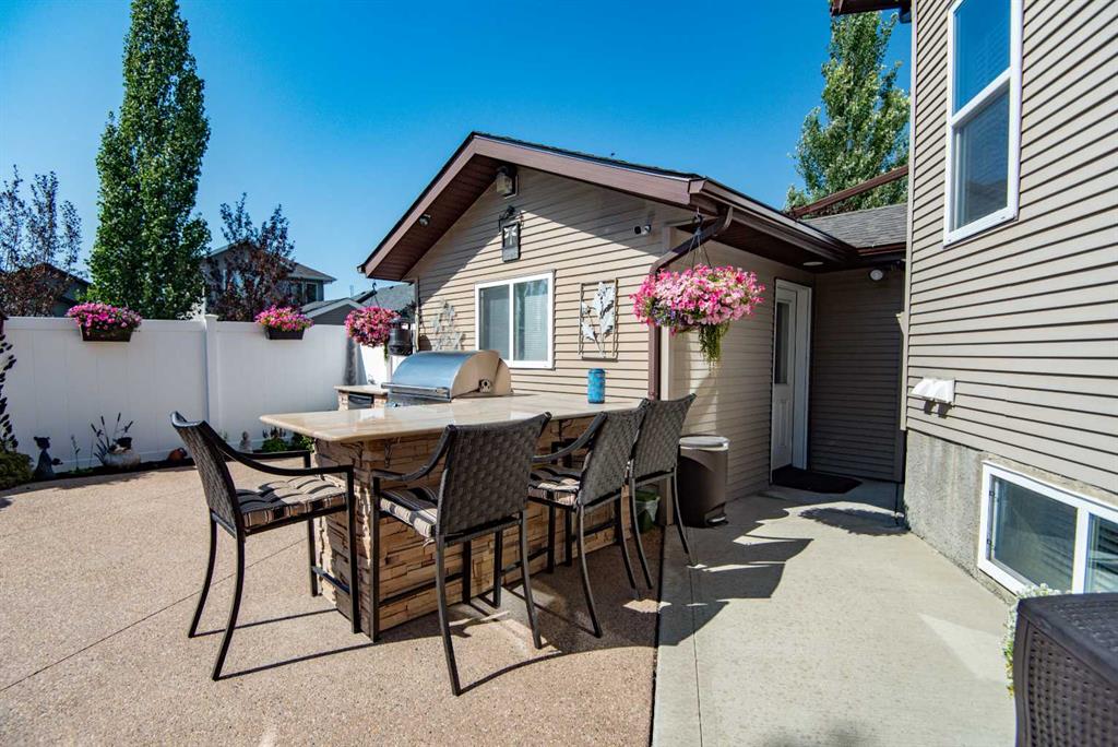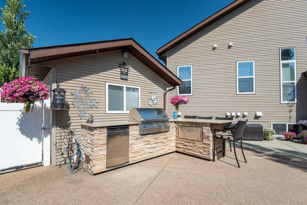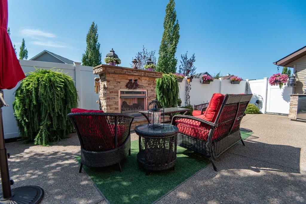 **Introducing 15 Volk Place – A Custom-Built Bungalow Awaits!** Discover the charm of this stunning 4-bedroom, 1820 sq ft bungalow with a main floor office. Custom built by True Line Homes, this home provides fantastic value and lifestyle. Inside, a bright tiled entry welcomes you to an open-concept main floor showcasing quality hardwood and tile flooring, soaring ceilings, and a dedicated front office. The main level boasts an open staircase, a large living room complete with a gas fireplace, seamlessly connecting to the dining area and kitchen. The kitchen is a chef's delight, featuring granite countertops, a spacious center island with an eating bar, quality maple cabinetry, a walk-in pantry, and new stainless stove and dishwasher. The expansive master suite provides ample space for a large bedroom set, and the ensuite is a true sanctuary with a jet tub, new custom-tiled steam shower, double sinks, water closet, and large walk-in closet. The main floor also features a laundry room with a sink, a large second bedroom, and a full bathroom. The custom build features continue downstairs, providing exciting living spaces with a large family room with fireplace, a games table area, a massive wet bar with granite counters and custom cabinets, and a theatre room with screen, projector, and speakers included. Tucked away from the living space are two more bedrooms separated by a 4-piece bathroom. The exterior is fully equipped with incredible features like an outdoor gas fireplace, an outdoor kitchen with stone counters, a bar fridge, and a built-in natural gas BBQ, custom garden shed, covered deck, fully fenced yard, and HEATED WORKSHOP equipped with 220 power and an overhead door. This backyard oasis is designed for entertaining with minimal maintenance. The upgraded security system also makes it perfect for those looking to lock up and travel! Additional highlights include new shingles (2024), in-floor heat, a heated 25x26 garage with tall ceilings, loads of storage, a central vac system, a custom security system by Red Deer Lock and Safe, custom screen doors, a custom steam shower with tempered glass, hot water on demand with a backup tank, and water softener. Close to schools, parks and trails. This home will not disappoint!