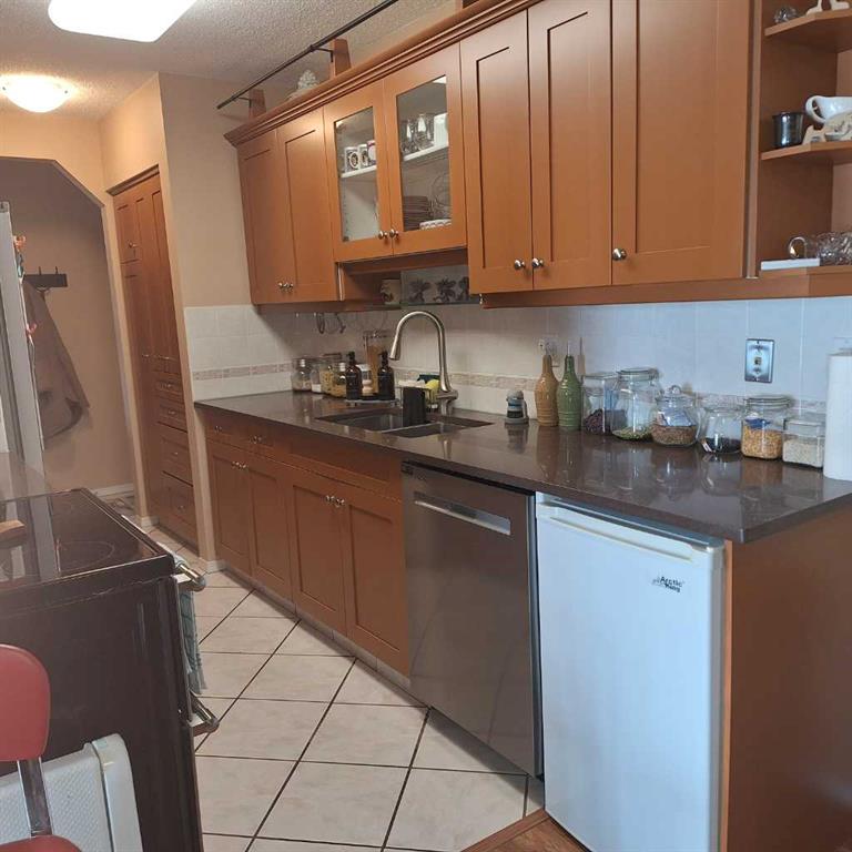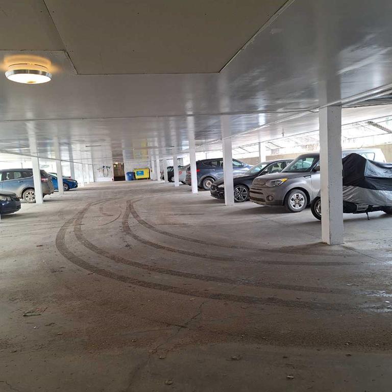 Extensively upgraded, this two bedroom, -two bath unit is waiting for your experience. Upgrades include the following: beautiful quartz countertops in kitchen and all vanities , new stainless steel recessed kitchen sink and countertop sinks in bathrooms, new plug ins in all the bedrooms and Living Room, under cabinet lighting and new doors on kitchen cabinets and repainted, soft close hinges on all doors, organized storage in kitchen and laundry room, new blinds throughout, ceiling fans and lighting. Living Room blinds are operated by a motor DO NOT Attempt to pull the blinds - push the button on the end of the curtain rod. Unit boasts underground parkade with 2 assigned stalls, external storage unit marked "A" (no key for unit itself in lok box just for storage area). Bonus features include gas fireplace, new wall Air Conditioner, 2 balconys - one looking East into parking lot and trees and the other has South exposure. Gas line on balcony. Tile in kitchen, laundry and bathrooms with well maintained laminate throughout rest of home. Massive wall of cabinets in Master bedroom together with walk-in closet so storage is not a factor in this immaculate and well cared for home. Building upgrades include entire interior painted last fall (2025), carpet in stairwell replaced and security coverage now has new system to include 15 cameras stationed throughout hallways, entrances, laundries etc. Reserve fund has allocations for windows and balconies in new future. Just move in and enjoy.