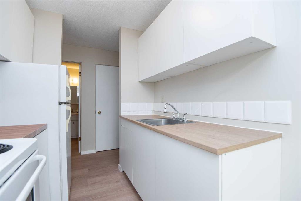 IMMEDIATE POSSESSION – MOVE-IN READY! This top-floor, one-bedroom condo is ideally located in the heart of Red Deer, just steps from parks, scenic walking and biking trails, shopping, public transit, and two schools—Central Middle School and Lindsay Thurber High School. An excellent opportunity for a first-time buyer or investor looking to enter the market. The bright, south-facing unit features an open-concept layout filled with natural light. The kitchen has been updated with new cabinetry and flows into the dining area and spacious living room, creating a comfortable and functional living space.The generously sized bedroom offers a large closet, while the unit also includes convenient in-suite storage and a spacious four-piece bathroom. Recent renovations include NEW KITCHEN CABINETS, NEW VINYL PLANK FLOORING throughout, NEW BASEBOARDS, NEW SHOWER AND FAUCETS, and FRESH PAINT—truly move-in ready. Condo fees include everything except electricity and internet. Previously rented for $1,250 per month, this property presents a SOLID INVESTMENT OPPORTUNITY. Don’t miss your chance to add this well-located and updated condo to your real estate portfolio.