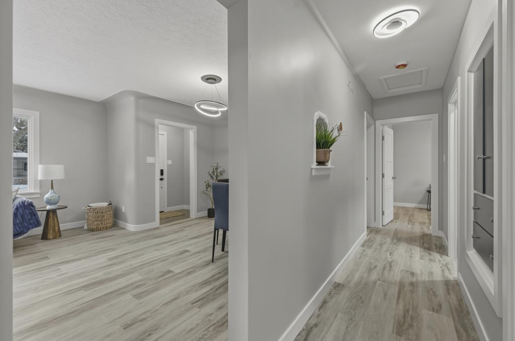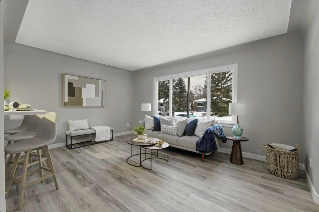 Beautifully updated from top to bottom, this reimagined Woodlea bungalow blends modern style with timeless charm in one of Red Deer’s most sought-after neighbourhoods. Located on a quiet, tree-lined street and backing directly onto Woodlea Park, this home offers unbeatable lifestyle, privacy, and green space access. The main floor features new vinyl plank flooring and a brand-new kitchen with quartz countertops, sleek cabinetry, upgraded lighting, and brand new appliances. The kitchen has been opened into the living space and features a large quartz eating bar while maintaining the 1950s curved corners and ceilings; maintaining its charm and heritage. Large windows fill the space with natural light, complementing two spacious bedrooms and a fully updated bathroom. The lower level has been gutted back to studs and renovated with new insulation, drywall, new egress windows, a stylish wet bar with large fridge, generous family room with 1500 watt electric fireplace with LIFX app controlled colorful lighting, custom mantle/fireplace wall. The basement includes an optional office/bedroom, full bathroom, and massive floored laundry/utility space that is clean and ready for you. This basement space has been redesigned with entertaining in mind. Comfortable, bright, and functional—this level nearly doubles your living space. Major systems have been completely modernized, including a full electrical rewire & panel (2025) and newer hot water tank for long-term peace of mind. Roof was done in 2013.