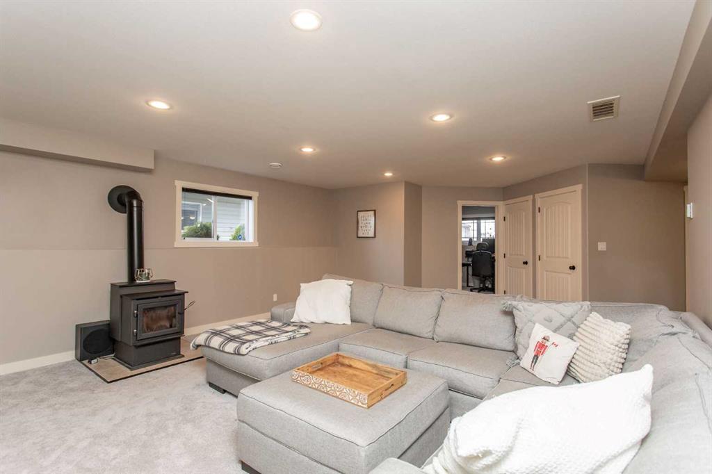 Don't let this incredible five-bedroom home slip away! Nestled on a serene street in Lonsdale, this beautifully designed bi-level residence features a bright and airy living room, along with a well-appointed kitchen that offers generous cupboard and counter space. Upstairs, you'll find three bedrooms, including a spacious primary suite complete with a three-piece en suite bathroom and a walk-in closet. The lower level boasts a large recreation room with a cozy pellet stove, two additional roomy bedrooms, and a full four-piece bathroom. Step outside to the sunlit deck, which overlooks a meticulously landscaped yard with concrete patio and backs onto a tranquil green space. This property has seen numerous recent upgrades, including new shingles and carpeting installed in 2024. The double attached garage provides ample room to protect your vehicles from the harsh Alberta winters, while the central air conditioning ensures you stay cool and comfortable throughout the summer months. This home is move-in ready and awaits its new owners. Seize this opportunity while it lasts!