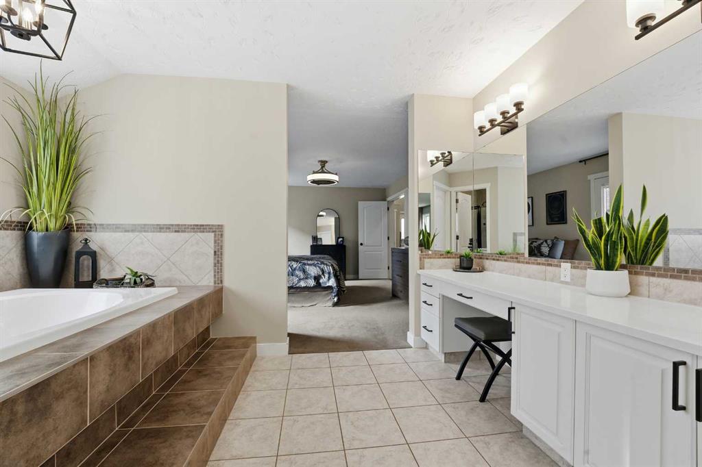 Discreetly set on a quiet street in one of Red Deer’s most sought-after neighborhoods, this sophisticated executive residence blends timeless design with refined modern luxury. A striking hourglass staircase and soaring ceilings deliver an immediate sense of scale and presence. Designed for a polished, low-maintenance executive lifestyle, the main level is bright, polished, and thoughtfully updated with engineered hardwood, curated designer lighting, and a clean contemporary aesthetic. Vaulted ceilings and a gas fireplace anchor the living space, while the formal dining area is ideal for elevated entertaining. The refreshed kitchen features white cabinetry, quartz countertops, sleek black fixtures, stainless-steel appliances, and updated lighting, flowing seamlessly into a sunken living space with a stone-faced fireplace and walkout to an expansive deck. The main-floor primary suite offers a spa-inspired ensuite and direct access to a private Duradek patio complete with privacy screens and a Dynasty Spa hot tub — a true executive retreat. Upstairs, two generous bedrooms and an updated four-piece bath provide flexible guest or office space. With a heated double garage, Gemstone lighting, in-ground irrigation, and professionally finished landscaping, this meticulously maintained Anders home is truly move-in ready — refined, private, and unforgettable