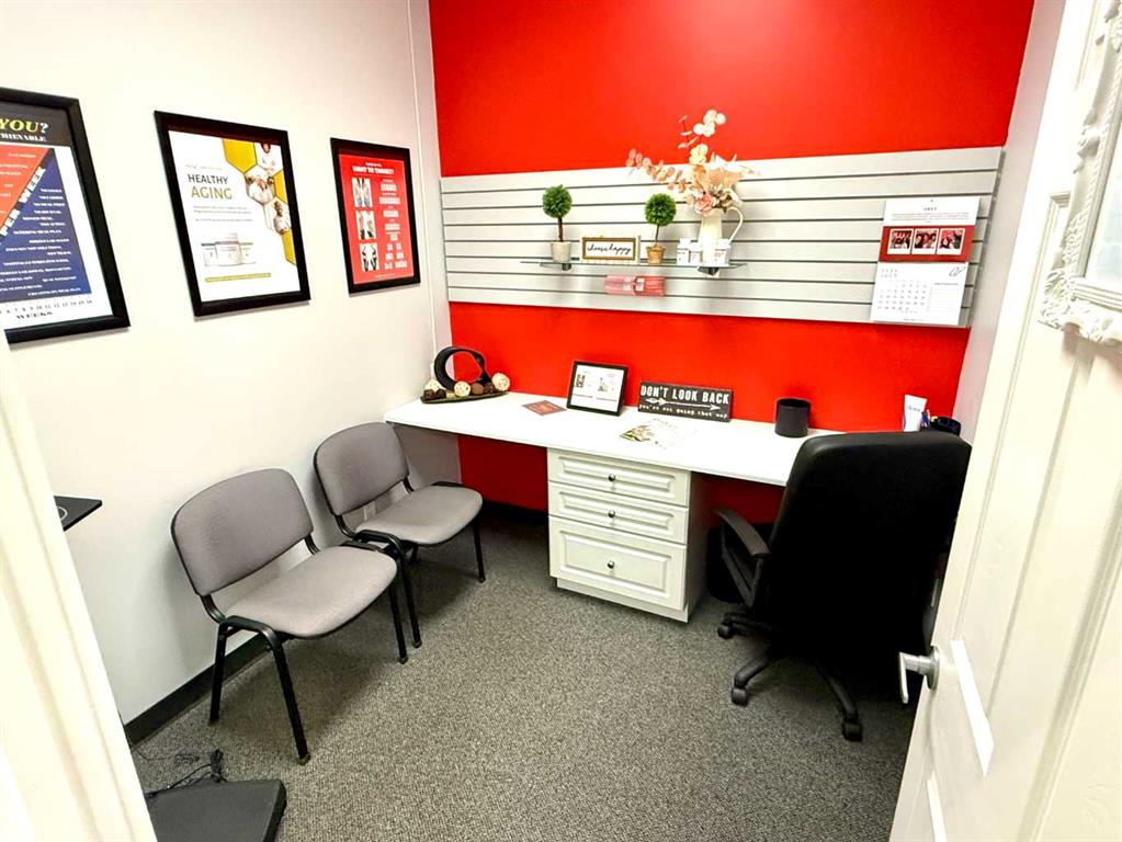 PROFESSIONALLY BUILT OUT OFFICE OR RETAIL SPACE- FOR SUBLEASE until Dec, 2027 w/ 5 year option to renew-This HIGH-END OFFICE/RETAIL UNIT has outstanding visibility & signage opportunities right onto Taylor drive and Ross Street,. A Marquee location right at the Heart of the Heritage Village Shopping Centre. Boasting the following features, this could be your businesses new home: Formerly E-WYN WEIGHT-LOSS, this quality-built out space, boasts 1181 SQ FT and is Turnkey. 30-day possession available! Large main building signage, Large east and west facing windows, 5 offices, Built-in desk/Front Reception, Waiting area and display space with slat wall for retail goods sales in place, Free staff and customer parking, throughout the complex Alarm system, Other Tenant’s in the Complex includes Mcdonald’s, Dental, Law & Dental, Chiropractic officesI, Insurance Brokers And more. NNN's are estimated at $13.15./sq.ft. Average power/ gas bills are $325/month with water/sewer averaging $58/month. Total rent is $3,656.18/month +GST/Utilities.