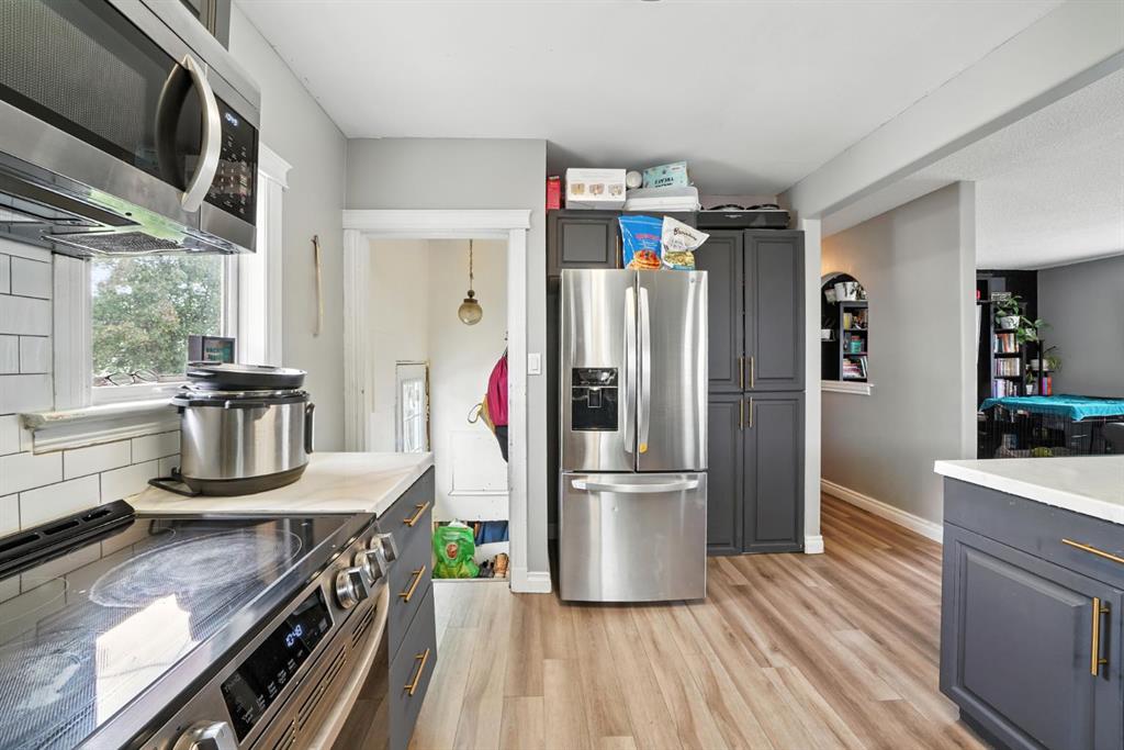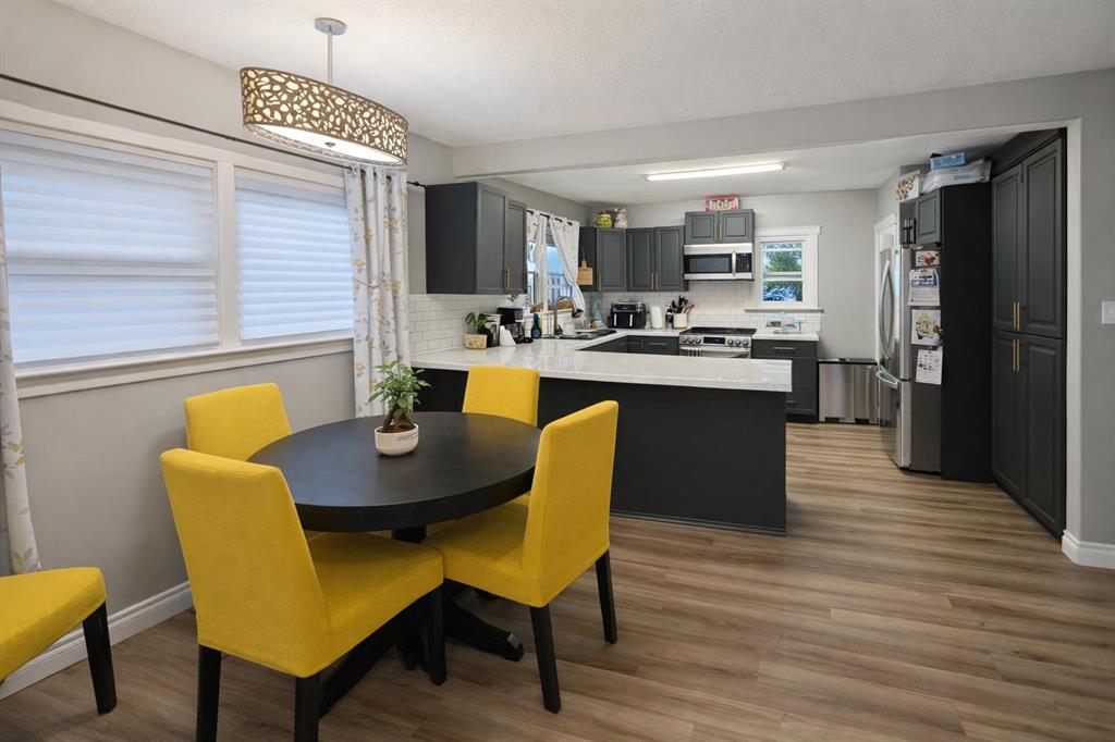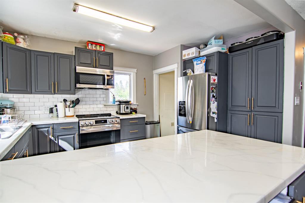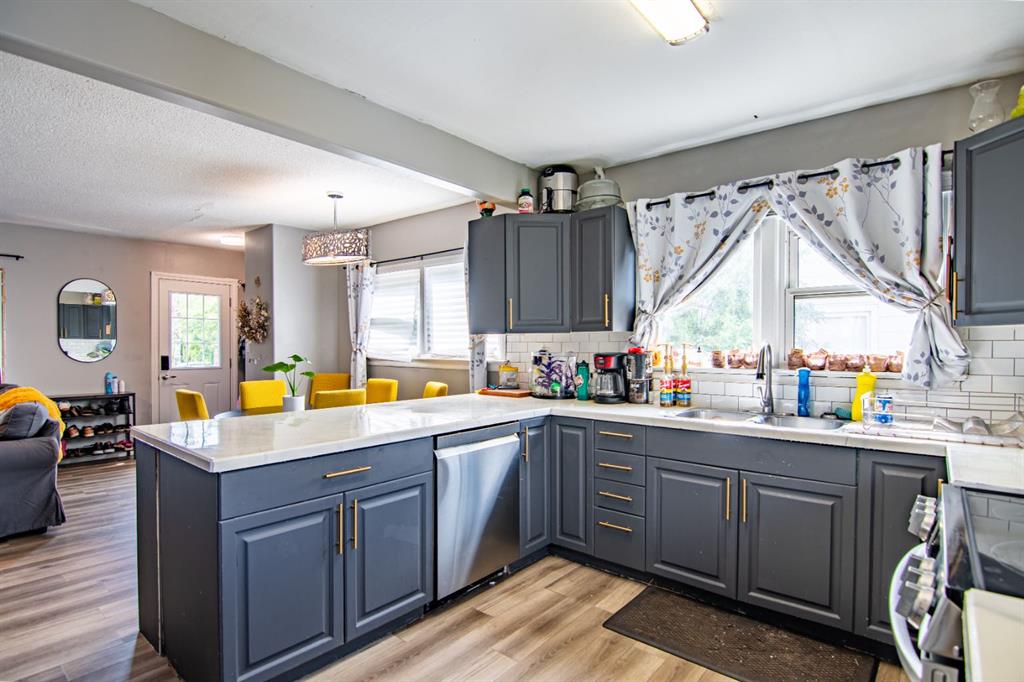First-Time Buyers, Investors, or Garage Enthusiasts — This One Is Worth a Look! Welcome to this adorable cottage-style bungalow tucked away on a quiet, mature street in the heart of family-friendly Rimbey. Full of charm, thoughtful updates, and incredible potential, this home is ready for its next chapter. Set on a large lot with a single detached garage, there’s plenty of space for hobbies, projects, pets, and backyard fun. The south-facing front deck is the perfect spot to start your day with coffee while enjoying the peaceful neighbourhood and the shade of your very own beautiful chokecherry tree. Step inside and you’ll immediately notice the bright, open main floor where the kitchen and living room flow together—perfect for entertaining friends or enjoying family movie nights. The home has seen many updates in recent years, including brand new upstairs windows, newer vinyl flooring, fresh paint, a stylish backsplash, epoxy countertops, grey-painted oak cabinets, and newer appliances. The main floor features two comfortable bedrooms and an updated bathroom with porcelain tile and a new toilet. Lots of potential in the lower level : the spacious rec room with a cozy wood-burning fireplace could make the perfect hangout for winter evenings, game nights, or a future family space. The seller is even leaving flooring and extra supplies for the next owner to complete the finishing touches. A functional half-bath is already in place. This home also comes with great upgrades and extras, including: Air conditioning, Durable Hardie board siding, New electrical panel (2023), Shingles (2015), Hot water tank (2019), Furnace maintenance and new blower board (2025). Whether you're a first-time buyer, young couple, investor, or someone looking to enjoy small-town living, this property offers comfort, value, and room to grow.
