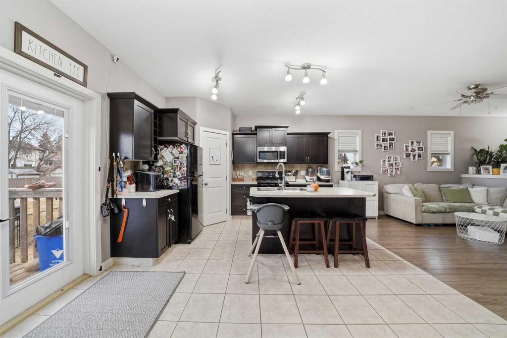 Welcome to this exceptional 5-bedroom, 3-bath home in the heart of Rocky Mountain House. Built in 2011, this beautifully maintained home features 9 ft. ceilings on both levels, creating a bright and spacious feel throughout. As you enter the foyer and up the stairs, you’ll be greeted by a warm toned kitchen with a large island. The main floor offers 3 bedrooms including a generous primary suite with a walk-in closet and stunning Ensuite. Downstairs, you’ll find 2 additional bedrooms, a full bath, large laundry area with extra storage, and a spacious family room perfect for relaxing or entertaining. Recent updates include on demand hot water and MIL suite/kitchenette. Enjoy comfort and efficiency with central A/C, in-floor heat, and on demand hot water. Outside, the fenced yard includes a shed, back alley access, and space for a future garage. Residing just steps from schools, the hospital, arena, pool, and downtown amenities, this home is truly a must-see!
