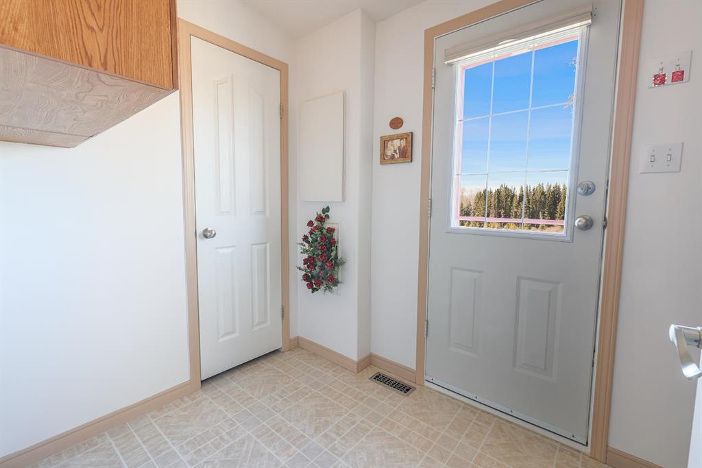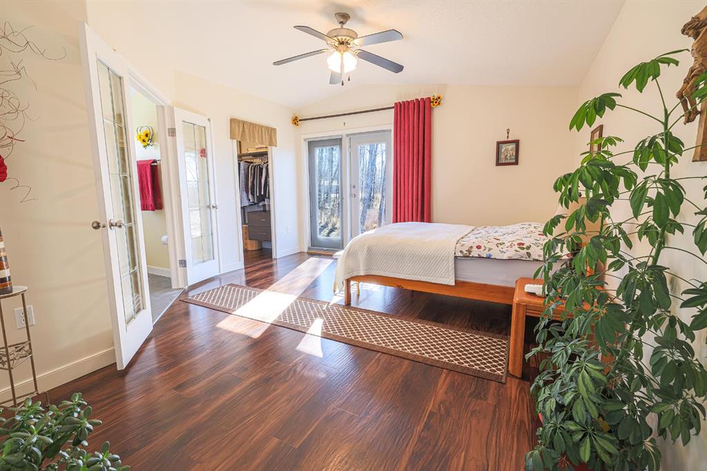 This rare 12-acre AG-zoned property offers exceptional privacy and breathtaking views in every direction. The custom 20 wide modular home was thoughtfully designed to capture the surrounding ravine, creek, and pond from almost every room. Inside, the home feels bright and spacious with vaulted ceilings, large room sizes including a flex room with a closet that could be a third bedroom/office/family room. The kitchen includes an oversized kitchen island, abundant cabinetry and drawer space with the practicality of a swing out corner cabinet insert, as well as a good sized pantry. Fresh paint throughout the walls and ceilings enhances the homes light and open floorplan. The home has been meticulously maintained and extensively updated, including a high-efficiency premium furnace installed in 2025, a new fridge and stove in 2023, a new pressure tank in 2024, and a new hot water tank in 2022. The primary ensuite features luxurious in-floor heating and a large walk-in shower, while the second 4 piece bathroom boasts a deep soaking tub and the steam washer and dryer add even more convenience. Outdoor living is a highlight here, with an oversized, maintenance-free cedar deck complete with metal railing and pilings already in place for a future hot tub. The yard is beautifully treed and incredibly private, offering year-round wildlife viewing and access to trails perfect for walking, quadding, or snowmobiling. The yard has a beautiful perennial flower bed, a raised garden bed, raspberry patch and a compost bin. The oversized garage is heated with a boiler and has a new roof in 2024, in floor heat, workbench and is framed and wired for a second overhead door. It also includes a large finished addition with its own bathroom, making it ideal for a small suite, studio, or workshop. This exceptional property is hardwired with a 6500W generator, and has ample RV parking. Fiber-optic internet has been contracted and will be installed at the seller’s expense, ensuring modern connectivity in a peaceful rural setting. This property is a rare opportunity to enjoy space, seclusion, and stunning natural surroundings while benefiting from thoughtful upgrades and AG zoning flexibility