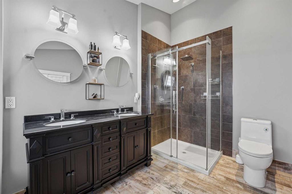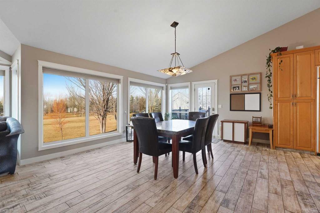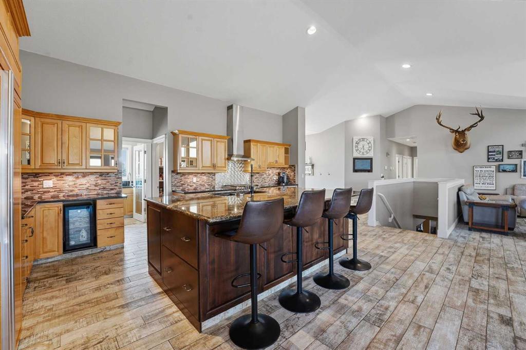 MOVE In Ready inside & out! Luxury acreage living in prestigious Silvertip Ranch just minutes from the conveniences of Okotoks including Okotoks school designation! This sprawling 5 bedroom, 3.5 bathroom walk-out bungalow offers over 5000 square feet of fully developed living space on 1.21 beautifully landscaped acres with High River water!! You will enjoy your 3 car attached and heated garage with 220V & an additional auxiliary garage for all your "toys". Of course, you have RV parking & a drive-through fully paved driveway with tonnes more parking for all your "entertaining" & sporting needs! Everything your heart desires within steps & WITHOUT the noise of an unfinished new build or dust from a gravel road. Soaring 13' vaulted ceilings elevate every main floor room , while the open-concept design showcases a chef-inspired kitchen with 2 dishwashers, 2 wine fridges, a hammer copper sink, gas range, tonnes of in-island storage & an abundance of natural light everywhere! The main living area has wide planked tile floor which is made to mimic hardwood with the durability of tile for kids and animals - and the windows have a solar shield to aid with keeping the heat out on warm summer days. This home has two amazing "at home office" options you must see - one with outside access! The fully developed walkout basement with 9FT CEILINGS & in-floor heat features a spacious recreation area, bar, 2 additional large bedrooms, an awesome office, 4 piece bathroom with STEAM SHOWER and in addition - a gym/flex room! Checkout the floor plan & room measurements to truly understand how FUNCTIONAL this home is. Noteworthy upgrades & features include hot water on demand, new carpet, IN-FLOOR heat, 220V in garage, in ground sprinkler system taken care by the community association. The landscaping is DONE from one end to the other on an oasis of lush trees & grass to enjoy year round! Bring your ATV, your golf cart and your RV - you've got inside storage & outside space to spare! Take in the serene views of lush manicured surroundings - the perfect balance of peaceful acreage living with city conveniences nearby!
