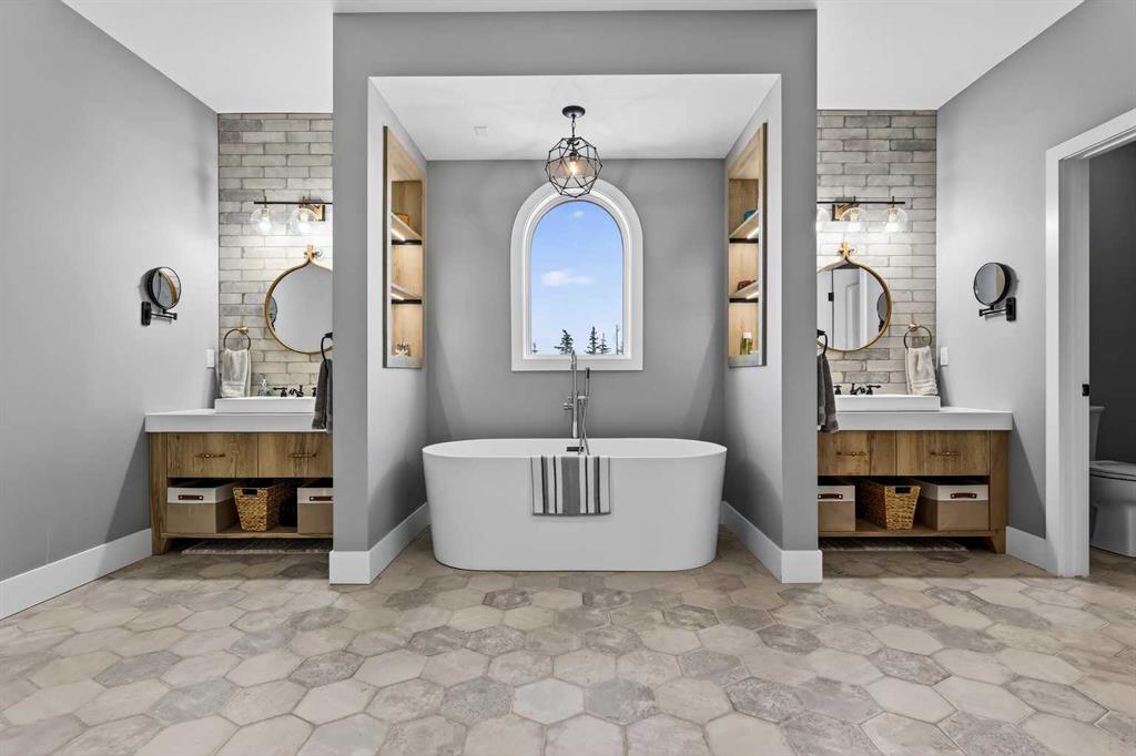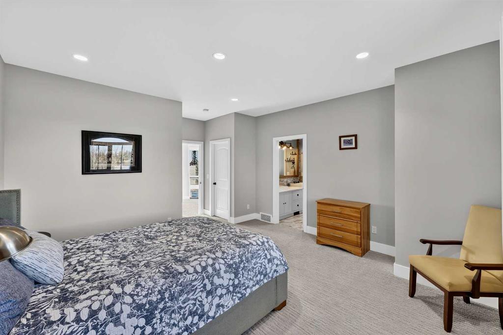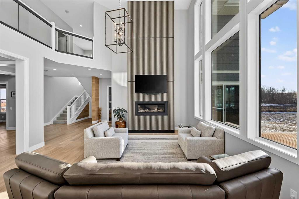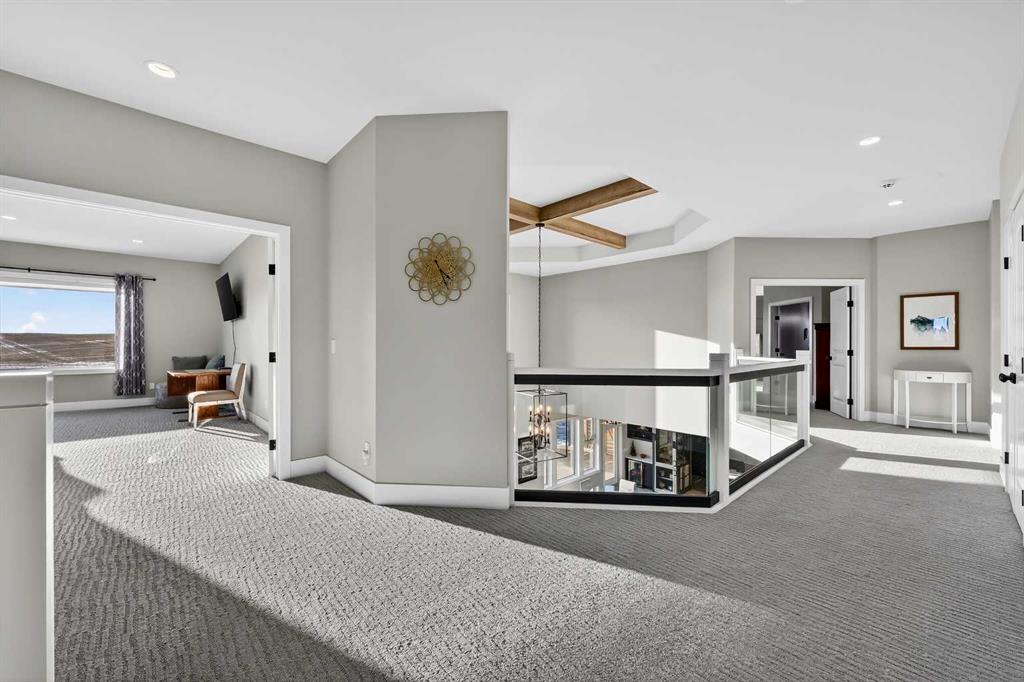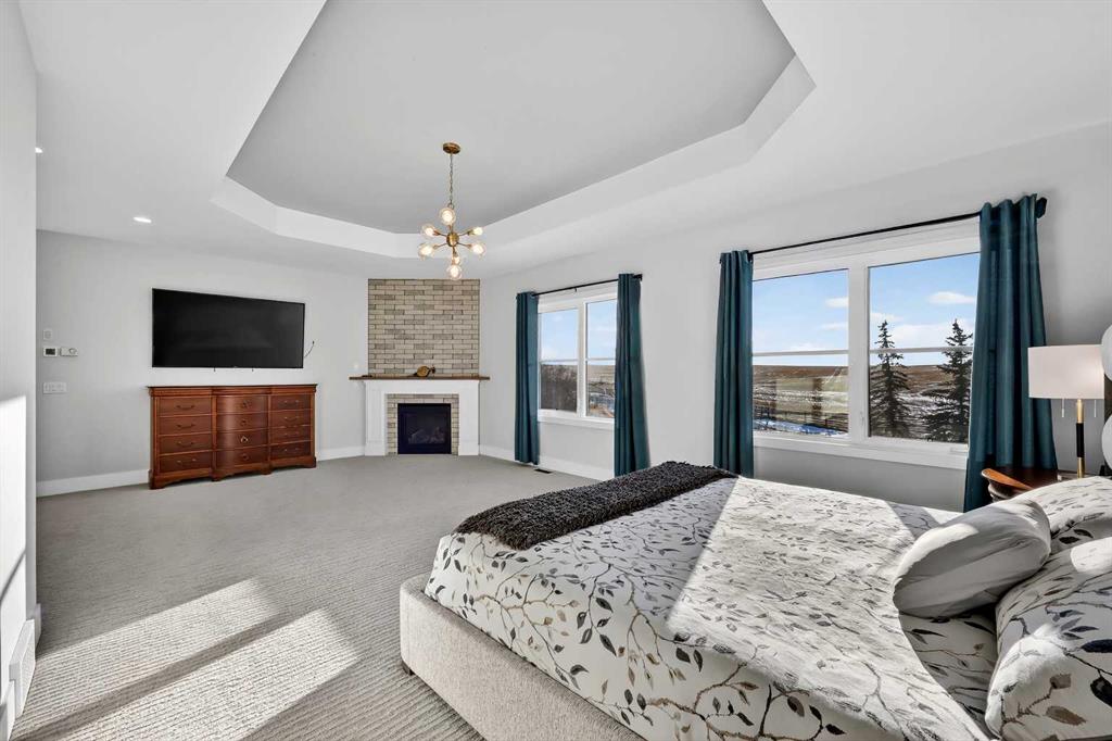 **COME JOIN US AT OUR OPEN HOUSE SATURDAY JANUARY 31ST FROM 11-3PM** Welcome to a truly exceptional Foothills estate where refined design, modern luxury, and wide-open space come together in perfect balance. Set on 3.1 fully fenced and gated acres, this impressive 4,800 sq ft residence is tucked into one of the area’s most sought-after upscale subdivisions, offering privacy, convenience, and breathtaking views of the mountains, rolling valley, and even glimpses of the city skyline. The striking exterior immediately sets the tone with HardiePlank siding, extensive stone detailing, Gemstone lighting, a welcoming front porch, and a brand new 44'x20' cedar deck designed for entertaining and sunset views roughed in for an outdoor fireplace. A heated 4-car garage and a newly completed 1,420 sq ft detached workshop, architecturally matched to the home with freshly paved access, provide exceptional space for vehicles, hobbies, or ample storage. Step inside to soaring 20-foot ceilings, oversized windows, and sun-filled living spaces anchored by a modern fireplace. The main floor is thoughtfully laid out with a private home office, a grand living room, and a refined dining area with a statement feature wall and fireplace. The chef’s kitchen is fully outfitted with newer high-end appliances including a brand new chef's dream gas stove and dual ovens, quartz countertops, a large island, modern cabinetry and a walk-in pantry, perfectly blending function and style. A generous recreational flex space offers endless possibilities. An ideal games room, home gym, theatre, man cave, or easily converted into a main-floor bedroom with exterior access to the massive deck. Upstairs, retreat to a large bonus room with mountain views, the perfect place to relax and unwind. Two spacious bedrooms are connected by a beautifully finished Jack & Jill bathroom, while a designer laundry room adds everyday convenience. Further down the open hallway you’ll find the primary suite that is nothing short of spectacular!! Featuring west-facing mountain views, its own fireplace, and the showstopping en-suite bathroom with top tier luxury, complete with a deep soaker tub, his and hers sinks and vanities, massive walk-in shower, designated water closet, and an expansive walk-in that truly has the WOW Factor. With 3 large bedrooms, 3.5 baths, multiple flex spaces for work, fitness, play, or entertaining, and remarkably efficient utilities, this home delivers both luxury and practicality. Enjoy nearby walking and quad trails, while being just 5 minutes to Okotoks, 7 minutes to Costco, 45 minutes to downtown Calgary, and 50 minutes to the airport. This property truly stands above the rest offering an unmatched combination of location, craftsmanship, space, and lifestyle. Schedule your private tour today and experience a home that genuinely has it all.