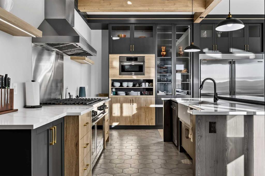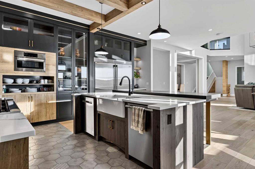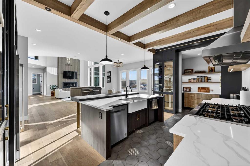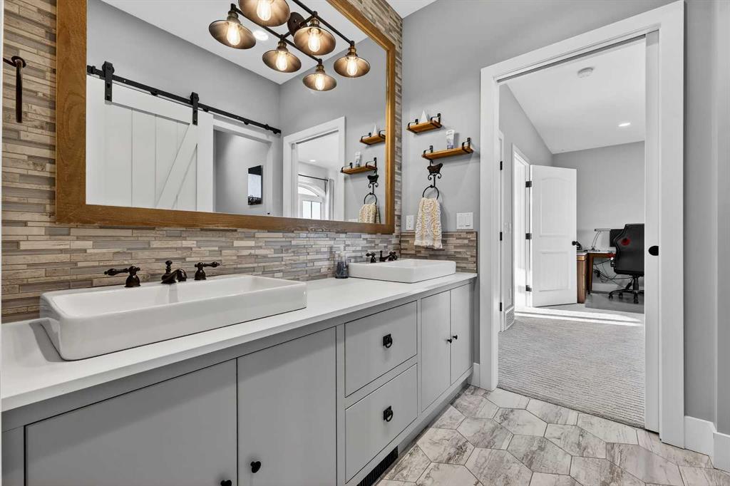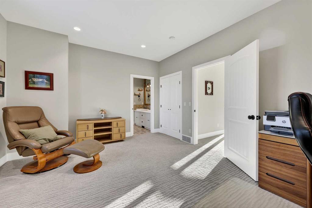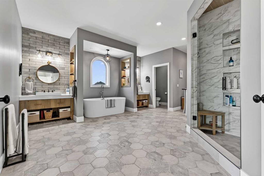 **COME JOIN US AT OUR OPEN HOUSE SATURDAY JANUARY 31ST FROM 11-3PM** Welcome to a truly exceptional Foothills estate where refined design, modern luxury, and wide-open space come together in perfect balance. Set on 3.1 fully fenced and gated acres, this impressive 4,800 sq ft residence is tucked into one of the area’s most sought-after upscale subdivisions, offering privacy, convenience, and breathtaking views of the mountains, rolling valley, and even glimpses of the city skyline. The striking exterior immediately sets the tone with HardiePlank siding, extensive stone detailing, Gemstone lighting, a welcoming front porch, and a brand new 44'x20' cedar deck designed for entertaining and sunset views roughed in for an outdoor fireplace. A heated 4-car garage and a newly completed 1,420 sq ft detached workshop, architecturally matched to the home with freshly paved access, provide exceptional space for vehicles, hobbies, or ample storage. Step inside to soaring 20-foot ceilings, oversized windows, and sun-filled living spaces anchored by a modern fireplace. The main floor is thoughtfully laid out with a private home office, a grand living room, and a refined dining area with a statement feature wall and fireplace. The chef’s kitchen is fully outfitted with newer high-end appliances including a brand new chef's dream gas stove and dual ovens, quartz countertops, a large island, modern cabinetry and a walk-in pantry, perfectly blending function and style. A generous recreational flex space offers endless possibilities. An ideal games room, home gym, theatre, man cave, or easily converted into a main-floor bedroom with exterior access to the massive deck. Upstairs, retreat to a large bonus room with mountain views, the perfect place to relax and unwind. Two spacious bedrooms are connected by a beautifully finished Jack & Jill bathroom, while a designer laundry room adds everyday convenience. Further down the open hallway you’ll find the primary suite that is nothing short of spectacular!! Featuring west-facing mountain views, its own fireplace, and the showstopping en-suite bathroom with top tier luxury, complete with a deep soaker tub, his and hers sinks and vanities, massive walk-in shower, designated water closet, and an expansive walk-in that truly has the WOW Factor. With 3 large bedrooms, 3.5 baths, multiple flex spaces for work, fitness, play, or entertaining, and remarkably efficient utilities, this home delivers both luxury and practicality. Enjoy nearby walking and quad trails, while being just 5 minutes to Okotoks, 7 minutes to Costco, 45 minutes to downtown Calgary, and 50 minutes to the airport. This property truly stands above the rest offering an unmatched combination of location, craftsmanship, space, and lifestyle. Schedule your private tour today and experience a home that genuinely has it all.