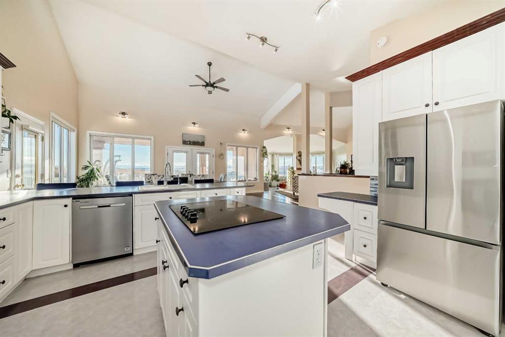 Spacious 2,890 sq. ft. Walkout Bungalow on 3.2 Acres — Solid, Spacious, and Ready for Your Vision. Welcome to 8121 408 Avenue East, where wide-open Foothills skies meet exceptional space and opportunity. Just 2.5 km south of Okotoks, this nearly 2,900 sq. ft. walkout bungalow with over 2,000 sq. ft. of developed lower level offers more than 4,800 sq. ft. of total living space: ideal for large families, multi-generational living, or anyone seeking a peaceful country lifestyle close to town. Bright, open, and thoughtfully designed, this home provides the perfect foundation for your dream renovation, without the frustration of undoing someone else’s dated or overly personalized remodels. The neutral finishes, solid craftsmanship, and timeless layout make it easy to move in now, enjoy comfortably, and update at your own pace. The open-concept main floor is ideal for entertaining and everyday life. The spacious kitchen features two pantries, a large island, and breakfast bar seating, all flowing into a sun-filled living area with a double-sided woodburning fireplace and expansive west-facing windows framing the mountain views. Patio doors open to a generous deck for effortless indoor-outdoor living. The primary suite offers a private retreat with its own deck, walk-in closet, and 5-piece ensuite. Two additional bedrooms, including one with a loft perfect for an office or playroom, plus a full bath and large laundry/mudroom with built-in storage complete the main level. Downstairs, the walkout basement with in-floor heating delivers incredible flexibility and immediate income potential. A 2-bedroom illegal suite with full kitchen, family room, and separate bathroom layout is ideal for rental income, extended family, or independent teens. The suite enjoys private patio access overlooking the pond and rolling landscape. Outdoors, you’ll find 3.2 acres of mature trees, a tranquil pond, and open spaces for kids and pets to explore. Wildlife visitors from foxes and owls to a pair of ducks who return each spring. With a double attached garage and workshop, RV parking, and ample driveway space, there’s plenty of room for vehicles, hobbies, and storage. This is a rare opportunity to own a large, well-built country home with great bones, smart layout, and no bad renos to undo. Move in now, modernize when you’re ready, and start earning income right away. Fast possession available.