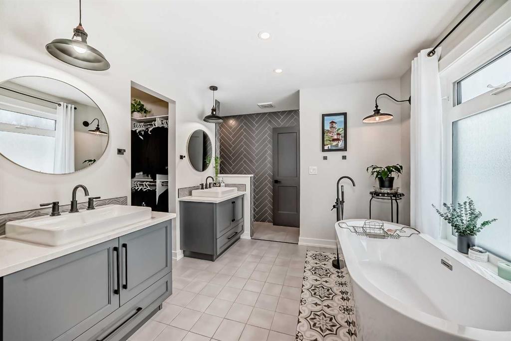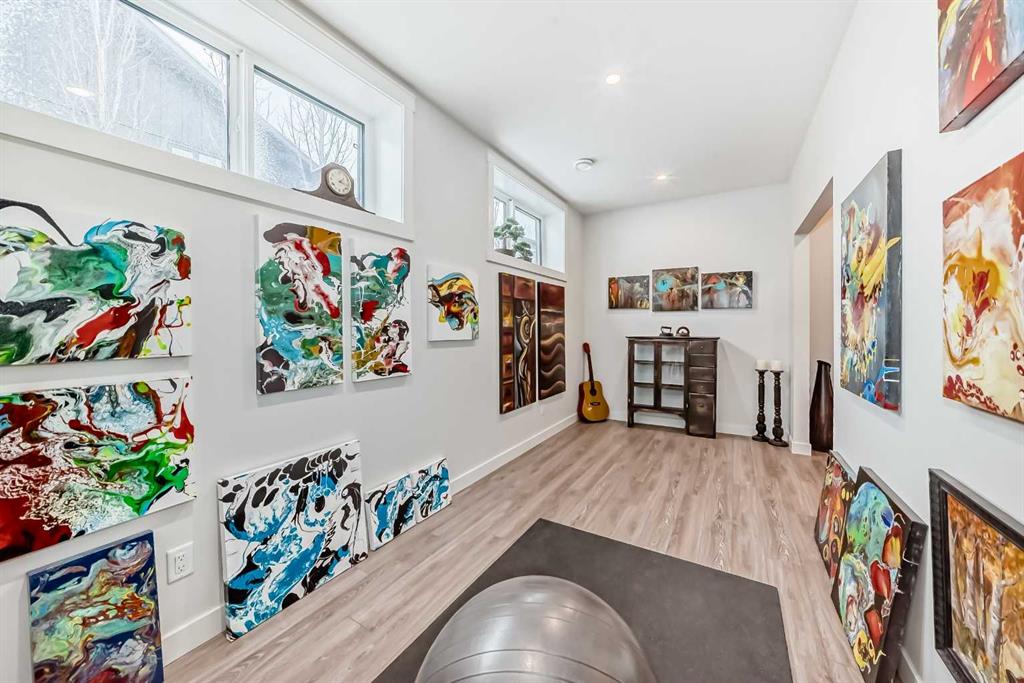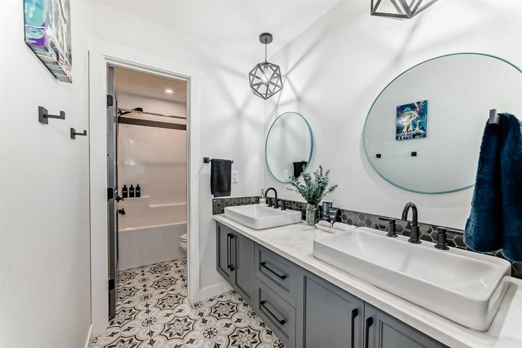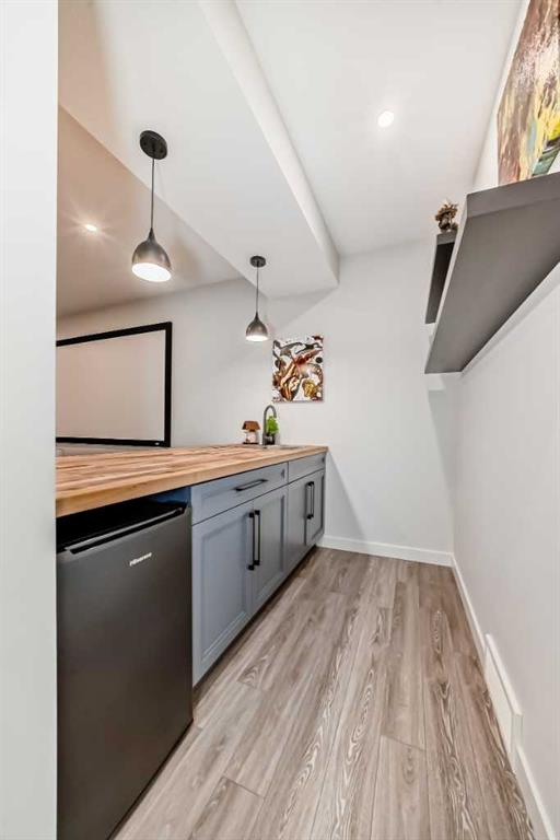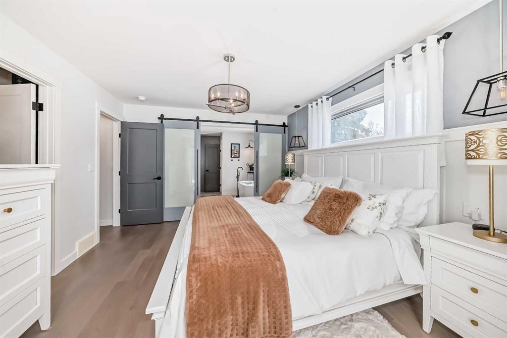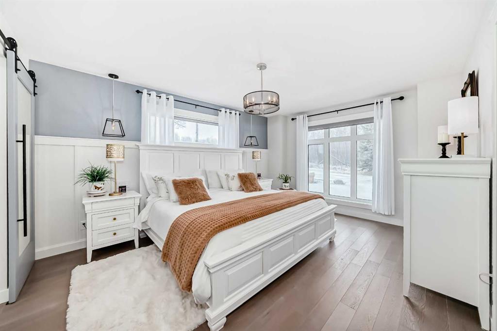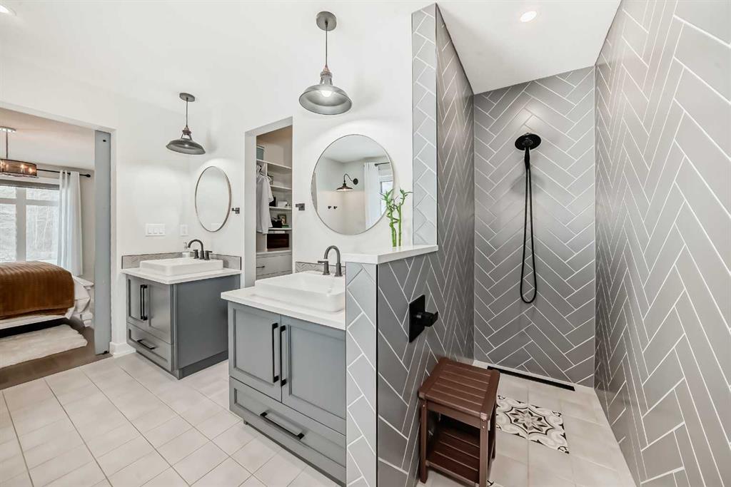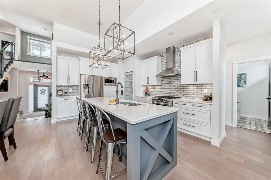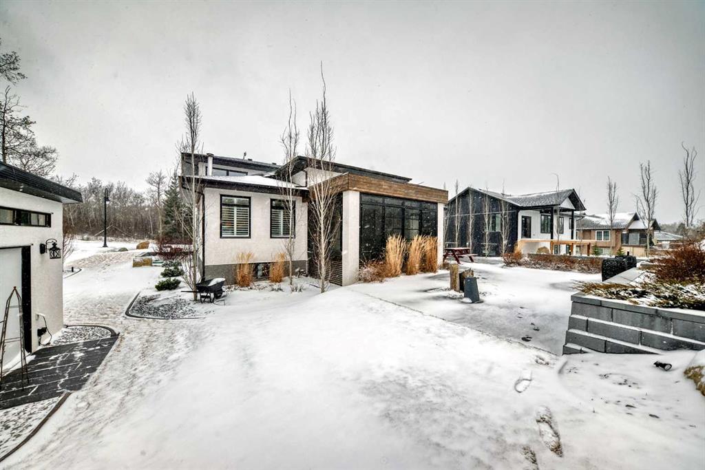 An Architectural Masterpiece of Space & Sophistication Backing directly onto the 17th fairway of the renowned Wolf Creek Golf Course, this stucco-sided residence with elegant wood accents offers a rare blend of modern luxury, artisan craftsmanship, and a welcoming character that makes it feel instantly like home. Set on a beautifully developed 0.4-acre estate, this property delivers the full package: 3,600 sq. ft. of fully finished living space, 6 spacious bedrooms, 3.5 bathrooms, and a 26x24 heated garage. With 1530 sq.ft. on the Main Level the experience begins with a grand two-story entryway featuring patterned tile that sets a sophisticated tone for the rest of the home. The main living area is designed for both grandeur and comfort, where two walls of windows frame sweeping views of the meticulously landscaped yard and golf course. High ceilings, custom interior wood shutters, and wide-plank engineered hardwood flooring enhance the architectural presence, while a wood-burning fireplace with a custom mantle and built-in wood storage provides a cozy focal point. The chef-inspired kitchen is a masterpiece of form and function, centered around a massive 9-foot quartz island. It features two-tone custom cabinetry with soft-close hardware, a built-in baker’s pantry with roll-out shelves, and a walk-in pantry. Premium stainless steel appliances include a natural gas range, dual-door convection oven, and built-in microwave. Adjacent to the dining area, 10'x8' four-panel patio doors lead to a 17 ' x 11' enclosed 3-season patio, seamlessly extending your living space outdoors. The primary suite is a private sanctuary, tucked away for maximum tranquility. It features a paneled feature wall, large quality windows, and a spa-inspired 5-piece ensuite complete with a curb less walk-in shower, freestanding soaker tub, dual Kohler sinks, and two walk-in closets. A custom 10mm glass panel railing with a fir handrail leads to the 850 sq. ft. upper level. This bright space feels like a boutique lounge, large windows , built-in dry bar, custom shelving, and integrated speakers—plus two additional bedrooms and a refined bathroom with dual vanities. 1,200 sq. ft. of the basement is Finished and designed for ultimate entertainment, boasting 9-foot ceilings and comfortable in-slab heat. The great room features a 107” movie screen and projector, complemented by a wet bar with a custom butcher block countertop. Three more spacious bedrooms, a 4-piece bathroom, and a flexible gym/hobby room complete this level. The exterior is a resort-style oasis. Stamped concrete walkways lead past the additional parking to a two tiered Metropolitan block patio featuring a natural gas fire table and a built-in fountain. At the top of the hill, a steel firepit offers a private getaway to watch the stars or the action on the 17th green. Additional features include a 16x12 matching stucco shed with power, RV parking, and high-efficiency mechanicals including a Venmar AVS ERV system.