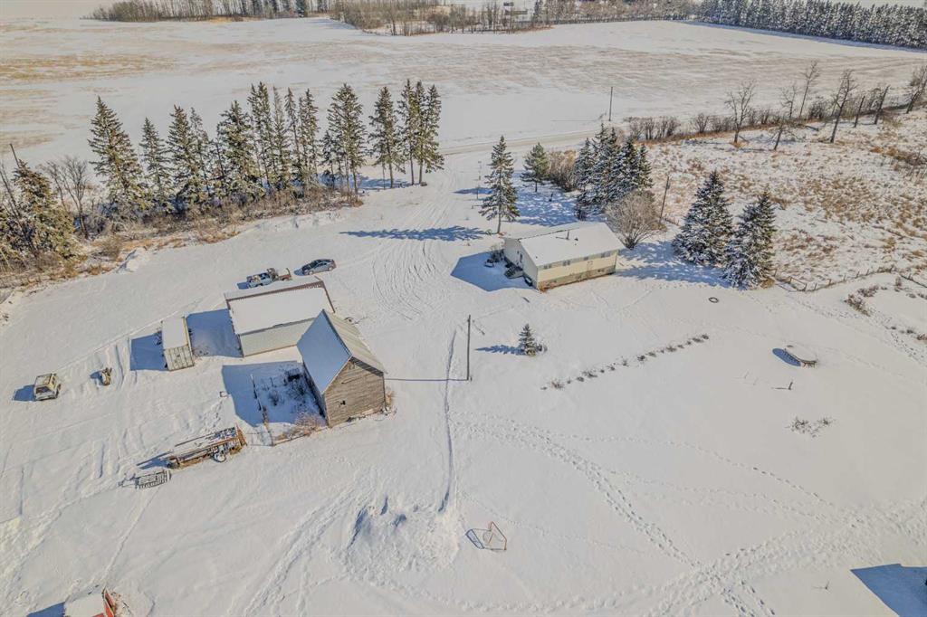RARE FIND!! Experience the space and tranquility of country living with this beautiful 21.7-acre parcel! Surrounded by mature trees and natural landscaping, this property offers privacy, functionality, and plenty of room to enjoy the outdoors. Step inside the well maintained bungalow to a welcoming living room filled with natural light from large windows. The kitchen is well-equipped with stainless steel appliances and flows seamlessly into the spacious dining area, which offers ample room for family meals and gatherings. The main floor features a comfortable primary bedroom, a second bedroom, and a full 4-piece bathroom, along with the convenience of main-floor laundry. The lower level adds additional living space with a third bedroom and a new remodelled bathroom. The remainder of the basement is currently utilized as a family/recreation area and remains largely unfinished, offering excellent potential to develop additional living space to suit your needs. In-floor heating in the basement bathroom adds comfort during the cooler months. Several important updates have already been completed, including a newer furnace, hot water tank, and pressure tank, along with a well that was drilled just four years ago. The home, barn, and garage have also recently received new shingles, adding peace of mind for years to come. Outside, the property truly shines. The beautifully treed yard offers privacy and character, while apple trees, a perennial garden, and a large garden plot provide the perfect setting for those who enjoy gardening or a self-sustaining lifestyle. A detached double garage and barn offer additional storage and functionality for acreage living. This property offers endless possibilities, whether you’re looking for space for animals, recreation, or simply a quiet country retreat only minutes from town.