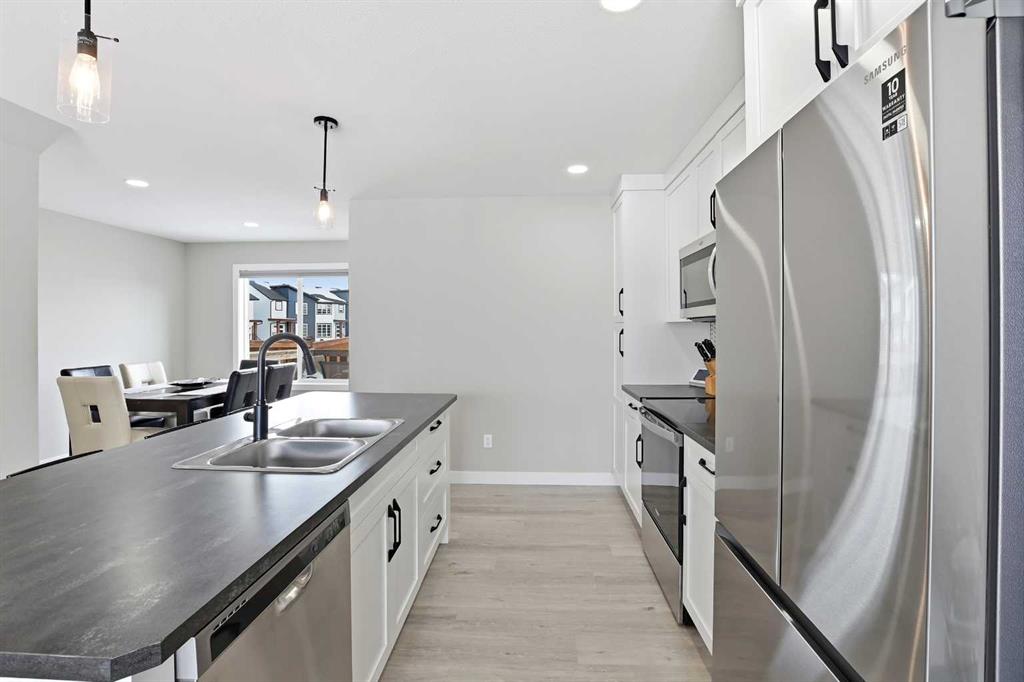 Welcome to this beautifully designed Falcon Homes townhouse in desirable Liberty Landing. Offering modern convenience, exceptional finishes, and effortless living. Sold FULLY FURNISHED and completely move-in ready, this is a rare opportunity to step into a professionally styled home with everything already done for you. Located in Liberty Landing, just minutes from Gasoline Alley, you’ll enjoy quick access to shopping, markets, restaurants, and Highway 2. The community offers exceptional amenities, natural wetlands, abundant green space, and close proximity to an urban center. This functional 2-storey plan is thoughtfully designed for everyday living. The main floor showcases gorgeous vinyl plank flooring, large living room windows that allow in plenty natural light, and a bright open-concept layout. The kitchen features beautiful cabinetry, a full tile backsplash, stainless steel appliances, and a sit-up island perfect for casual dining or entertaining. A spacious dining area, convenient 2-piece bathroom, and access to the back deck. Upstairs you’ll find 3 bedrooms, including a stunning primary retreat with its own 3-piece ensuite featuring a tiled shower with glass door. An additional 4-piece bathroom with tiled tub surround serves the upper level. The fully finished basement adds incredible versatility, offering a large recreation room, a 4-piece bathroom, and space with potential for a 4th bedroom, home office, or gym. Outside, enjoy the fully fenced and landscaped yard, perfect for relaxing or entertaining, along with off-street parking for added convenience. Best of all there are NO condo fees and the remainder of the new home warranty to be transferred to new owner. A beautiful blend of style, functionality, and location in one of the area’s growing communities.