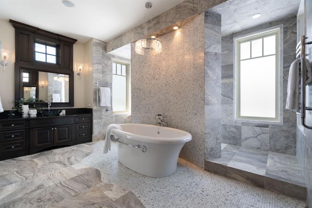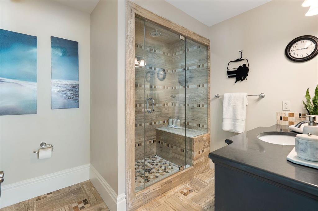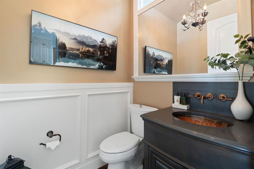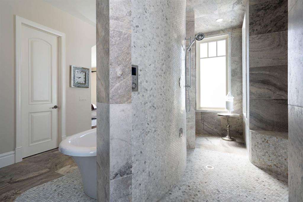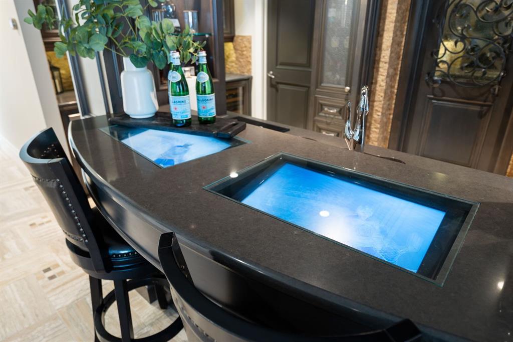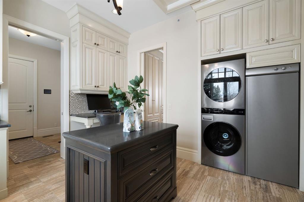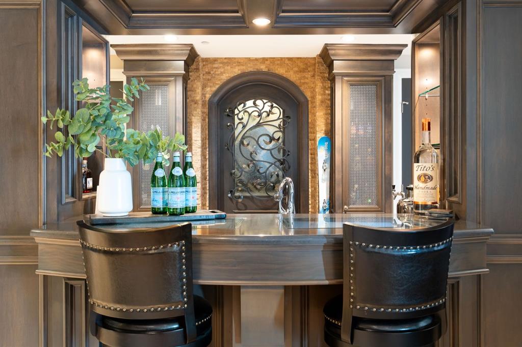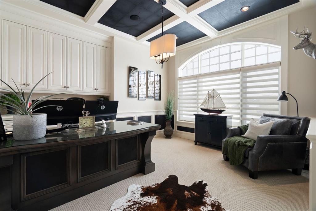 Set within the Willow Creek enclave of Bearspaw, just a 7-minute drive to Calgary city limits, this 4,700 sq. ft. BUNGALOW welcomes you with a gated stone entry surrounded by mature, professionally landscaped grounds. Built in 2010 by Astoria Homes this previous showhome’s exterior architecture blends stone and brick with sculpted rooflines, while the interior features 12-foot ceilings, detailed millwork, and principal rooms oriented toward stunning MOUNTAIN VIEWS. The foyer showcases stone inlay set into hickory hardwood flooring, immediately reflecting the CRAFTSMANSHIP found throughout the home. A private office with bespoke built-ins and a leather-paneled coffered ceiling creates a refined, executive atmosphere. A fully integrated smart home Control4 system ensures seamless functionality. The main living area is anchored by a striking double-sided stone fireplace and soaring windows. Designed for entertaining, the kitchen centres around an oversized GRANITE island and features a full professional appliance package: Sub-Zero, Wolf, Miele brands including a built-in espresso machine. The kitchen boasts a dedicated wine service area offering seamless hosting to the bright dining space that opens onto a southwest-facing terrace, extending the living area outdoors. The laundry room is a retreat, including a statement island. The spacious primary suite offers private outdoor access and a luxurious ensuite with heated surfaces, a sculptural tub, and a multi-jet shower accented with marble tile detailing. A custom dressing room with pull-down rods adds both convenience and elegance, while marble tile and in-mirror televisions elevate the space. The walk-out lower level is designed for leisure and entertainment, featuring a theatre with a 4K PROJECTOR and full sound system, a billiards area, a fireplace lounge, a custom wet bar complete with microwave, dishwasher, and dedicated wine and beer refrigeration, a fitness room, and two additional bedrooms with a full bathroom. Thoughtfully positioned behind the bar is a WINE ROOM, ideal for the avid collector. Unique features such as inlaid countertop televisions and a steam bath further enhance the home’s luxury. Stepping out onto the back patio, you are welcomed by several spaces for relaxing either in the HOT TUB, down the hill to a fire pit area or up on the upper decks that overlook the landscaped yard. For maximum enjoyment of the beautiful native plants and trees the property has lawn and flower bed irrigation. The oversized 3-car garage with lots of overhead storage capacity also has a “man cave” with custom built-in cabinetry and TV and a private urinal. Recent upgrades include a newly redone driveway, fresh exterior paint, a Culligan WATER SYSTEM, full attic insulation, updated basement carpeting, and both electric and hydronic in-floor heating. This residence represents a rare combination of thoughtful design, high-end finishes, and advanced infrastructure in one of Bearspaw’s most established acreage communities.
