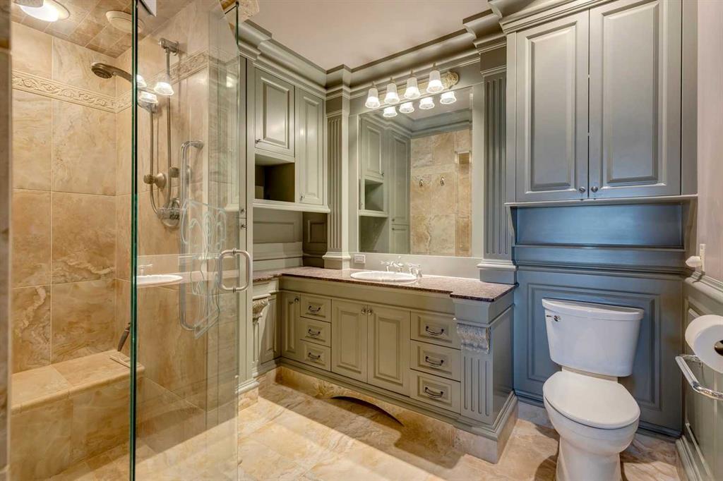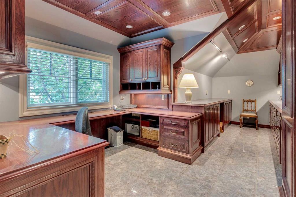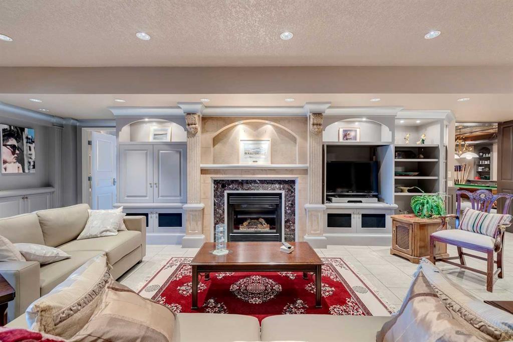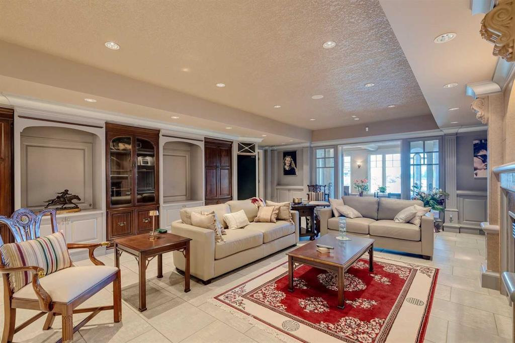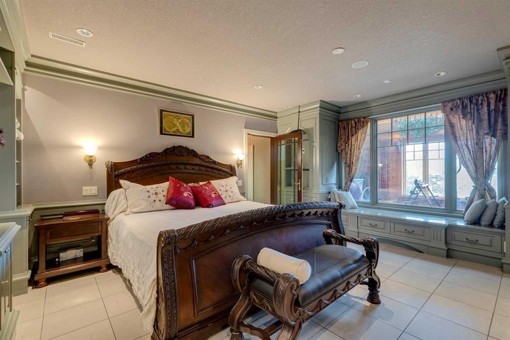 Discover one of the most iconic estate homes offered in prestigious Elbow Valley Estates—an extraordinary custom residence that combines European grandeur, architectural artistry, and exceptional craftsmanship. Perfectly positioned on a private lakefront lot, this executive walkout bungalow offers over 8000 square feet of exquisitely developed living space, designed with precision over years of thoughtful planning and executed by master artisans. From the moment you enter the grand foyer with its coffered and barrel-vaulted ceilings, it’s clear this is a home unlike any other. The main level features a sun-drenched great room with a double-sided fireplace and expansive windows framing unobstructed lake views. The heart of the home is the richly appointed ‘French Manor’ inspired kitchen—equipped for grand-scale entertaining with granite countertops, top-tier appliances including a Sub-Zero refrigerator, gas range with pot filler, two dishwashers, and a walk-in pantry. A cozy breakfast nook with fireplace and access to the expansive upper deck provides the perfect spot for morning coffee overlooking the water (with handi-cap access). An elegant formal dining room with custom glass cabinetry, a fully paneled library/office with fireplace, and a large laundry/sewing/hobby room complete the main level. A reverse osmosis water system is conveniently located in the craft room. The luxurious primary suite is a private sanctuary, featuring a vaulted sleeping area, two-way fireplace, and a spa-inspired circular ensuite with bubbling soaker tub, walk-in shower, dual vanities, and a generous dressing room with built-ins. The suite also offers deck access to enjoy tranquil lake views. A versatile loft functions as a full office or creative workspace, complete with multiple workstations—ideal for today's remote professional or growing family. The lower level is designed for recreation and relaxation, boasting an authentic English-style pub with a full wet bar, games room, media/theatre room, and three additional spacious bedrooms—each with their own private ensuite and walk-in closet. Three solariums enhance the lower level, offering a fully enclosed hot tub retreat, home gym, and peaceful sitting room, all flooded with natural light. This remarkable residence is equipped with countless thoughtful upgrades, including two newer air conditioning units, newer hot water tank and sump pump, new sinks and hardware in the craft room and kitchen . The property also features a recently serviced irrigation system. Designed for effortless living, this home includes hydronic in-floor heating on all levels, a dramatic central staircase, private elevator, and a heated triple garage. Every detail reflects unparalleled quality and meticulous attention throughout. Outdoor living is equally exceptional, with sweeping views of the lake and beautifully landscaped grounds—an entertainer’s dream and a private oasis.