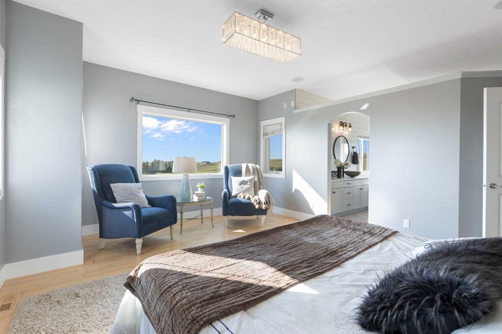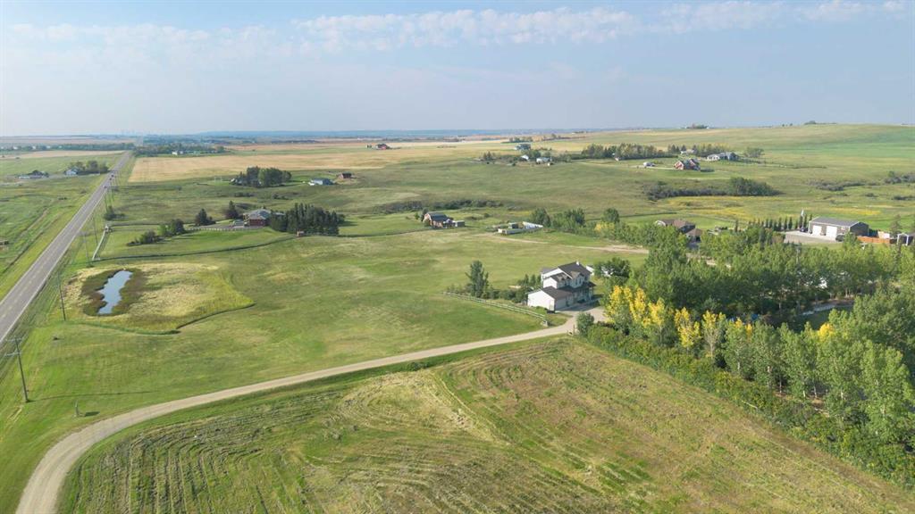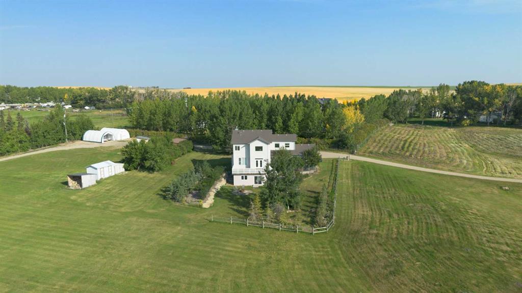 ***Welcome to this breathtaking acreage retreat just minutes from Airdrie, where luxury living meets the tranquility of wide-open country views. Set on an expansive 9.34 acres, this extraordinary property combines timeless elegance, modern updates, and endless space to live, work, and play. Step inside to discover soaring ceilings, striking coffered details, and an abundance of natural light pouring through oversized windows that frame the sweeping backdrop of rolling land. With 4 spacious bedrooms and 3.5 baths, including a spa-inspired 5-piece ensuite, this home is designed to impress. The gourmet kitchen features gleaming quartz countertops, a walk-in pantry, and seamless flow into the dining and living areas, anchored by one of two cozy fireplaces. Entertain in style or unwind in peace on the expansive south-facing balcony, where serene views stretch for miles. The finished walkout basement offers even more space for family and guests, complete with a sunroom, second fireplace, and direct access to the backyard oasis with fire pit. Outside, the property is just as remarkable, boasting a triple attached garage, a detached single garage, and two massive quonsets, ensuring endless storage and workspace options. With a south-facing yard, towering windows, and plenty of room to gather, every detail of this home invites comfort and connection. Perfectly located close to schools and all the amenities of Airdrie, yet tucked away in a private and peaceful setting, this one-of-a-kind property offers the very best of both worlds. A true haven for those seeking space, style, and serenity.