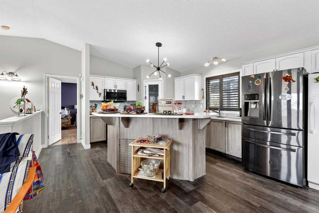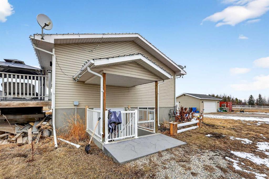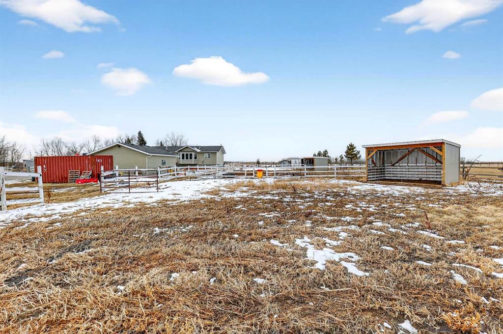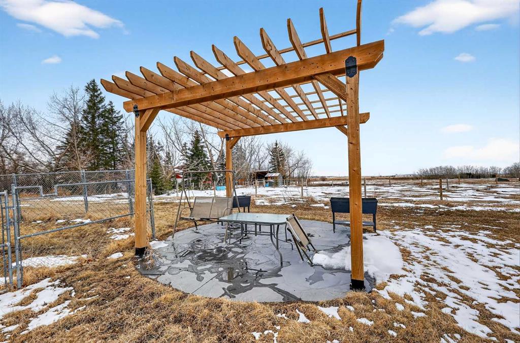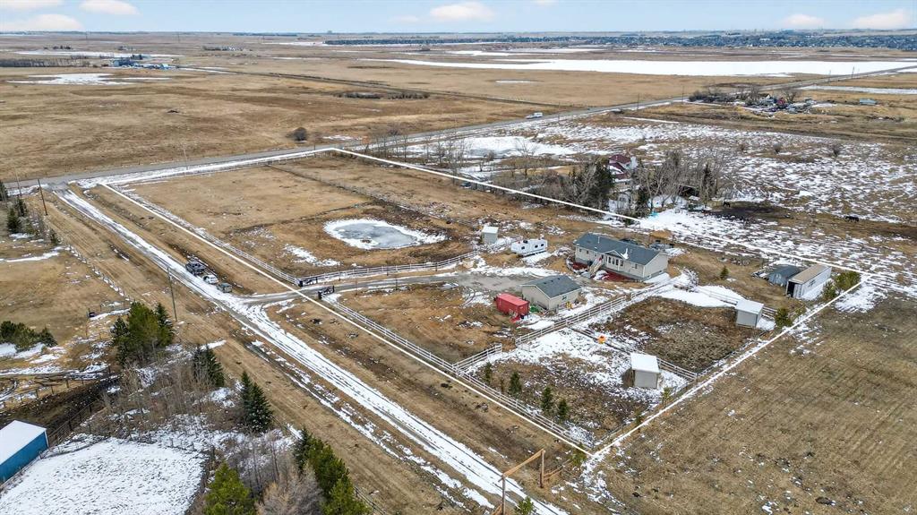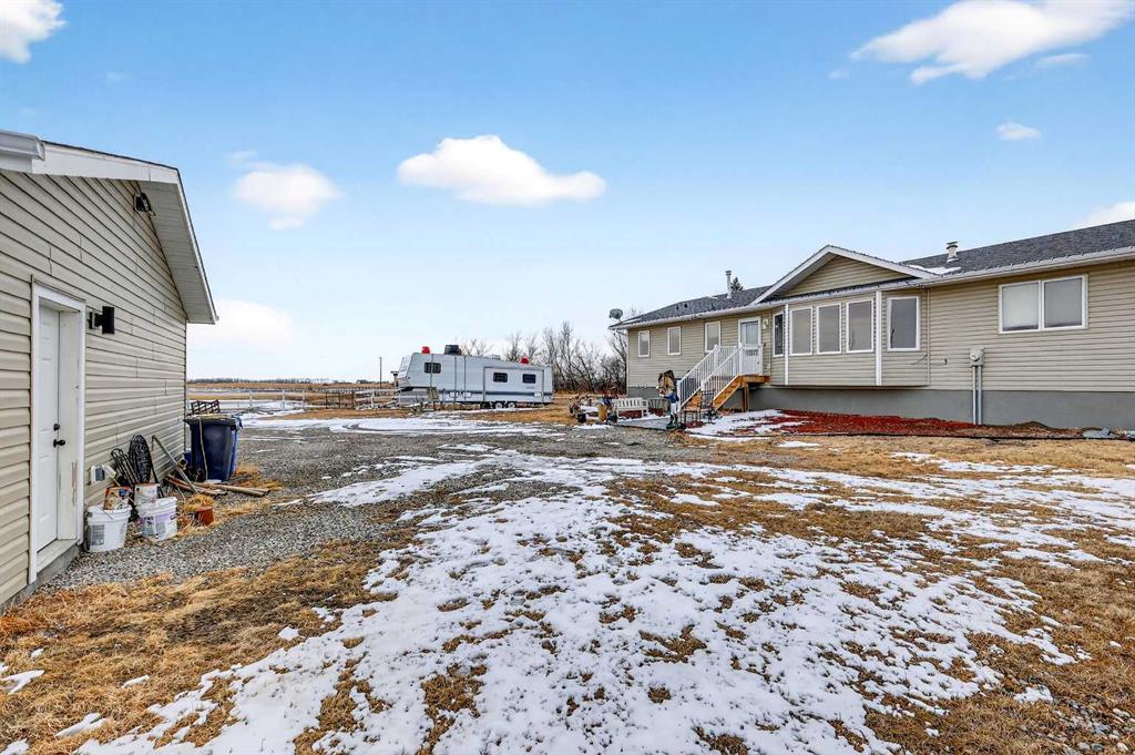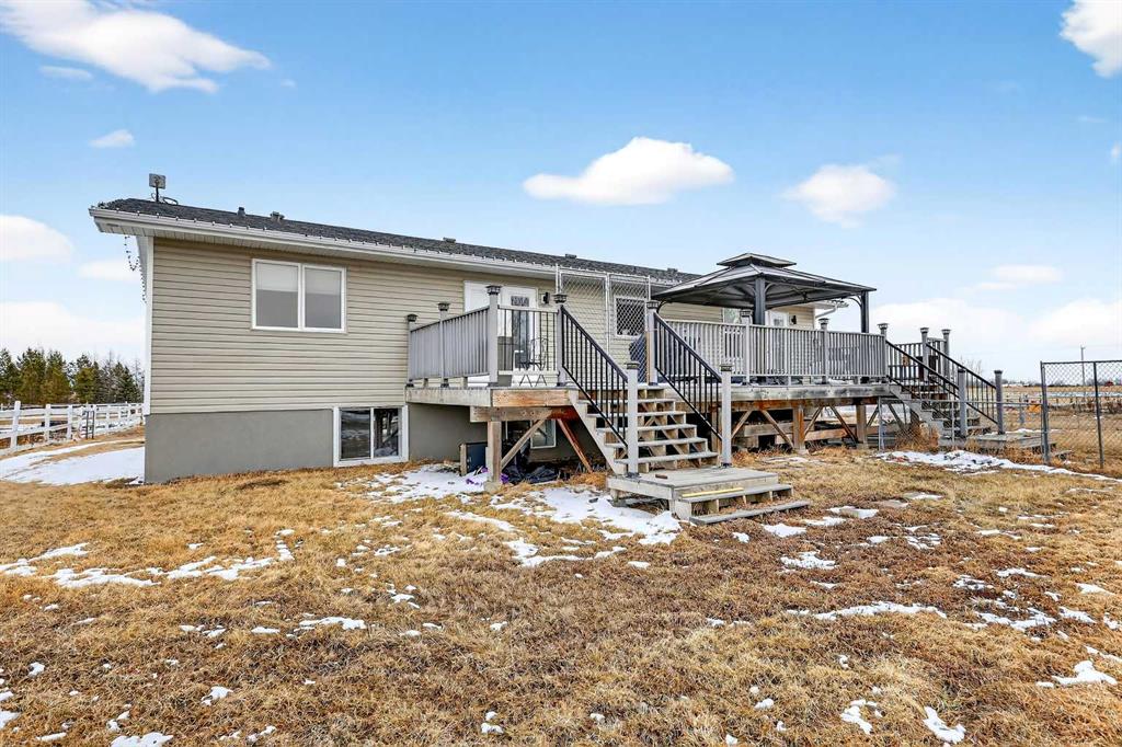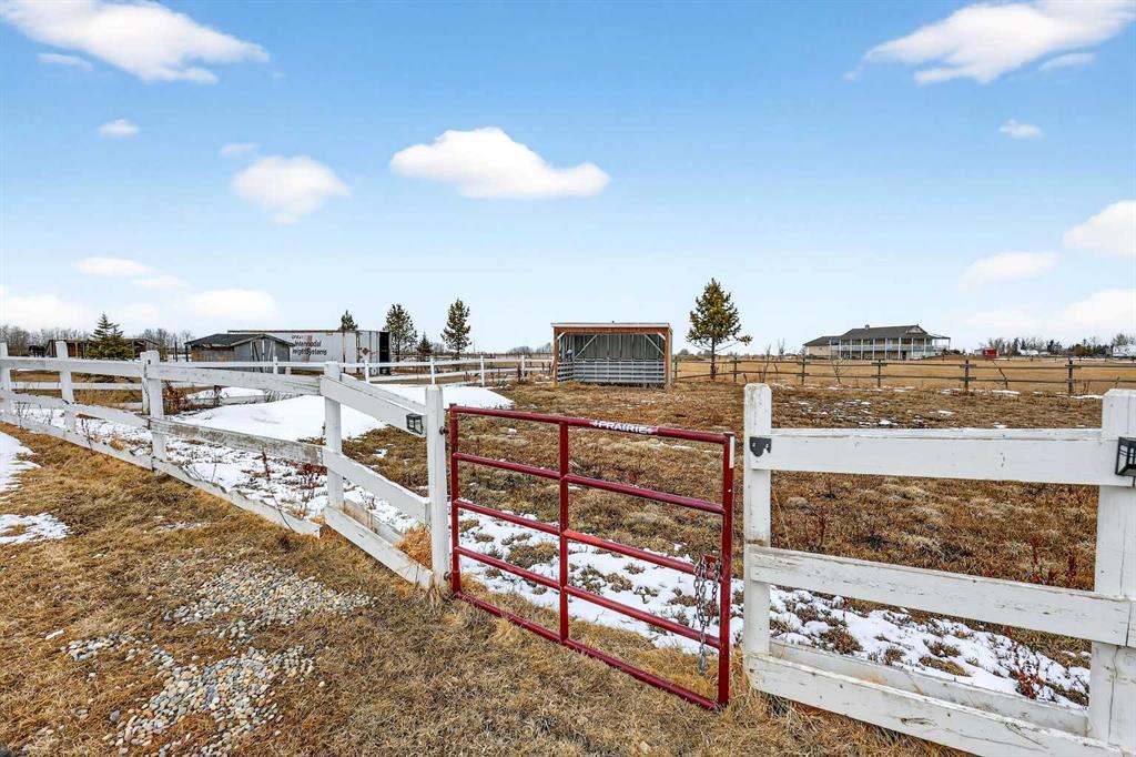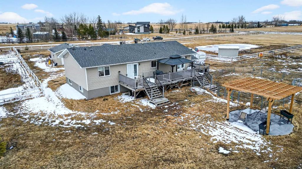 Want to raise your family in the peace & quiet of the country with room for your horses but still be within 20 minutes of Calgary?? Look no further. This 4.18 acre property comes complete with a fully finished bungalow with a walk up basement offering over 3,000 sq ft of developed living space and it is fully set up for your horses. Located just outside of Langdon you’ll get the best of both worlds being fully immersed in a country lifestyle with city convenience just minutes away. The 5 bedroom bungalow was built in 2004 and includes the bonus of central air conditioning. You’ll love the super functional open plan layout with vaulted ceilings, vinyl flooring and tons of windows providing an abundance of natural light. The kitchen is finished in popular 2 tone cabinetry and black stainless steel appliances plus there is a corner pantry and an island with breakfast bar for extra seating. A generous dining area is just next to the kitchen with convenient access to the back deck for grilling and outdoor entertaining. Both the kitchen and dining room are open to the main living area which includes a cozy gas fireplace for your family to gather around in the cooler months. You’ll find 3 bedrooms on this main level including the primary with its own 5 pc ensuite, walk-in closet and private access to the spacious back deck. The other 2 bedrooms share the main 4 pc bath and the laundry room is also conveniently located on this level. The fully finished lower level with walk up has 2 more bedrooms for a grand total of 5. A nice sized recreation area and 3 pc bath make this the perfect retreat for your teenagers or other family members to call their own. In the West facing yard you’ll enjoy a large stamped concrete patio with pergola in addition to your large back deck making this the ultimate place to spend time with family or entertain guests. The large double detached garage has electric heat perfect for a handyman, hobbyist or car enthusiast. There is plenty of room to park all of your toys and there are hook ups for your RV or for a guest. You and your horses can live the dream on this property with several fenced paddocks of varying sizes, 3 horse shelters, year round automated waterers by Ritchie, 2 frost free water hydrants, horse tie ups behind the garage and more. This property is fully fenced with automatic gate securing your belongings. If the country is calling your name don’t miss your chance to make this one home.