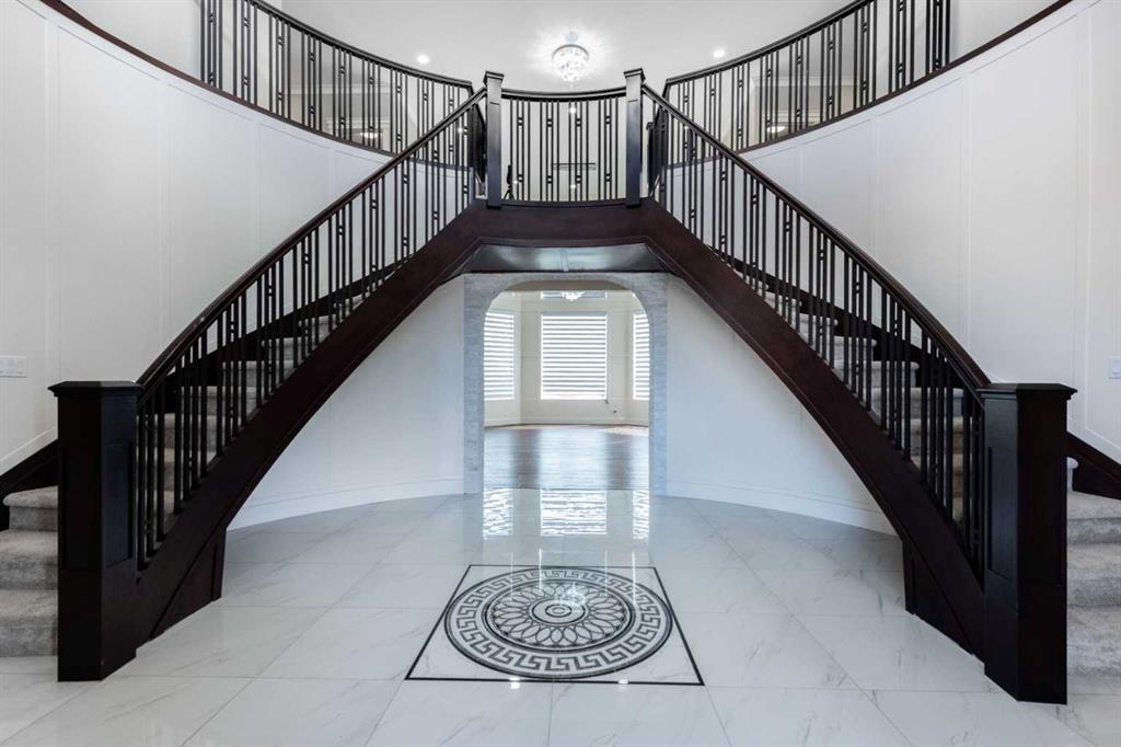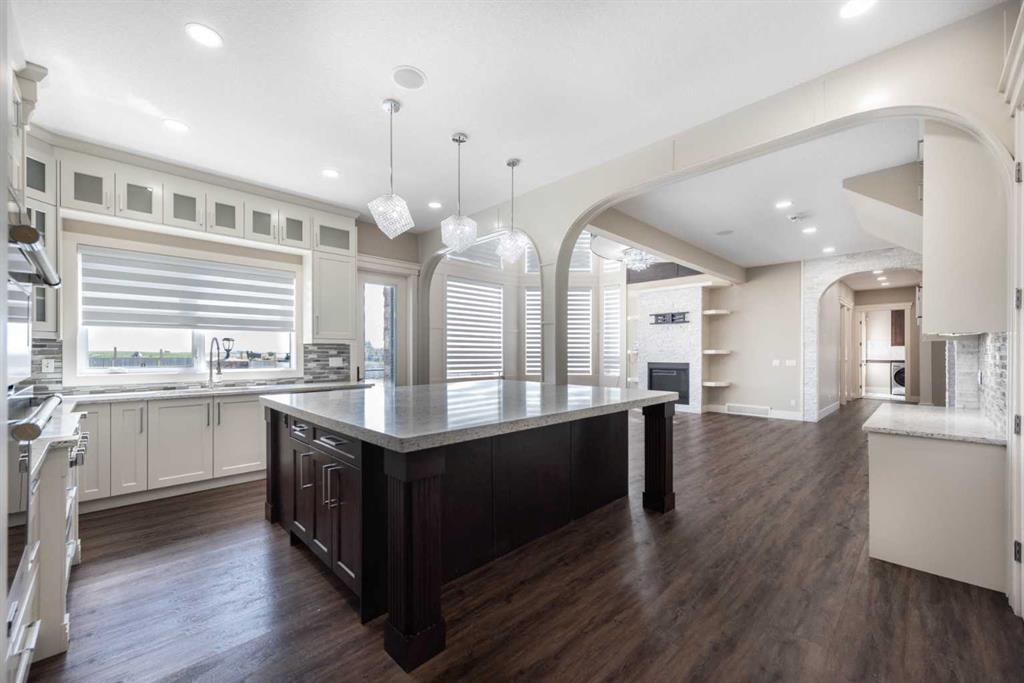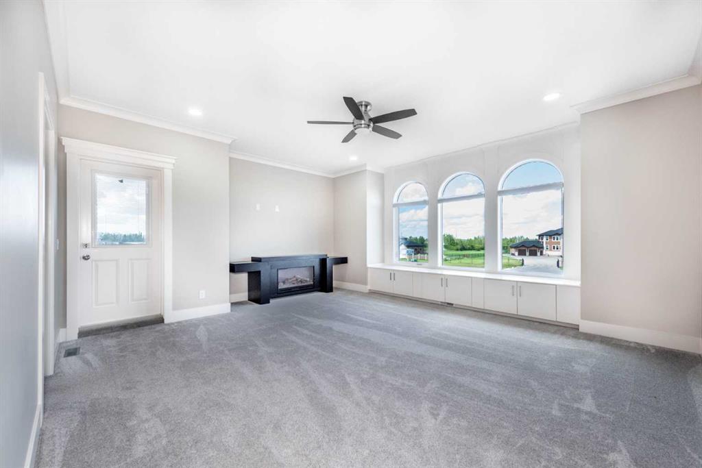 **Open House Sunday 2 pm to 4 pm**Welcome to this extraordinary custom-built two-storey acreage home offering nearly 7,200 sq ft of luxurious living space, situated on 2 acres just five minutes from Calgary. Designed for comfort, style, and functionality. This property features two triple attached garages (six-car total) — a perfect blend of private country living with city convenience. As you step inside, you’re greeted by grand circular staircases and a massive open-to-below foyer, setting a striking first impression. The main floor boasts soaring 10-foot ceilings with tall doors throughout, a spacious living room with a fireplace, and oversized windows that fill the space with natural light and provide direct access to a full-width deck. A main floor bedroom and full bathroom offer flexible living options, while the formal dining room, walkthrough pantry, and chef-inspired kitchen equipped with high-end built-in KitchenAid appliances and custom glass-insert cabinetry make this level as practical as it is elegant. A convenient main floor laundry room completes the level. Upstairs, you’ll find two impressive primary suites, each featuring its own private balcony, walk-in closet, and upgraded spa-like ensuite with standing showers and tubs. Two additional well-sized bedrooms share a stylish 3-piece bathroom and a central storage area. South facing tall windows throughout the home ensure an abundance of natural light on every level. The fully developed walk-up basement has its own private entrance from both the backyard and the garage, offering incredible flexibility for multigenerational living or income potential. It includes a third primary bedroom with a walk-in closet and luxurious 5-piece ensuite, two more bedrooms sharing a 3-piece bathroom, a dedicated laundry room, a large den or office space, a full kitchen, and a spacious recreation room with a fireplace and separate entry walk-up access. Additional highlights include six fireplaces, luxury vinyl plank flooring, a full stone patio, and beautifully landscaped surroundings. Three of the seven bedrooms feature their own ensuite bathrooms. This exceptional property offers outstanding value in a highly desirable location, combining timeless design, upscale finishes, and the serenity of acreage living with unbeatable access to Calgary.