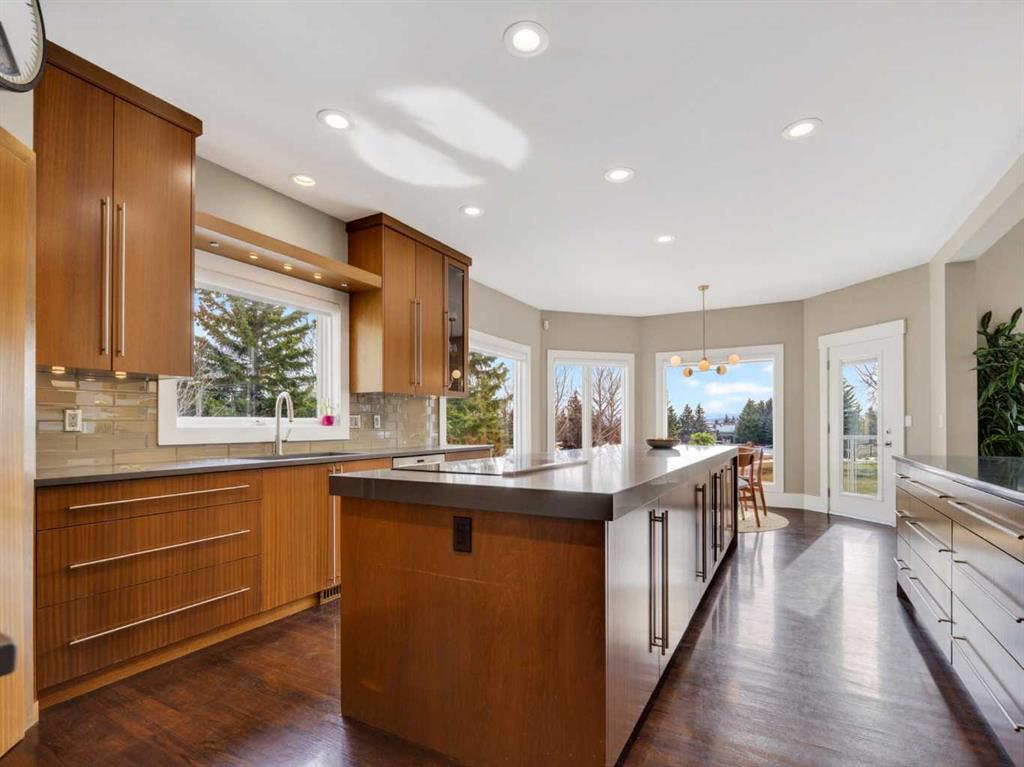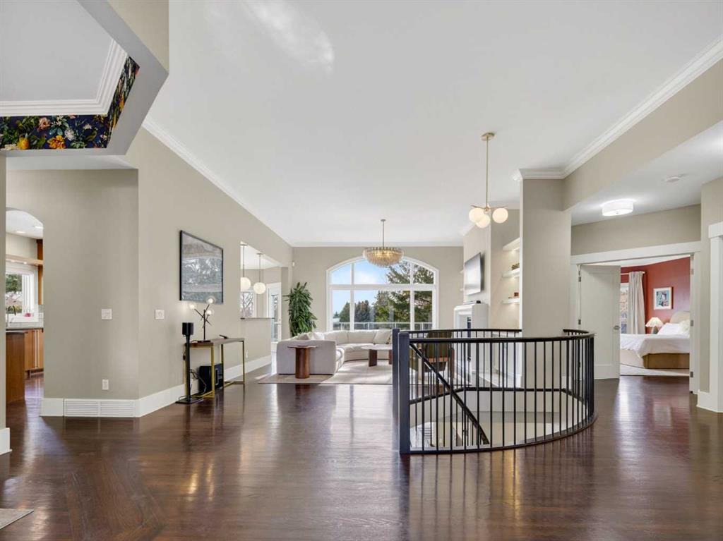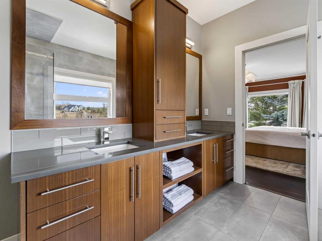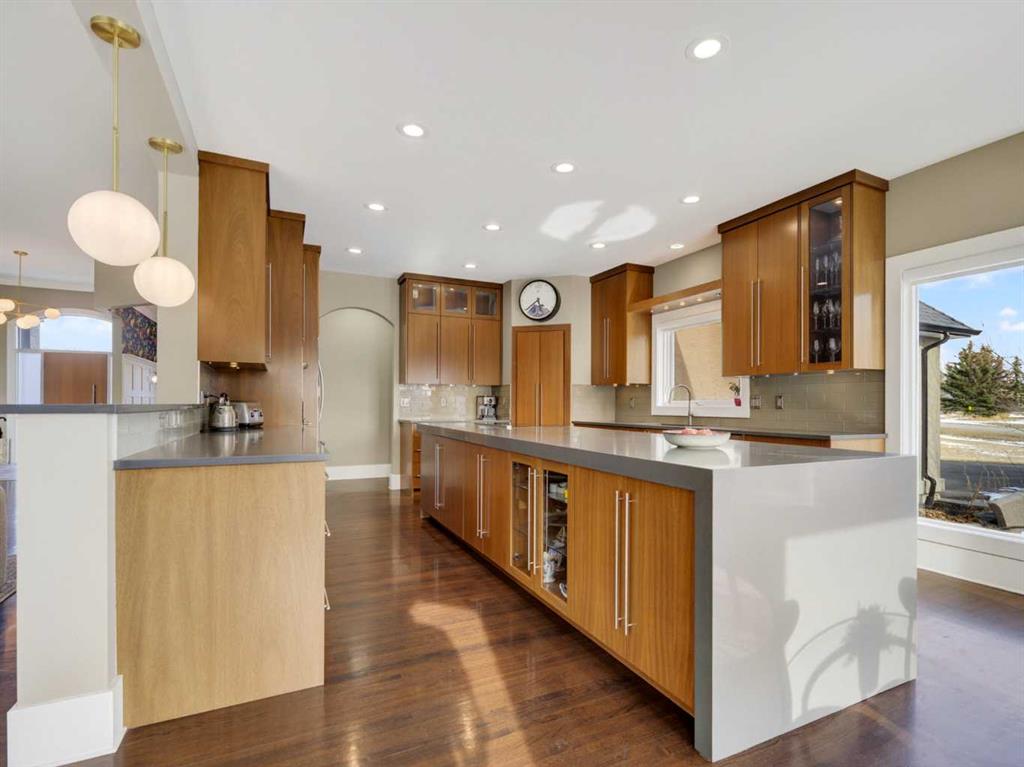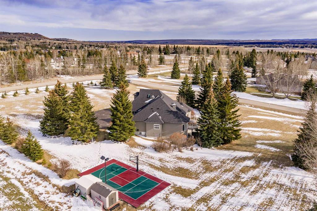 ***Open House Saturday, April 25, 2pm-4pm***Introducing 3 Spring Meadows Lane, perfectly positioned on two acres in Springbank. This beautifully appointed home with over 4800 sq/ft of living space enjoys uninterrupted mountain views, an ever changing backdrop that brings both stillness and perspective to everyday living. Mature landscaping, thoughtfully enhanced with a newly planted screen of trees, creates a sense of privacy that feels both natural and refined. From the moment you step inside, there is a quiet sense of arrival. The entrance draws your eye through the home to expansive windows that frame the landscape beyond, allowing the views to become part of the living experience. Set on a well established street known for its strong sense of community, with school pick up just moments from your door, the setting feels both connected and considered. Originally intended as a forever home, the property has been thoughtfully refined. This is not a renovation for resale, but a careful evolution where quality, craftsmanship, and longevity have guided each decision. An extensive list of upgrades is available. The main floor offers a beautifully balanced layout. A custom designed office with custom cabinetry provides a quiet place to work or read, while the principal living room is both generous and inviting, centred around a reimagined fireplace with a custom cast mantle by DreamCast, a microcement surround, and a Kozy Heat Nordik 48 inch gas fireplace with herringbone detail. Soaring ceilings and expansive windows fill the space with natural light. The kitchen is designed for both everyday living and hosting, anchored by a substantial island with an integrated induction cooktop, solid walnut cabinetry, and generous storage throughout. The primary suite is quietly set apart, with large windows capturing the surrounding landscape, a beautifully updated ensuite, and a generous walk in dressing room. A lofted area offers flexibility for guests, a studio, or additional living space. Practicality has been carefully considered, with an organised mudroom, dedicated dog entry, and direct access to the triple heated garage. A secondary stair leads conveniently to the lower level from the garage. The lower level extends the home beautifully, offering a dedicated gym, private cinema room, and a spacious recreation area with a custom arched walk up bar. Two well proportioned bedrooms and a five piece bathroom complete the space, along with walkout access to a sheltered patio and swim spa. Outdoors, a professionally lit sport court extends the home’s versatility, offering a wonderful setting for both recreation and relaxed evenings. A rare opportunity to enjoy acreage living in an established pocket of South Springbank, where thoughtful design, community, and mountain views come together with ease. Don't miss your opportunity to live in an updated home in Springbank with mountain views.