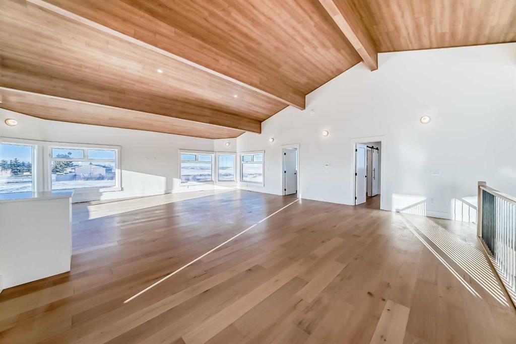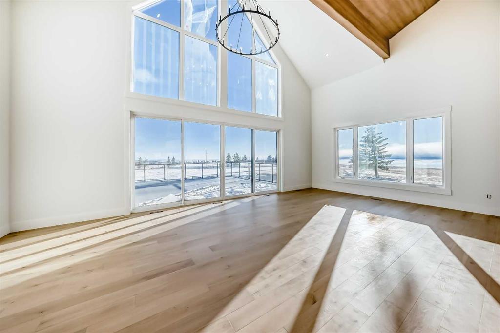WELCOME TO THIS EXCEPTIONAL, FULLY RENOVATED ACREAGE set on over 4 acres just minutes from Cochrane, offering unobstructed 360° panoramic views of the Rocky Mountains and the Cochrane valley. Located in a quiet, cul-de-sac-style acreage community, this remarkable property provides privacy, peace, and minimal traffic—ideal for those seeking a refined country lifestyle with city convenience nearby. This striking 1.5-storey residence offers over 6,600 sq. ft. of total living space including a fully developed walk-out basement, delivering exceptional functionality for families, entertaining, and flexible living arrangements. The main level impresses with vaulted ceilings, exposed wood beams, and expansive windows that flood the home with natural light while perfectly framing the breathtaking views. The west-facing kitchen features high-end appliances, ample cabinet space and premium finishes—ideal for both everyday living and entertaining while enjoying spectacular sunsets and mountain views. The open-concept living and dining areas create a warm, inviting atmosphere. The main-floor primary retreat is complete with large windows showcasing the scenery and a luxurious 5-piece ensuite featuring a soaker tub, walk-in shower, dual vanities, and elegant finishes. A spacious second bedroom, a stylish 4-piece bathroom, convenient main-floor laundry, and a flexible den or office space complete this level. The upper floor offers an expansive bonus room with ample space for lounging, games, or a pool table. A bright sunroom, a 3-piece bathroom, and a dedicated flex space ideal for a home office, reading area, or hobby room round out this level, providing additional areas for relaxation, work, or creativity. The fully finished walk-out basement includes a large recreation room, a bedroom with a walk-in closet and 4-piece ensuite, a 2-piece bathroom, a laundry area, and a mudroom with exterior access—making this level ideal for guests, extended family, or added convenience. Outside, enjoy wide open views, ample parking, and excellent storage with a triple attached garage plus a double detached garage. The acreage offers great flexibility and future potential and may be suitable for short-term or vacation rentals, small event hosting, or agricultural and hobby use. A rare opportunity to own a fully renovated acreage with over 4 acres of land, a finished walk-out basement, and incredible views—all just minutes from Cochrane. Book your private showing today.