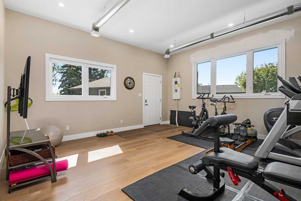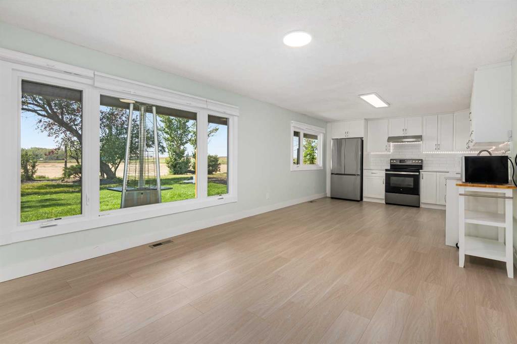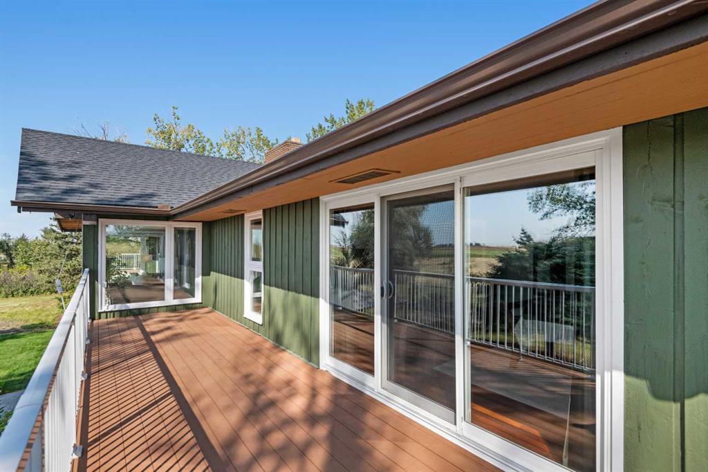 This is an exceptional home that we are proud to present that has outstanding quality product throughout which you can just relax and enjoy for many years to come! Located in Exclusive Georgian Estates on just over 2 acres and offers you so much privacy and incredible views, NE of Calgary off of Country Hills Blvd and under 4 km to Stoney Trail. This is a west backing walkout bungalow with a newly created 3 Bedroom basement suite with separate entry (illegal), or use for present or extended family. It has a triple attached garage, and also has a newly renovated separate shop/garage that has a new office and gym space, and could also be developed into a separate suite by connecting roughed in plumbing and adding a sewer line to the septic system, with a heated single garage and work bench. The bungalow main level has 3 bedrooms, 2 1/2 bathrooms, central living room with high beam vaulted ceiling that provides an incredible west facing view. The primary bedroom also has a separate sliding door to the deck. This leads into the dining room and then the updated kitchen with a modern flair and newer appliances, plus a sink with a great view! There is a casual family room off of the kitchen that could also be a casual eating area. Also a large laundry room, and several exits. The lower walkout level also has 3 bedrooms, bathroom, large kitchen and dining area, and also a large central living room with walkout access to the backyard. A newer stacker laundry unit is in the mechanical room, easy access. There is a large gazebo out back, and a huge yard area, nicely maintained. A long list of upgraded product includes: 2023: new 2,000 gallon septic tank, carpet. And in 2024: Triple Pane Windows; Asphalt Shingles, Full Width Deck installed from the footings up; Shop reno'd with a new furnace, an office and open area plus a single bay garage; Concrete Walkway and Front Entry; New Blinds; New Insulated Garage Doors; Exterior Lights; Tile; New Kitchen Downstairs; Appliances with 2 fridges, oven, 2 washer/dryers, 2 dishwashers, landscaping, carpet, interior and exterior painting, and driveway maintenance. In 2025: 2 new hot water tanks; reinforced eaves troughs and new downspouts. Lot's of storage in the basement and also a separate storage area in the attached garage. Two furnaces, one for each level. Parking? Definitely not a shortage here. A long paved driveway with a wide area for parking a lot of shiny vehicles. There is also a side RV parking area with a 220V plug in. There is a water co-op with an annual fee of $1600. The pictures are great but this really is a must see home. Come take a look!