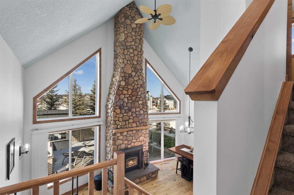 Location matters in CottageClub and this one nails it. Perfectly positioned on a sunny corner lot just steps from the clubhouse, pool, fitness centre, and tennis courts, you are right in the heart of the action without sacrificing privacy. Backing onto natural landscape, this property gives you that rare blend of connection and calm. Morning coffee on the porch. Evening walks to the beach. Last minute swims without packing a bag. It is all right there. The oversized single garage is more than just storage. Above it, a fully finished bunkie with its own bedroom and two piece bath creates the ultimate guest retreat. Teen hangout. Weekend visitors. Quiet workspace. You will use it more than you think. Inside the main home, the south facing front porch welcomes you in, while a striking floor to ceiling wood burning fireplace anchors the living room. It feels like a proper lake house. Warm. Inviting. Designed for long conversations and slow mornings. The main floor offers a primary bedroom, three piece bath, bright kitchen, dining, and living areas that flow seamlessly to the expansive back deck. Out back, another wood burning fireplace sets the tone for late night gatherings, wine with friends, and summer evenings that stretch on forever. Upstairs, you will find three additional bedrooms and a four piece bath, giving you room for family, guests, or both. The partially finished basement offers flexibility for a rec space, storage, or future development, plus the convenience of washer and dryer for full time living or extended stays. All of this sits within the gated community of CottageClub, where the lifestyle is the real luxury. Private beach and boat launch. Indoor pool and fitness centre. Library, professional kitchen, outdoor pizza oven, sport courts, beach volleyball, and walking trails woven throughout. Condo fees remain a modest $250 per month, giving you access to an experience that feels like a year round vacation. If you are looking for one of the better positioned homes in CottageClub with space, flexibility, and that true lake house feel, this is it.