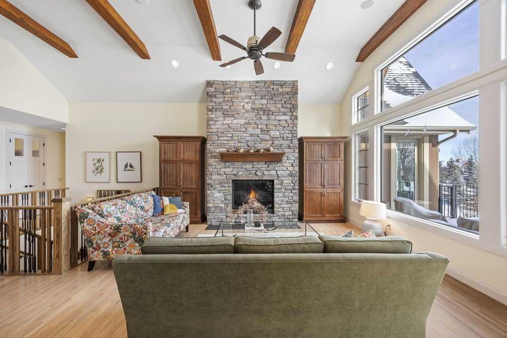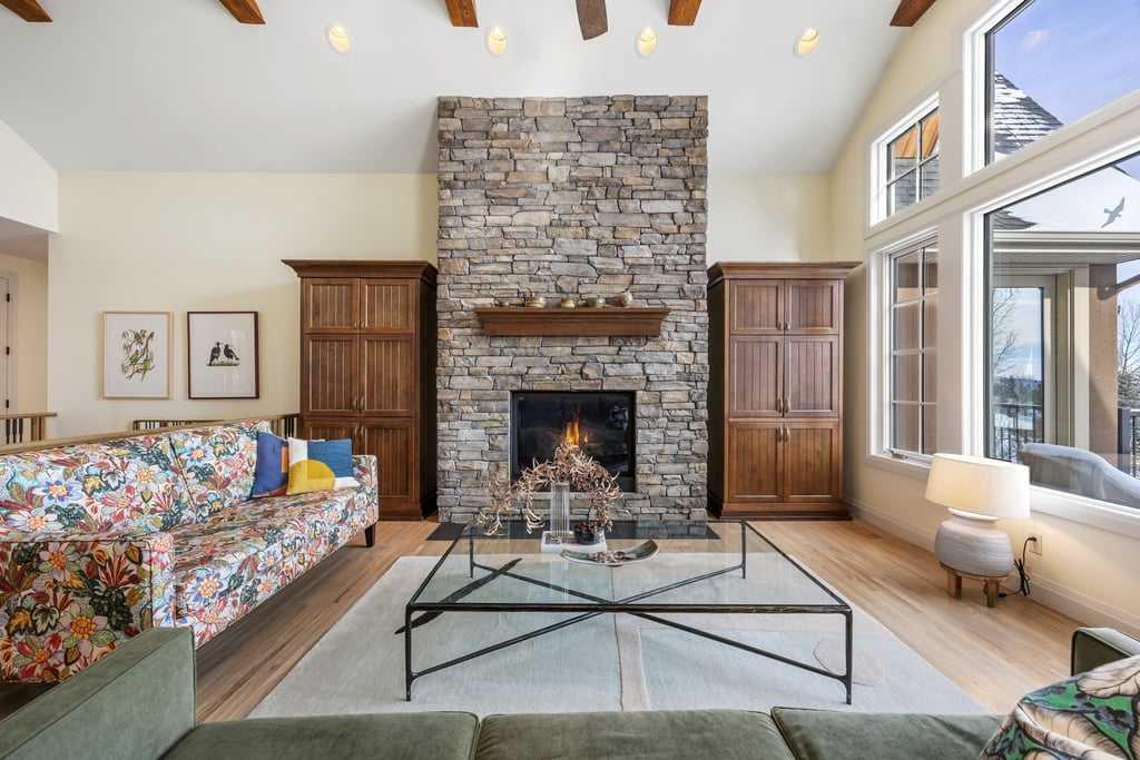 | FIREPLACE | Gas Log, Stone, Three-Sided |
