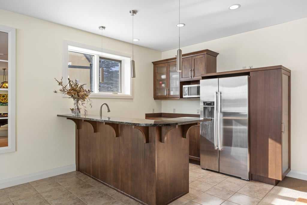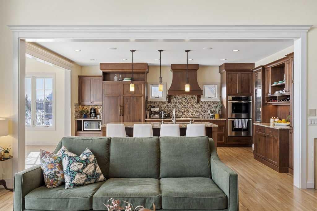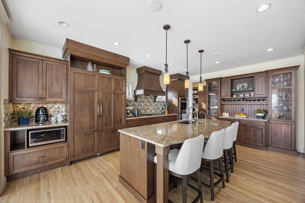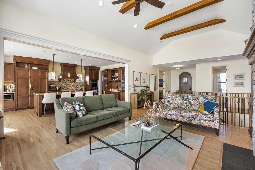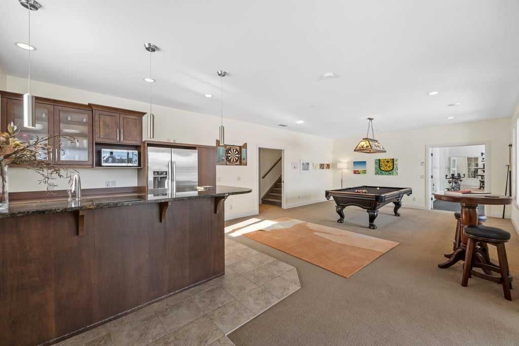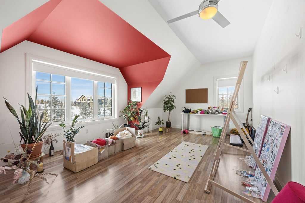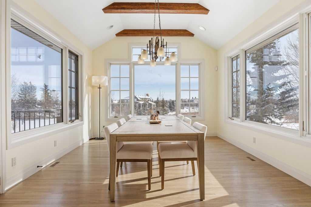 Set on over 2 acres of beautifully treed land, this exceptional Springbank home offers a rare blend of privacy, space, and refined comfort, all just minutes from west Calgary amenities and top schools. A curved driveway winds through mature landscaping, creating a strong sense of arrival as the home comes into view. Inside, soaring vaulted ceilings with exposed beams and rich hardwood floors set the tone in the main living area, where a striking stone fireplace anchors the space and invites both quiet evenings and larger gatherings. The kitchen is designed for both everyday living and entertaining, featuring integrated Thermador appliances, a walk-in pantry, a generous island with seating, and thoughtful details like a built-in wine rack. The adjacent dining area is surrounded by views of the natural landscape and opens onto a private balcony, extending your living space outdoors. The main floor primary suite is positioned to take full advantage of the peaceful setting, with views toward the pond and a well-appointed ensuite complete with dual vanities, a soaker tub, steam shower, heated floors, and separate walk-in closets. An office, along with a functional mudroom and laundry space with built-ins, completes the main level. Upstairs, a dedicated family zone offers two spacious bedrooms, a full bathroom, and a flexible recreation or study area, ideal for growing families. The walkout lower level is bright and expansive, designed for both relaxation and entertainment. Heated floors run throughout, with spaces that include a wet bar, wine cellar, theatre area, gym, and multiple recreation areas, along with two additional bedrooms and a full bathroom for guests. Outdoors, the property feels like a private retreat. Mature trees, two patio areas, a tranquil water feature with a flowing stream, and a firepit setting near the pond create multiple spaces to unwind or host throughout the seasons. Additional features include an oversized four-car garage with access to both the front and rear of the property, air conditioning, and whole-home audio. Residents also enjoy community features such as pond maintenance and seasonal stocking through the HOA. Located within the Springbank school system and close to Calgary’s leading private schools, with convenient access west to the mountains, this is a rare opportunity to own a truly special property in a sought-after setting.