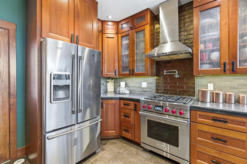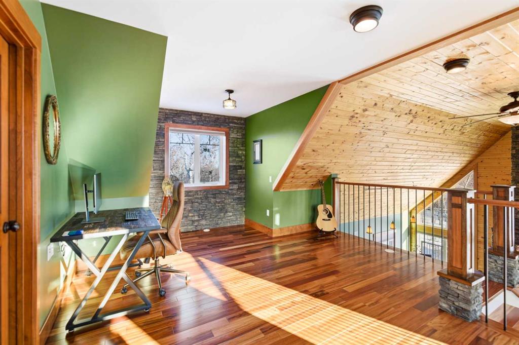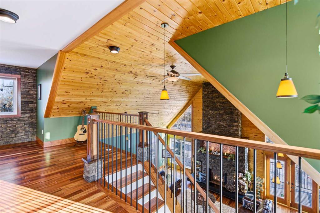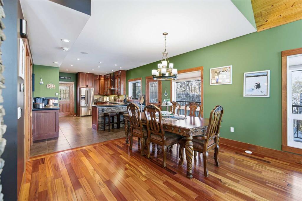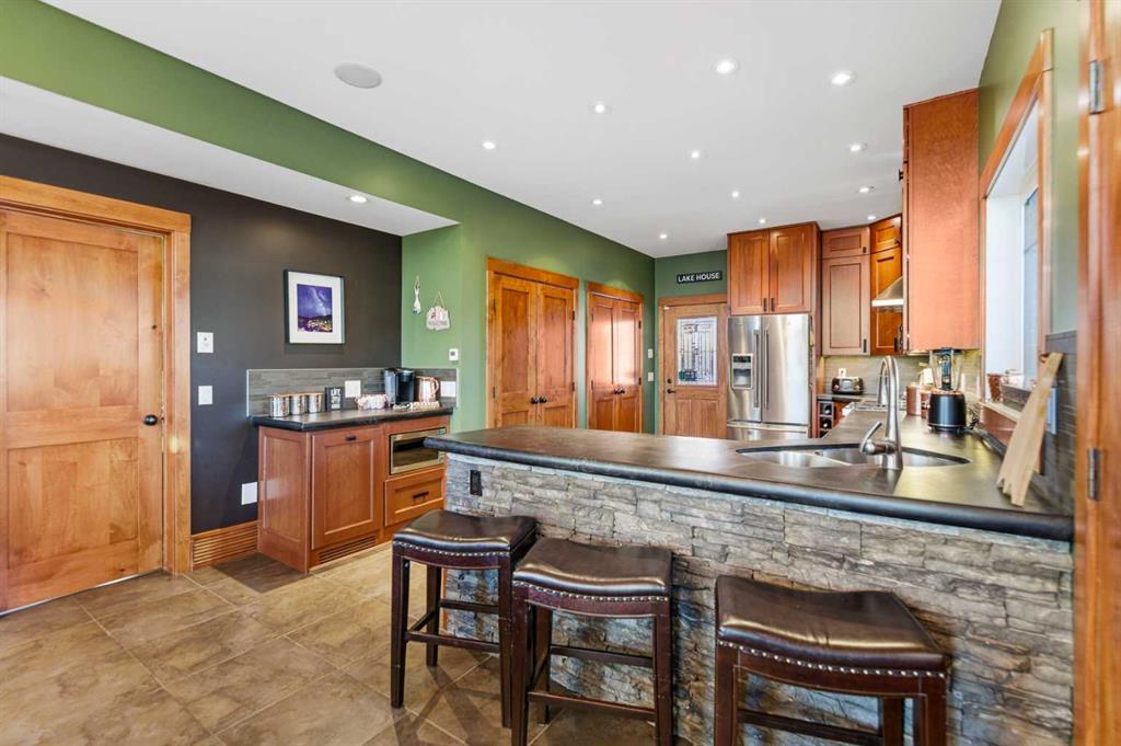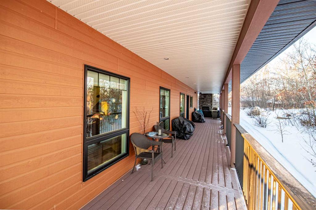 Located at one of Alberta’s largest lakes, Buffalo Lake is truly one of the area’s best-kept secrets. Welcome to Buffalo Sands, a close-knit lake community offering a four-season lifestyle ideal for weekend escapes, unwinding after work or full-time living. This exceptional lakehouse-inspired chalet is not an A-frame cabin, but a thoughtfully designed home with architectural character, warmth and timeless appeal. This beautifully maintained 1½-storey, fully finished home features a front walkout entry-level with 9’ ceilings and in-floor heating, offering comfort and practicality year-round. The attached double heated garage (12’6” x 33’6”) is fully finished, painted, wired and includes a floor drain, upgraded lighting, new electrical panel, and generator hook-up panel. Step inside to a welcoming tiled foyer with generous storage and a stylish 2-piece bathroom. A few steps up, the great room impresses with soaring 19’ vaulted ceilings, polished hardwood floors and a stunning floor-to-ceiling stone fireplace with copper insert, framed by stone pillars inside and out. Large windows flood the space with natural light and showcase tranquil views. The kitchen is designed for both everyday living and entertaining, featuring polished concrete countertops, a premium WOLF gas stove, stainless steel appliance package, corner sink, pantry, breakfast bar and a custom coffee station. Three doors provide seamless access to the massive three-sided wrap-around covered deck, perfect for hosting or relaxing outdoors. The primary bedroom offers a walk-in closet with built-in organizers and a spa-inspired ensuite with an upgraded steam walk-in tiled shower and glass doors. The upper-level loft overlooks the main living space and includes two additional bedrooms and a 4-piece bathroom—ideal for guests, family a library or office nook and direct access to a covered outdoor courtyard complete with a gas fireplace. The entry-level walkout features in-floor heat, a newly created recreation room/could be additional bedroom with plush carpeting, cabinetry and feature dart wall, a large utility/laundry room with epoxy flooring and extensive storage, workshop/boiler room. Outdoor features include multiple conversation areas a fire pit and maintenance-free decking with storage underneath. Recent upgrades include new WOLF stove, stainless refrigerator, Samsung washer/dryer, boiler, furnace and A/C unit, hot water tank, sound system (inside and out), lighting upgrades, paint, cabinetry refinishing, garage improvements, widened driveway, additional parking pad, landscaping/ new sod and stone enhancements. A unique highlight is the walking trail behind the home providing direct access to the lake, beach, docks, playgrounds, pond - skate, canoe or country ski on trails. The property includes the right to boat slip in the community marina (on separate title). Full time residence or your new income / rental escape! This is lake living at its finest-be prepared for love at first sight.