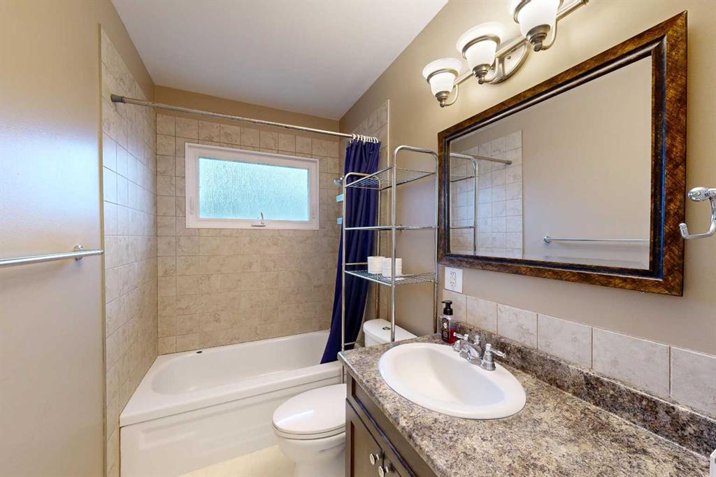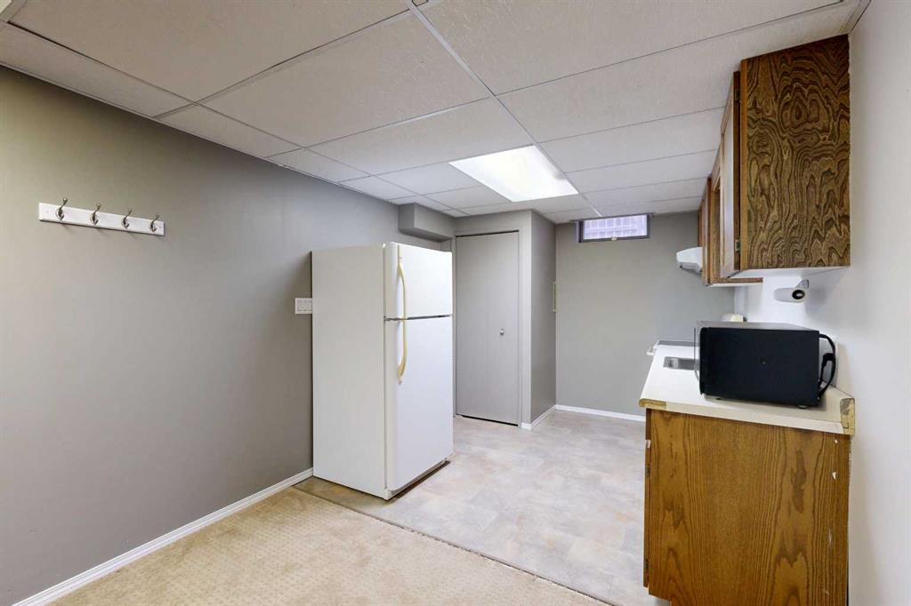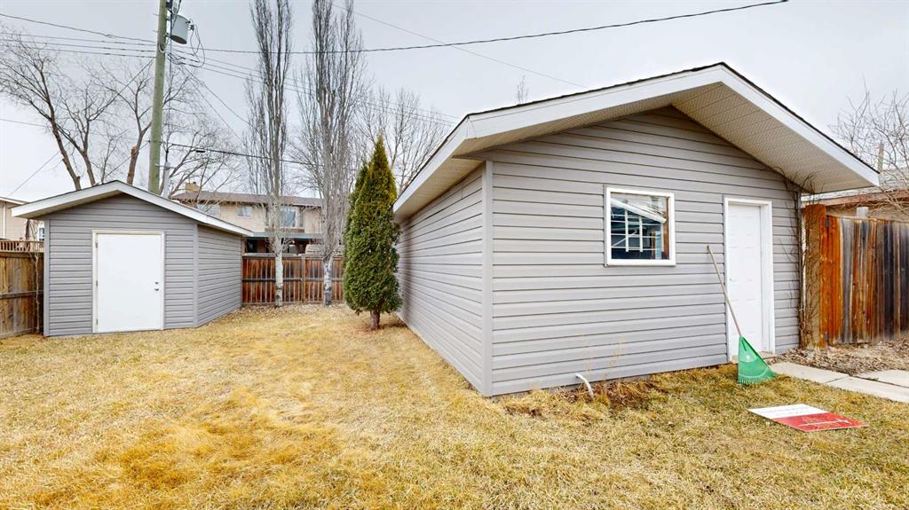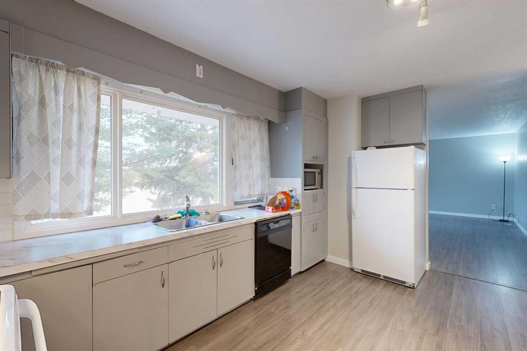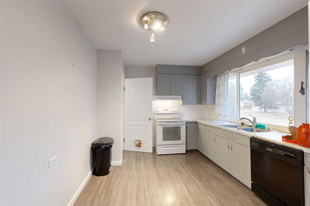 Welcome to this well-maintained and inviting home—perfectly suited for first-time buyers, growing families, or those looking to simplify without sacrificing comfort or functionality. The main living areas are welcoming, featuring wood-look flooring and neutral grey tones that create a clean, contemporary feel. A large picture window fills the spacious living room with natural light, offering a warm and comfortable place to relax or gather. The kitchen is thoughtfully laid out for everyday living, complete with marble-look countertops, a classic subway tile backsplash, and plenty of workspace to make meal prep easy and enjoyable. Down the hall, you will find two comfortable bedrooms along with a full 4-piece bathroom featuring a tiled tub/shower surround and a frosted window for added privacy. The lower level adds incredible versatility—ideal for extended family, guests, or additional living space. Enjoy a cozy, carpeted family room with a fireplace and built-in shelving, a second full kitchen with room for dining, an additional bedroom, and a bathroom with shower. The utility room offers laundry, extra storage, and added convenience. Step outside to a private and fully fenced backyard designed for everyday enjoyment. Mature trees provide natural privacy in the front yard, while the backyard features a patio for BBQs, a fire pit area for evenings with family and friends, and a handy storage shed. The single-car garage is well-equipped with bright lighting, power, and built-in shelving for all your storage and project needs. This home offers the perfect balance of comfort, function, and flexibility—ready for you to move in and make it your own.