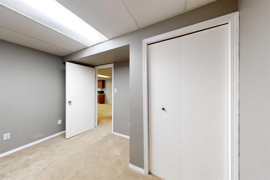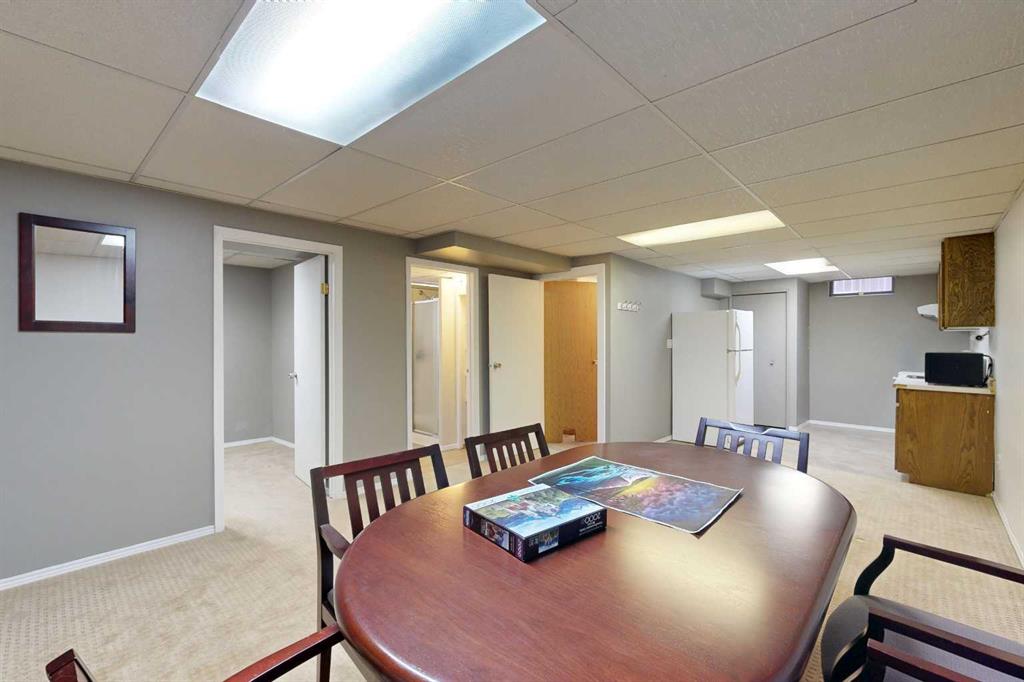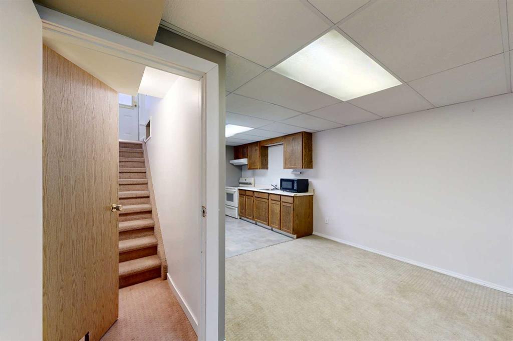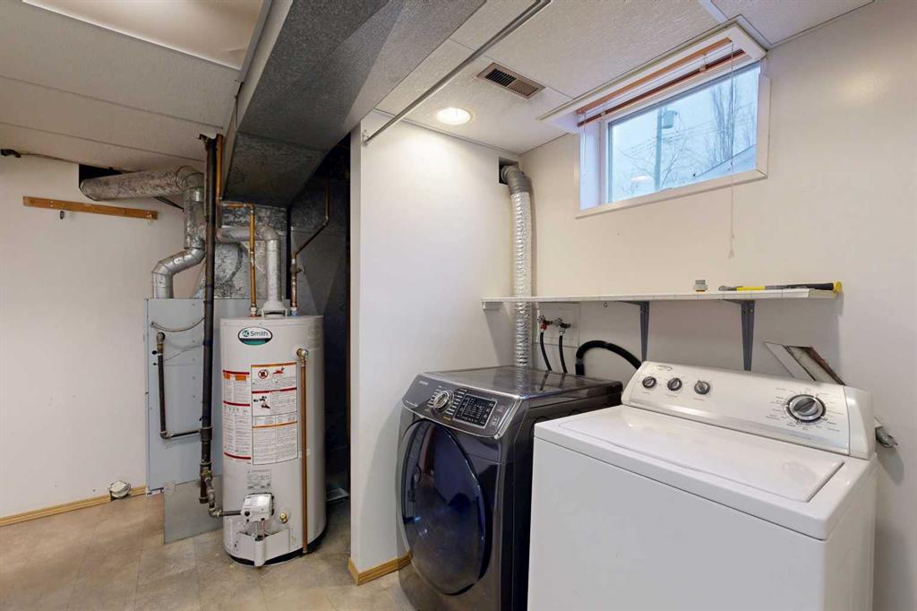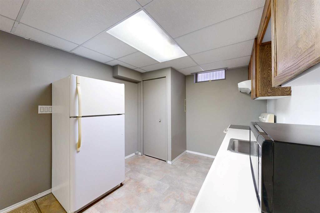 Welcome to this well-maintained and inviting home—perfectly suited for first-time buyers, growing families, or those looking to simplify without sacrificing comfort or functionality. The main living areas are welcoming, featuring wood-look flooring and neutral grey tones that create a clean, contemporary feel. A large picture window fills the spacious living room with natural light, offering a warm and comfortable place to relax or gather. The kitchen is thoughtfully laid out for everyday living, complete with marble-look countertops, a classic subway tile backsplash, and plenty of workspace to make meal prep easy and enjoyable. Down the hall, you will find two comfortable bedrooms along with a full 4-piece bathroom featuring a tiled tub/shower surround and a frosted window for added privacy. The lower level adds incredible versatility—ideal for extended family, guests, or additional living space. Enjoy a cozy, carpeted family room with a fireplace and built-in shelving, a second full kitchen with room for dining, an additional bedroom, and a bathroom with shower. The utility room offers laundry, extra storage, and added convenience. Step outside to a private and fully fenced backyard designed for everyday enjoyment. Mature trees provide natural privacy in the front yard, while the backyard features a patio for BBQs, a fire pit area for evenings with family and friends, and a handy storage shed. The single-car garage is well-equipped with bright lighting, power, and built-in shelving for all your storage and project needs. This home offers the perfect balance of comfort, function, and flexibility—ready for you to move in and make it your own.